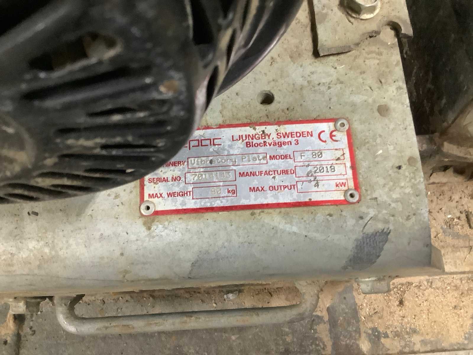 Op,werking getest as trilblok gebroken Merk: Swepac Type: f80 Bouwjaar: 2018 Merk motor: honda Brandstof: benzine Eigen gewicht: 60kg