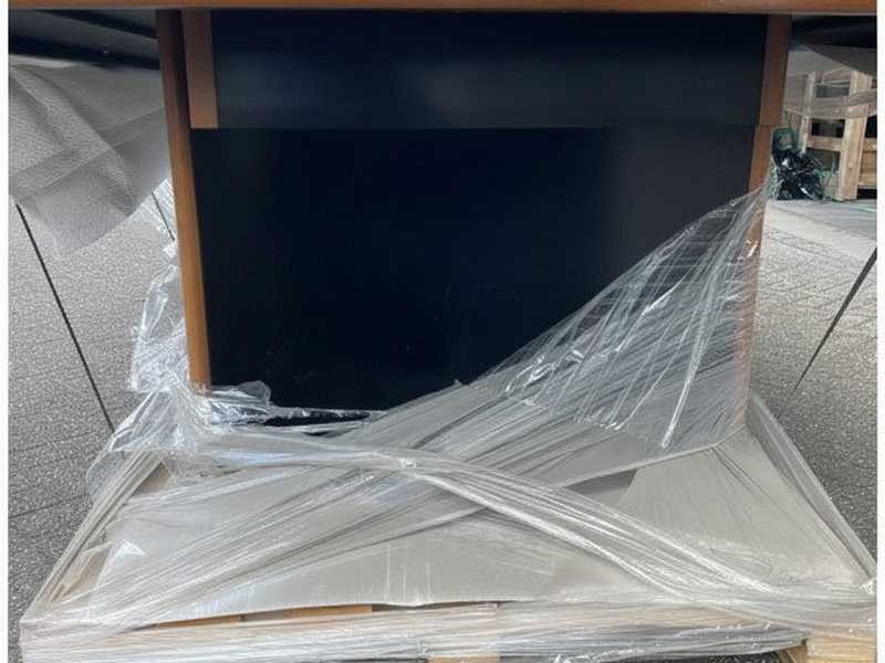 Large maritime red table 325cm with robust black frame and wooden legs for ships