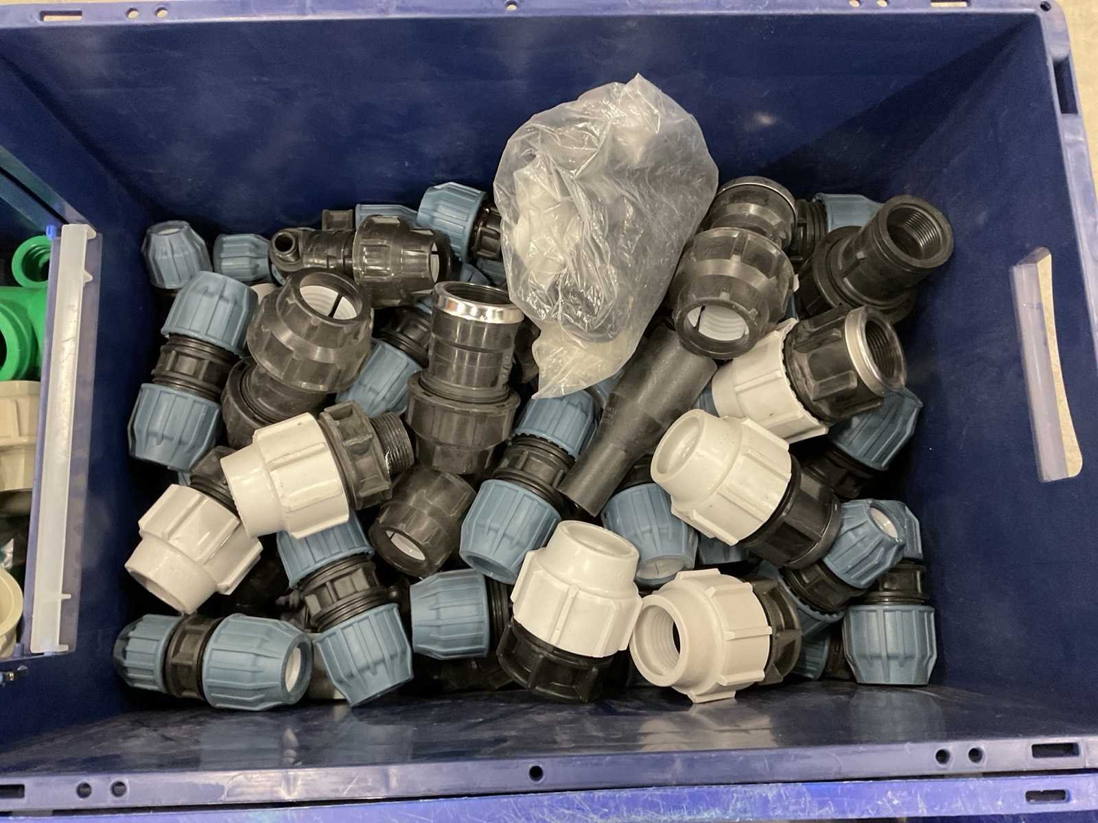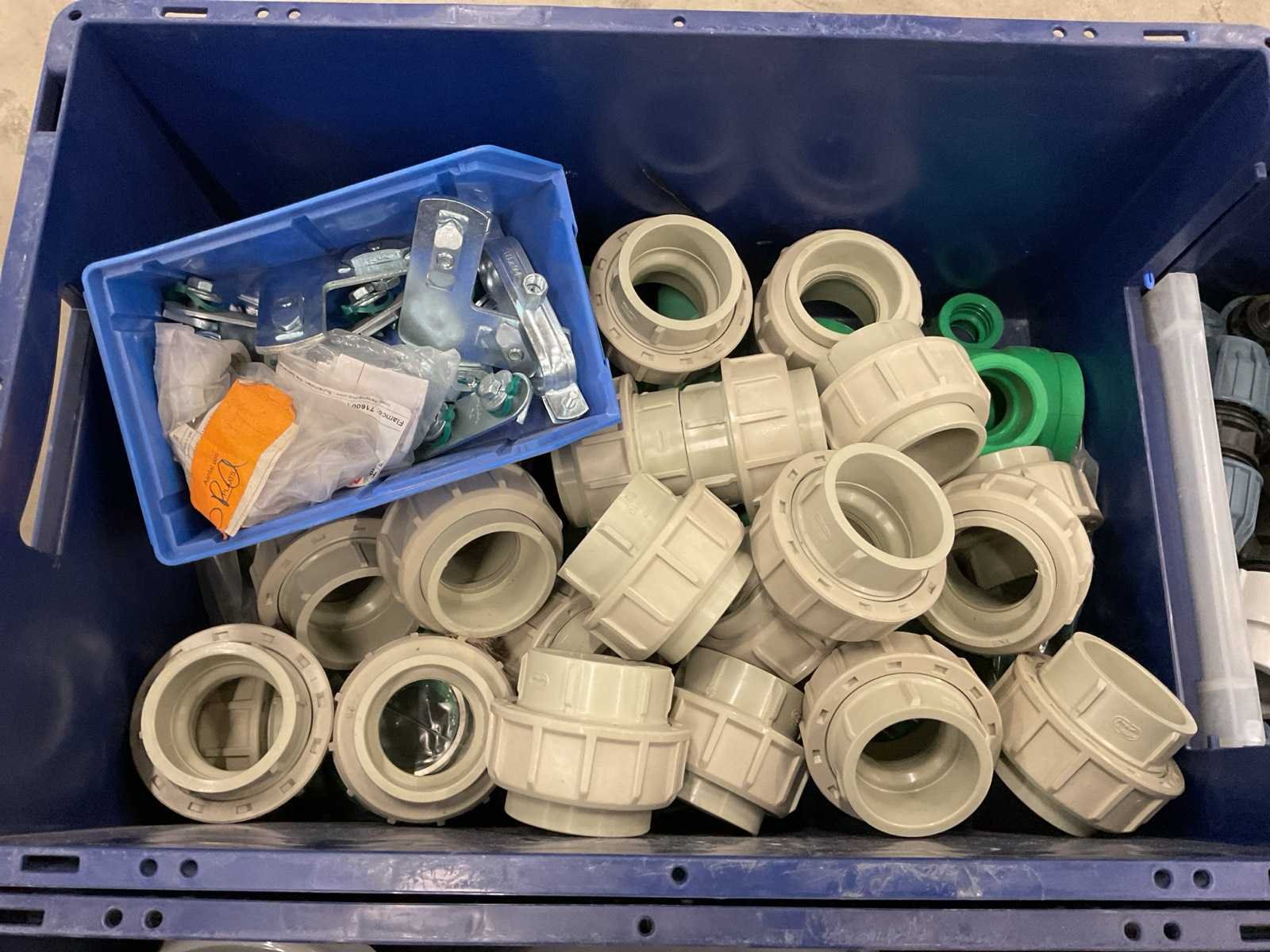 Bestaande uit: o.a. PVC hulpstukken, snelkoppelingen, etc., incl. kunststof kratten.