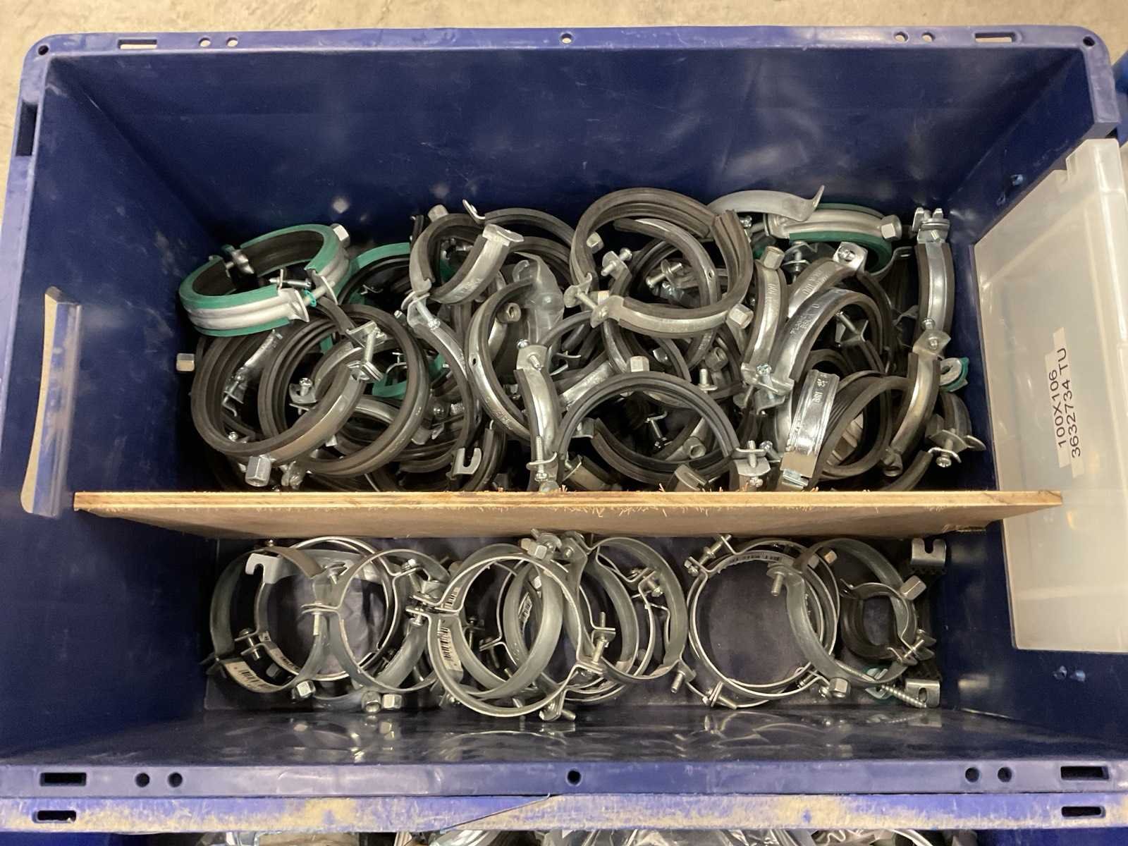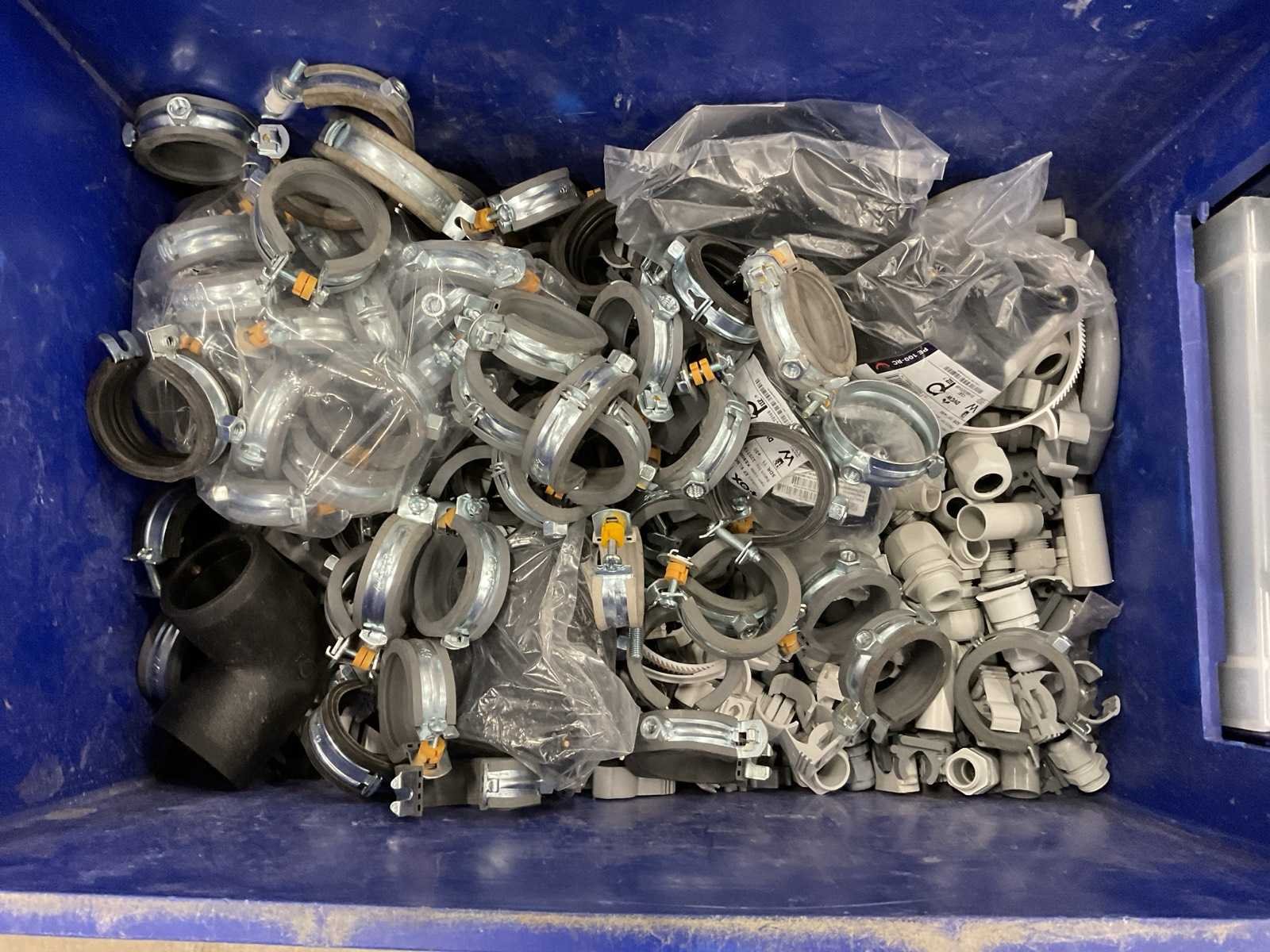 Bestaande uit: vnl. leidingbeugels en zadels, incl. kunststof kratten.