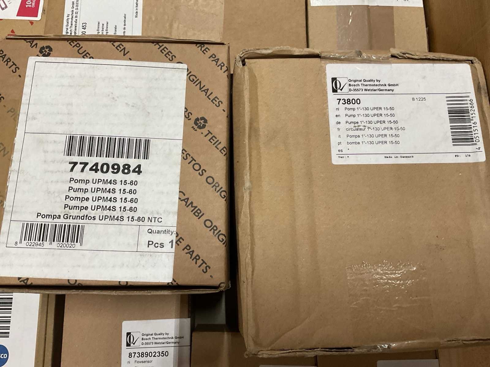 O.a. waakvlam sets, flowsensoren, vlotters, service sets, circulatiepompen, etc.