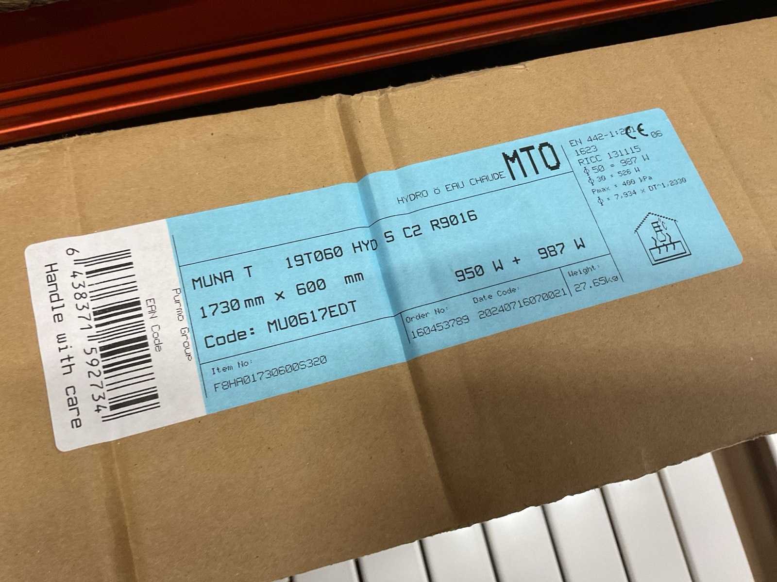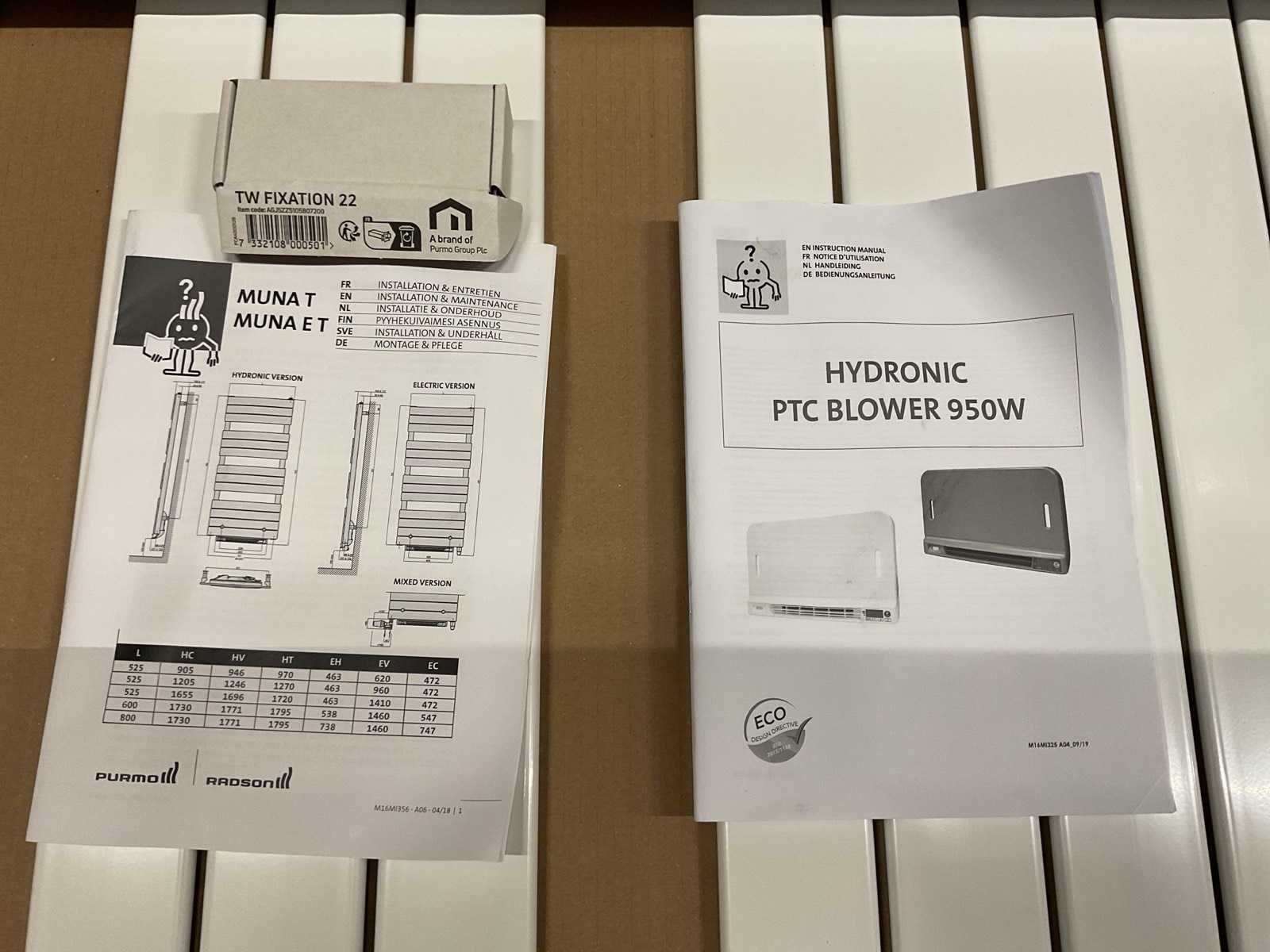 Kleur RAL9016, v.v. 950W hydronic PTC blower. Merk: Purmo Model: Muna T Product type: 1730x600mm Kleur: Wit Lengte: 173cm Breedte: 60cm