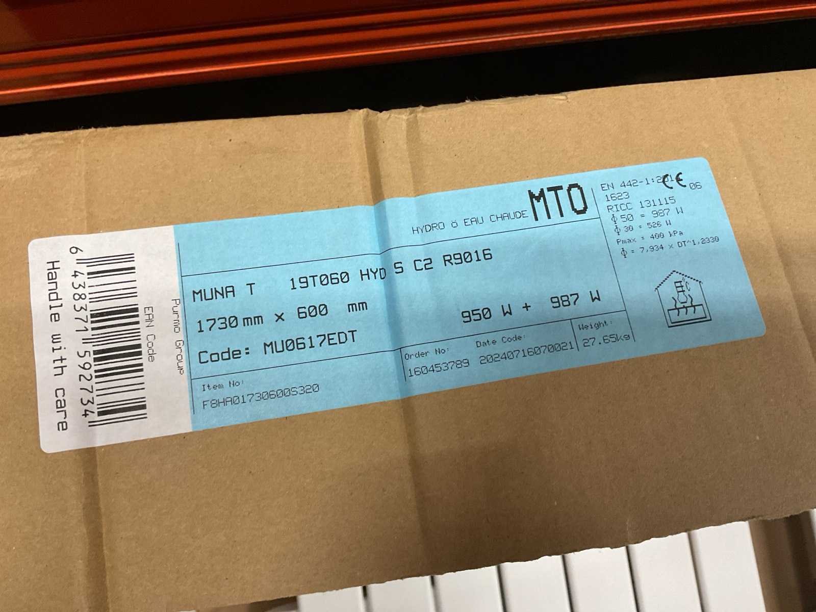 Kleur RAL9016, v.v. 950W hydronic PTC blower. Merk: Purmo Model: Muna T Product type: 1730x600mm Kleur: Wit Lengte: 173cm Breedte: 60cm