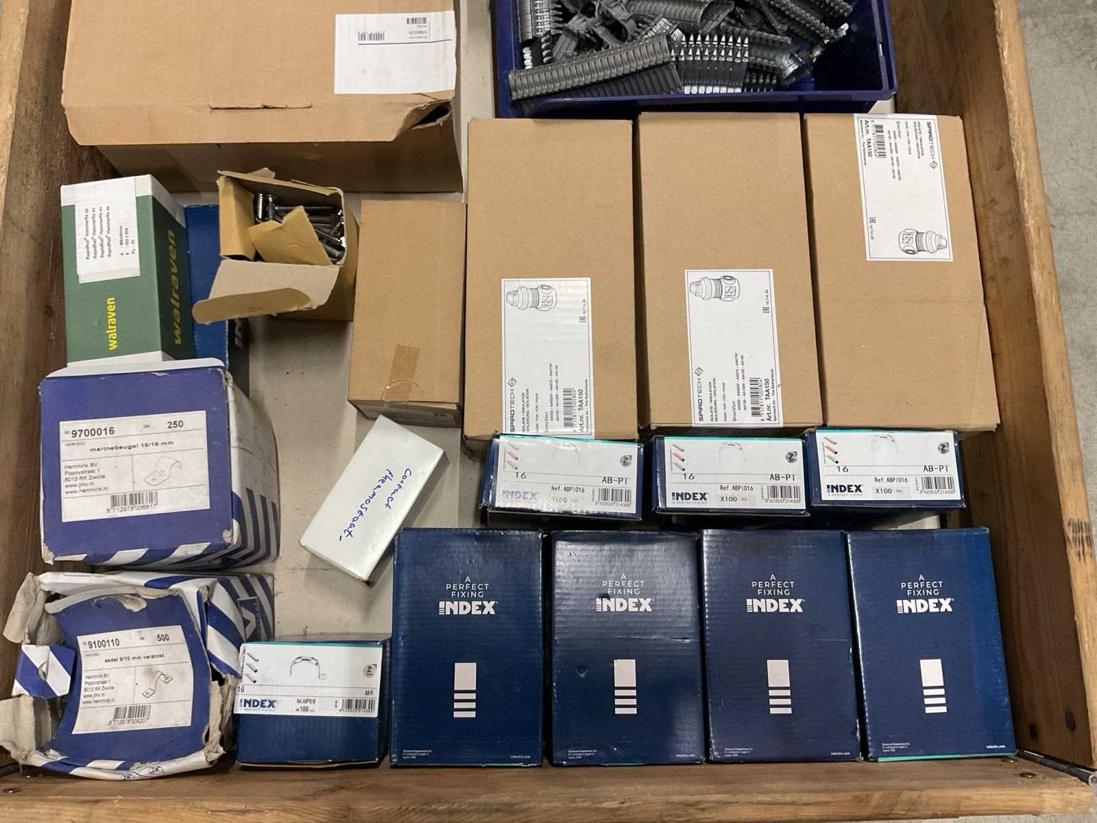 Bestaande uit: O.a. zadels, marinebeugels, isolatiesets, RVS houtdraad bouten, kunststof tacker nagels, etc.