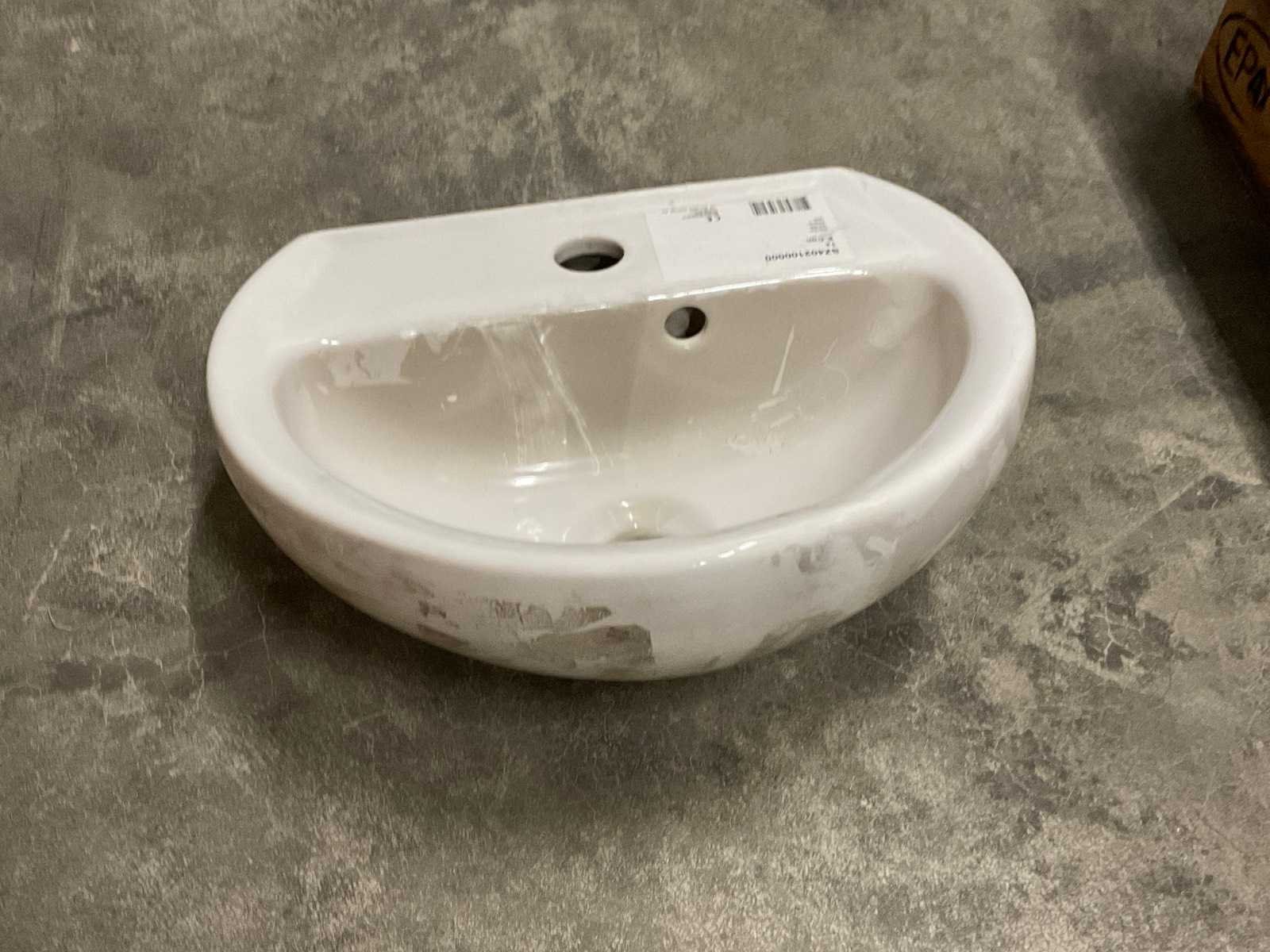 Met kraangat en overloop. Merk: Geberit Model: E-Con Product type: SZ402100000 Lengte: 40cm Breedte: 33cm