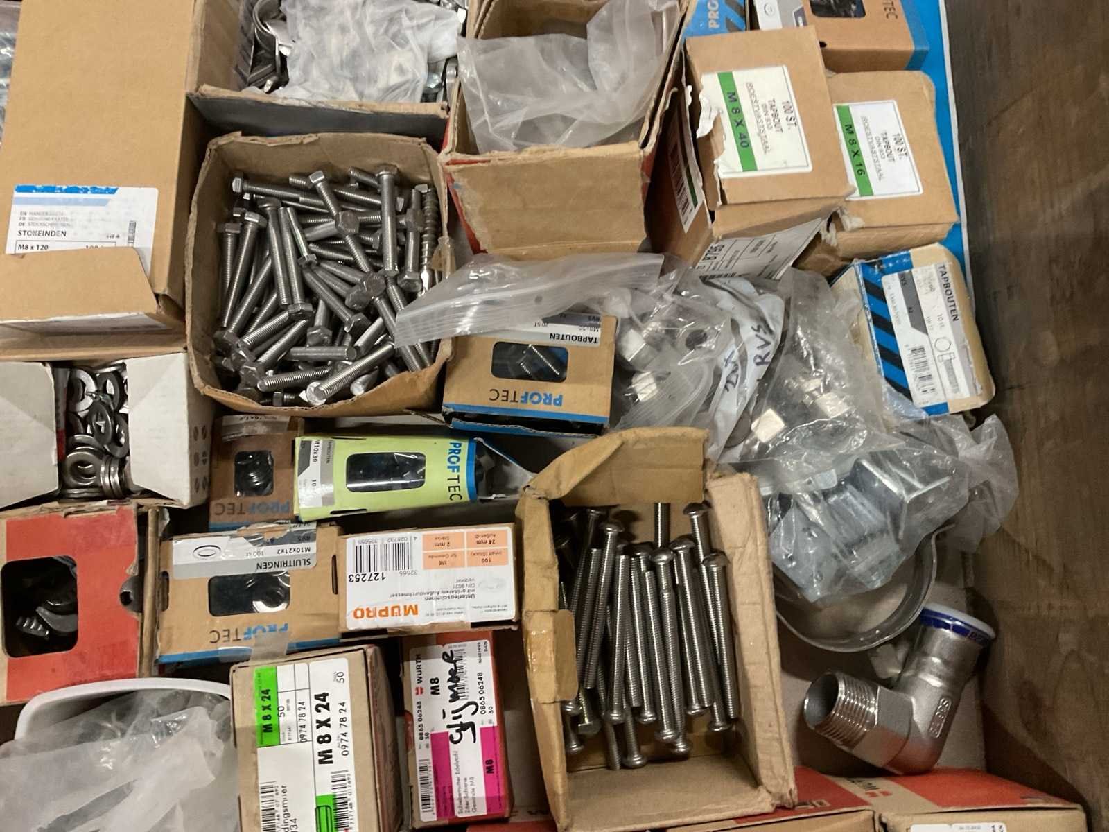 O.a. bouten, moeren, carrosserieringen, houtdraadbouten, leidingbeugels, etc.