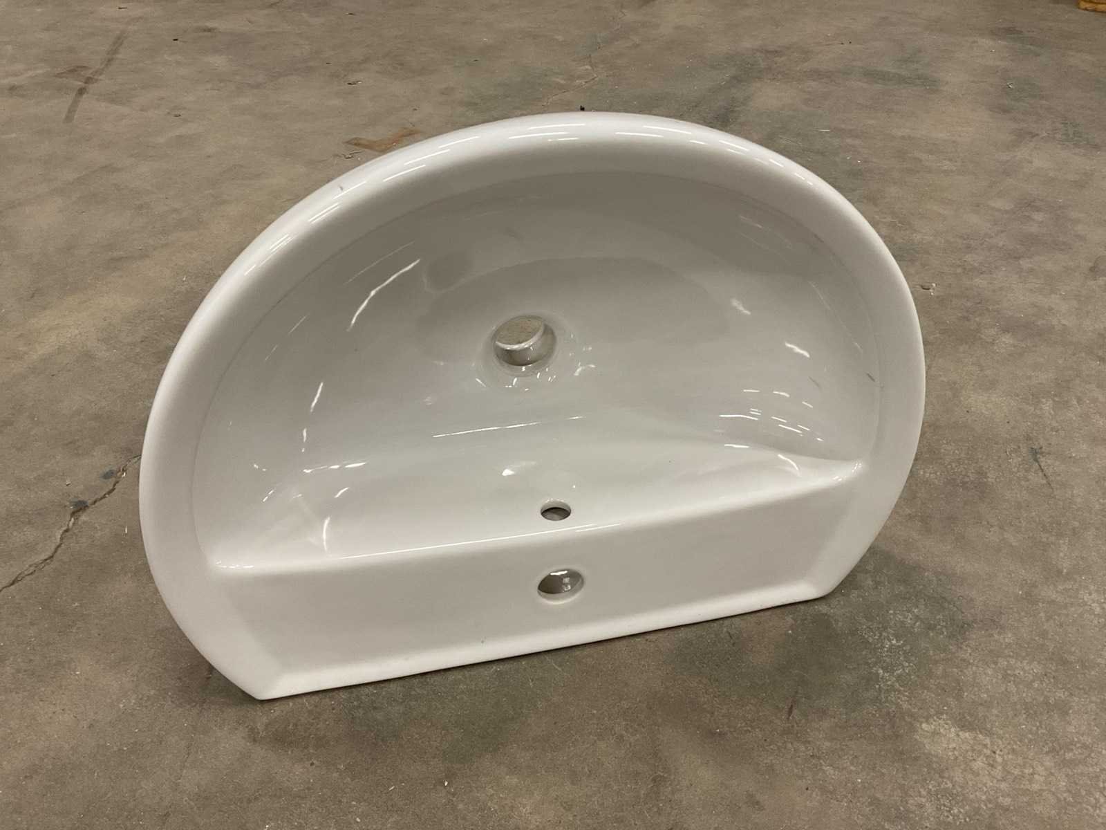 Met kraangat en overloop. Model: 55cm Kleur: Wit Lengte: 55cm Breedte: 42cm