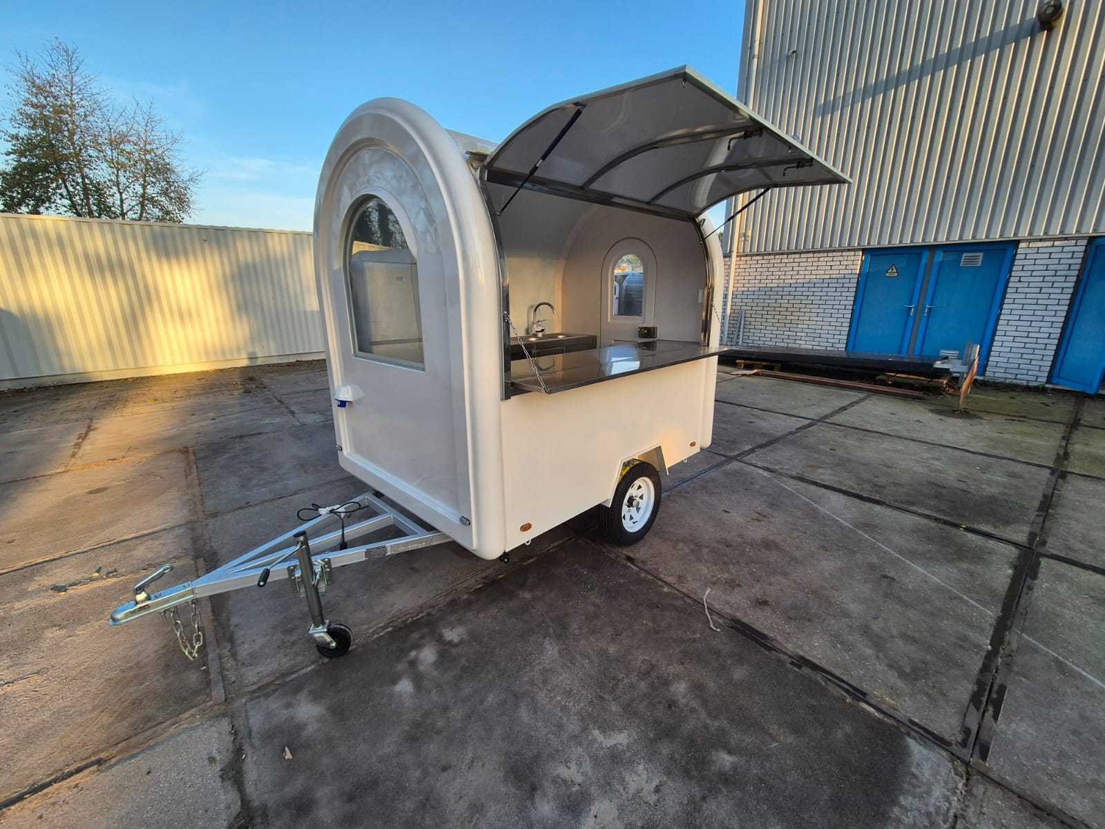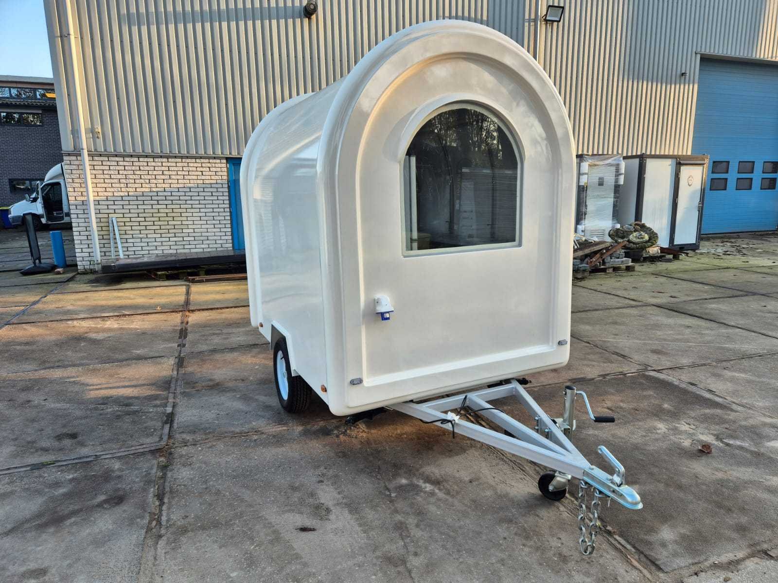 Witte foodtruck met ledverlichting, rvs inbouwkeuken / werkbank, groepenkast, koeling, stabilisatiepoten. Afmetingen en gewicht: Lengte: 220 cm (cabine), totaal 320 cm Breedte: 160 cm Hoogte: 230 cm Gewicht: 550 KG Bouwjaar: 2025 Aantal assen: 1 Ledig gewicht: 550kg Hoogte: 230cm Lengte: 220cm Breedte: 160cm