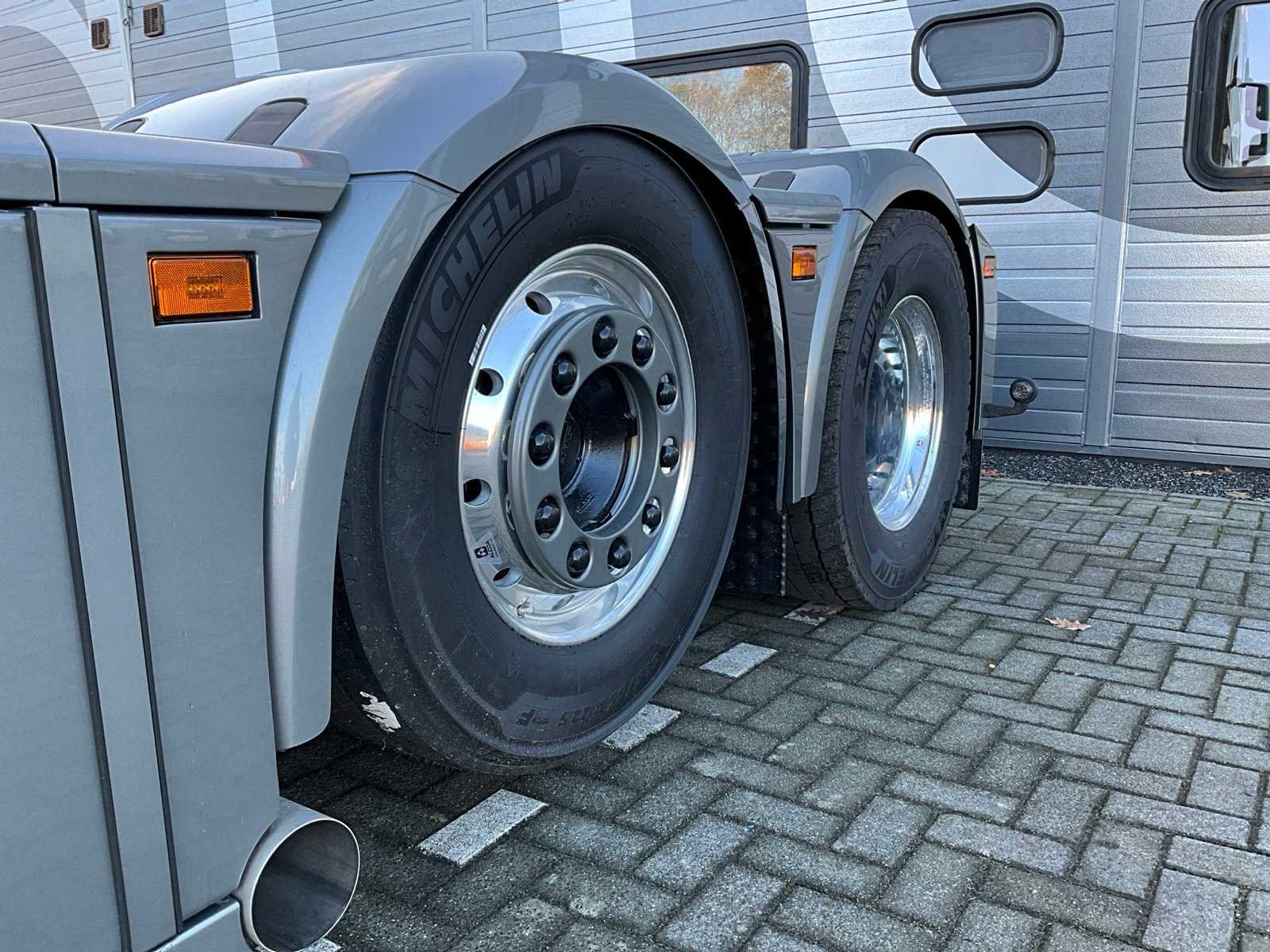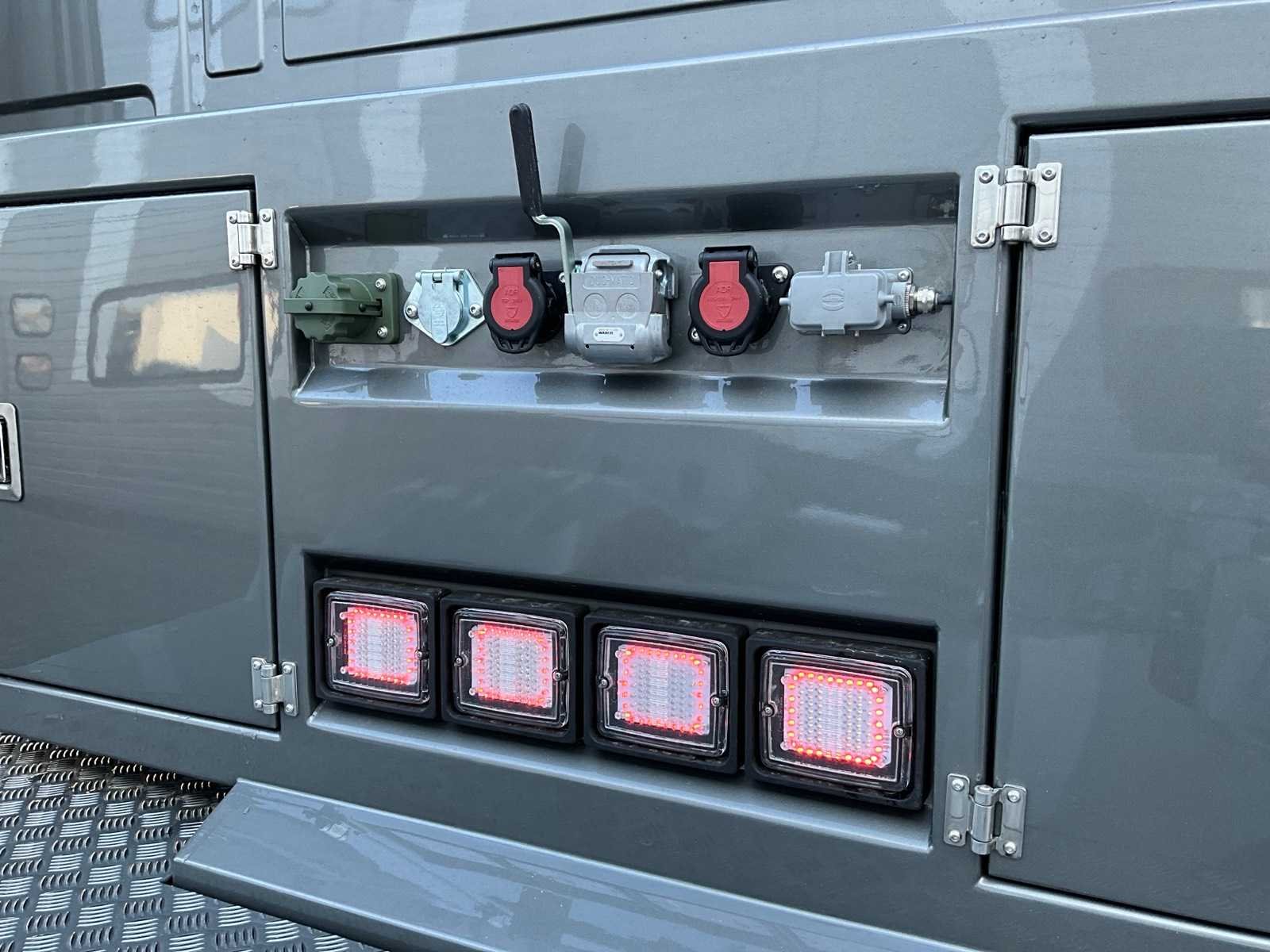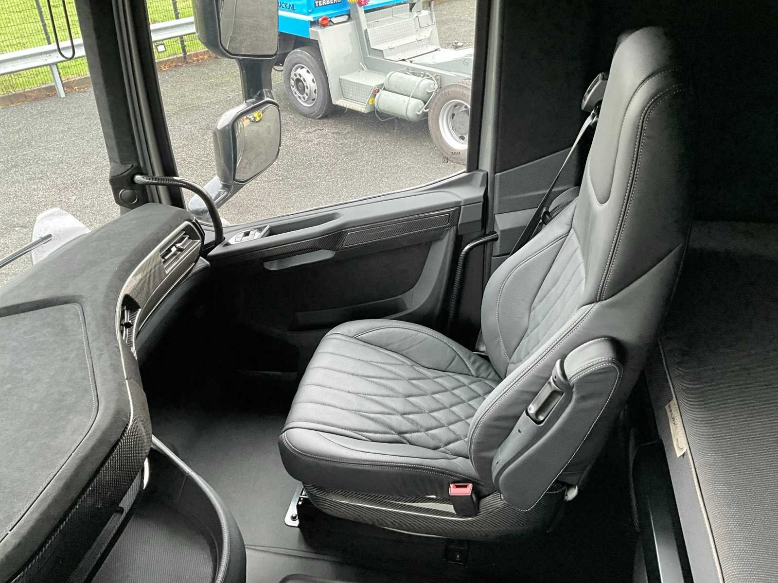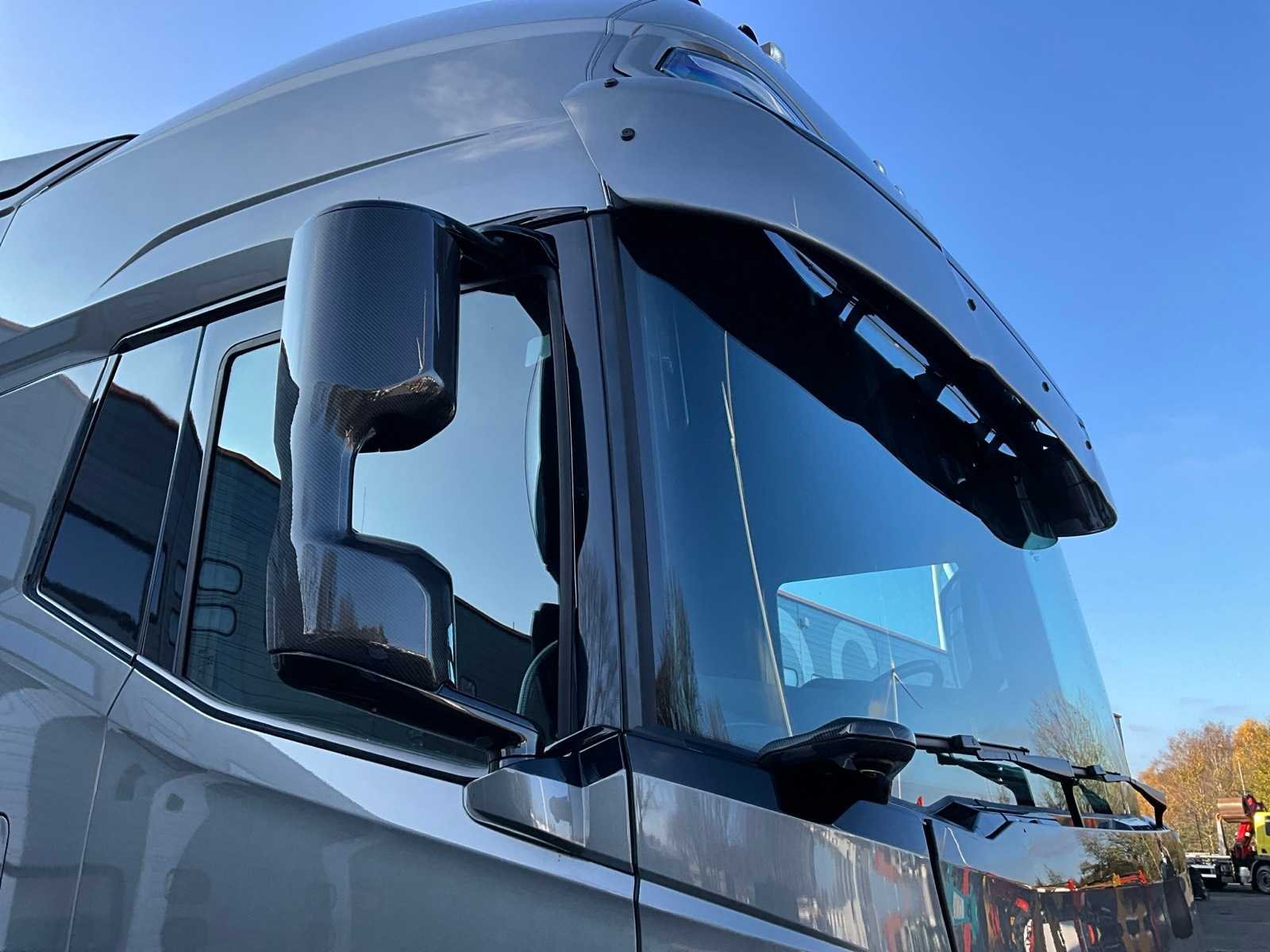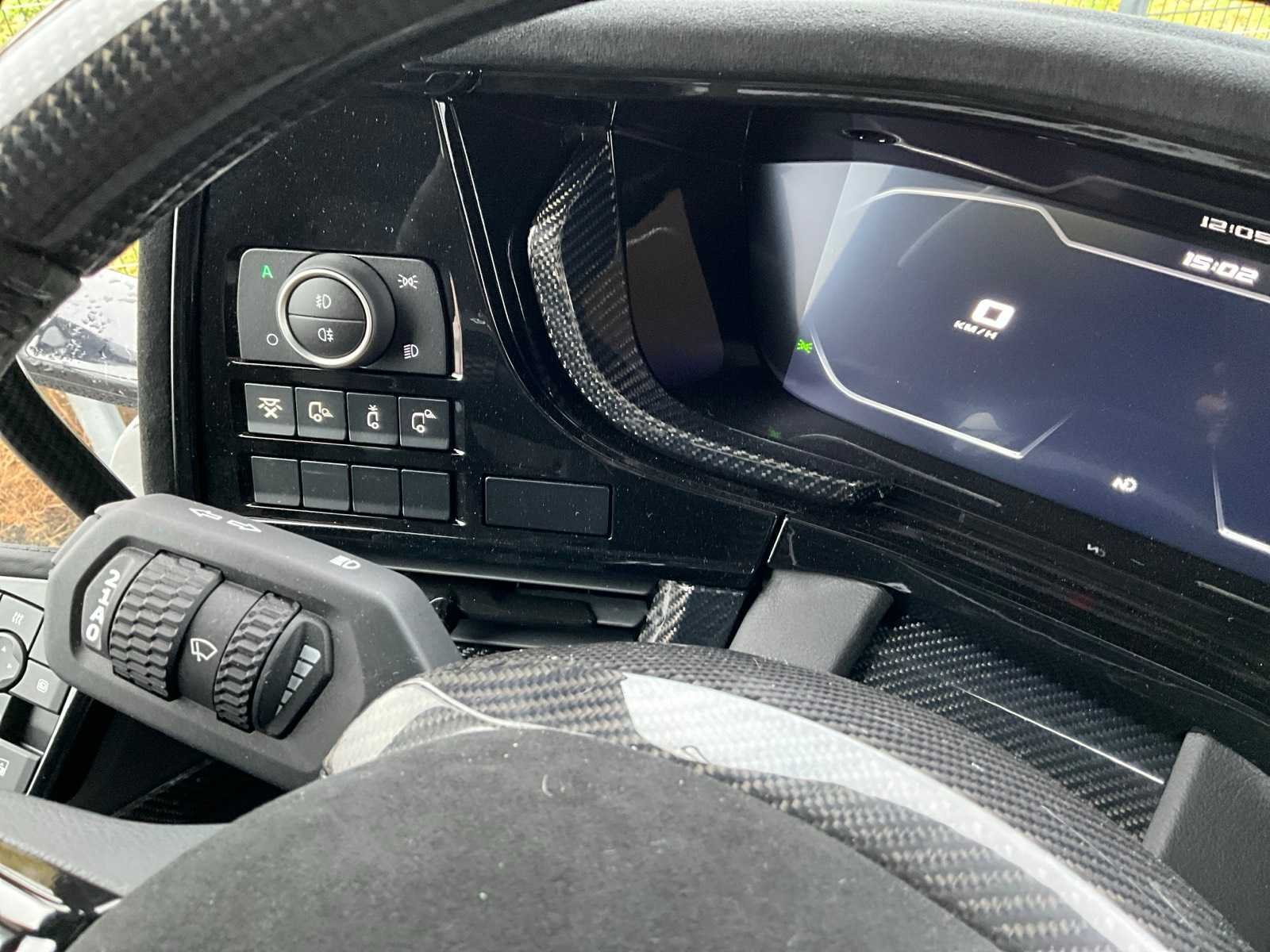 LED Balk en luchthoorns boven op dak Topverlichting voor en achter STRANDS verstralers RVS achterbumper met LED verlichting en een kist bij de luchtketel Vlakke plaat achter de schotel met kenteken en LED werklampen erin verwerkt Sideskirts met tankbanden en LED-verlichting Beugels onder de sideskirts met grond verlichting Vlonder half glad en half traanplaat met daarin kleppen bij de tankopeningen. Op maat gemaakte aluminium spatborden bij de vooras Slangenrek met led verlichting en deurtjes RVS gepolijst eindstuk bij de trekas aangesloten op de demper Spiegels en handvaten afgewerkt in carbon-look Interieur afgewerkt met carbon XG⁺ 530 FTG 6X2 Trekker Motor: MX-13-motor 390kw/530pk Cabinekleur .J. 5015MESI Vooras vóór 8,00t, luchtvering, 161N Bandenleverancier .Michelin Banden fr1 of voorassen 385/65R22.5 Banden aangedreven achteras(sen) 315/70R22.5 Retarder MX Engine Brake Brandstoftank(s) 710l alu br st tanks: 490 + 220L Voertuiggarantie warranty Plus-voertuig 2 jaar geen km limiet (va feb 2024) Koppelschotel : Jost JSK37E Schuifschotel Achterasgroep Achter 19,60t luchtvering Banden fr2 of voorloopas 385/55R22.5 Achterasoverbrenging: achterasverhouding 2,40 Connected Services : PACCAR Connect Uitlaatemissie Euro 6 Uitvoering versnellingsbak : Automatische versnellingsbak Traxon 12 versnellingen Wielbasis / achteroverbouw Wielbasis 3,95m / achteroverbouw 0,99m Voorzien van Climate Pack. Bevat de opties: Standairco, geïntegreerd (01967), gelaagd glas met zonnefolie (01886) en voorruit met zonnefolie (03232) PTO Voorbereid Kenteken: 24-BVZ-2 Merk: DAF Type: XG+ 530 FTG Bouwjaar: 2024 Chassisnummer VIN: XLRTGF5300G489629 Cilinderinhoud: 12902cc Kilometerstand bij opname: 400km APK vervaldatum: 2026-02-21 Datum eerste toelating: 2024-02-20 Datum eerste toelating (NL): 2024-02-20 Type transmissie: Automatisch Aantal assen: 3 Asconfiguratie: 6x2 Fuel Type: Diesel Laadvermogen: 17941kg Aantal sleutels: 1 Emissieklasse: 6 Slaapcabine: true Navigatie: true Eigen gewicht: 9059kg Aantal zitplaatsen: 2 Zelf rijdend exporteren: Mogelijk Automaat: true Diesel: true