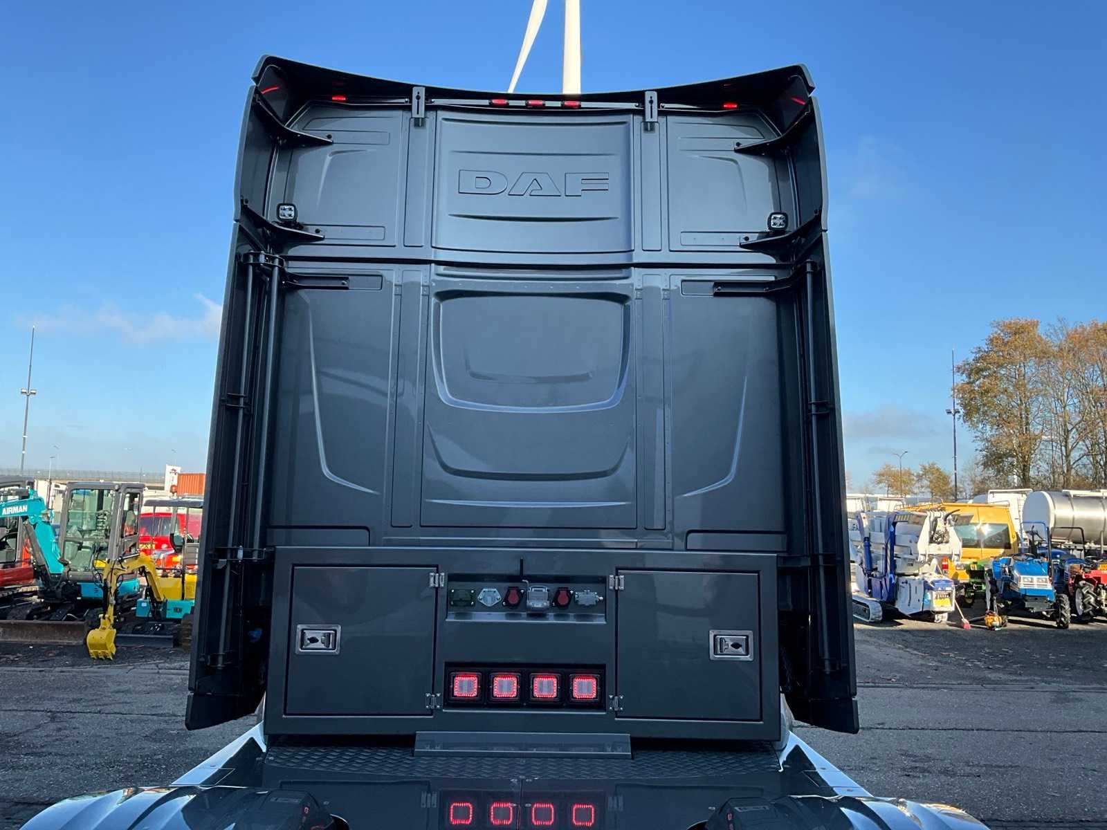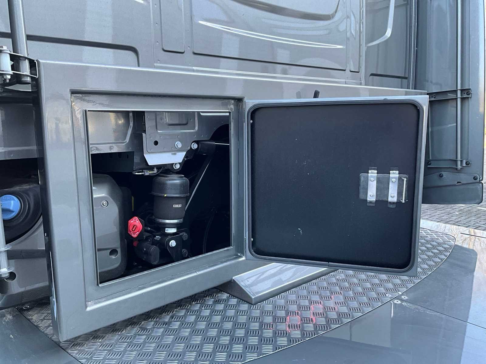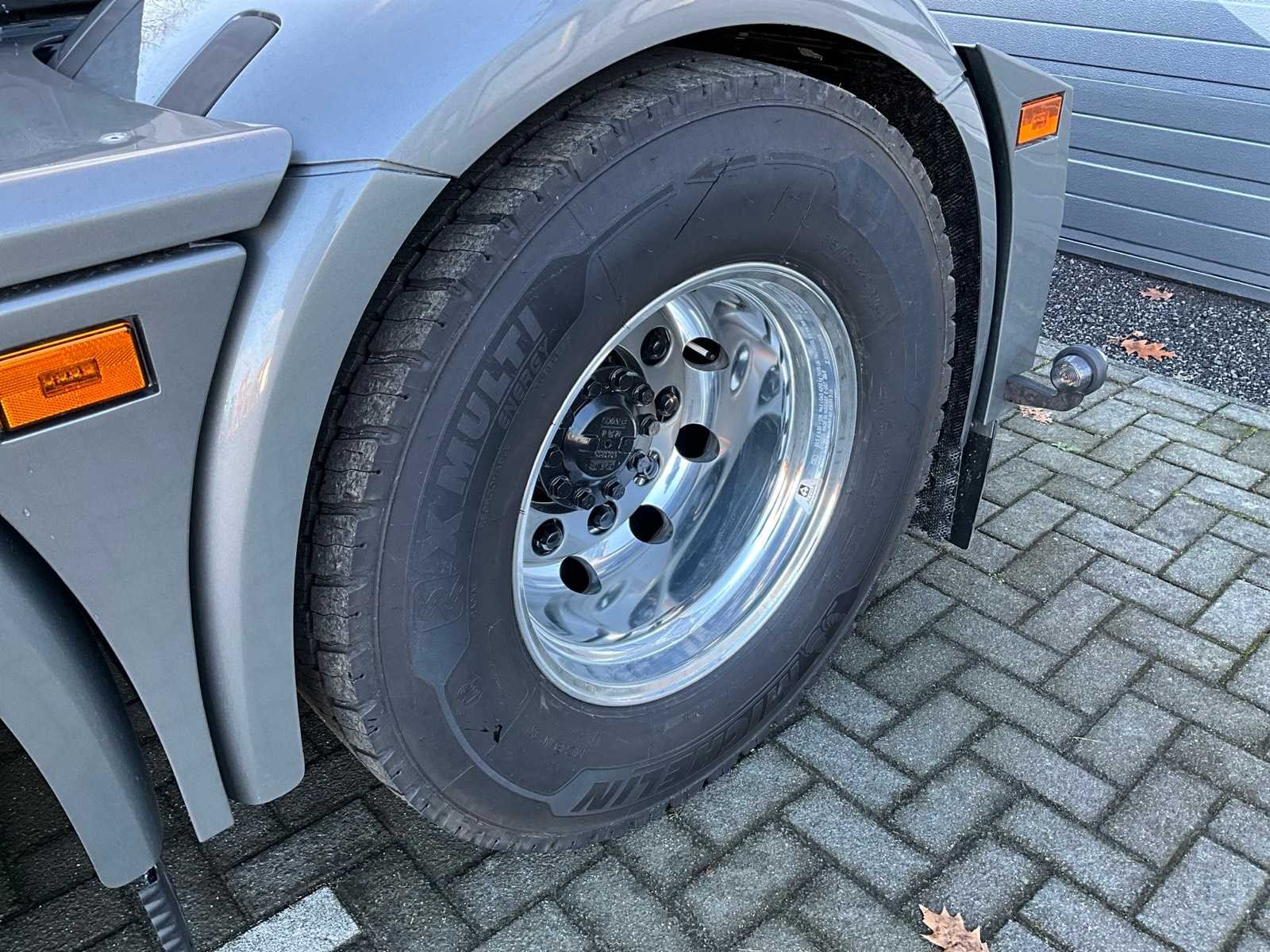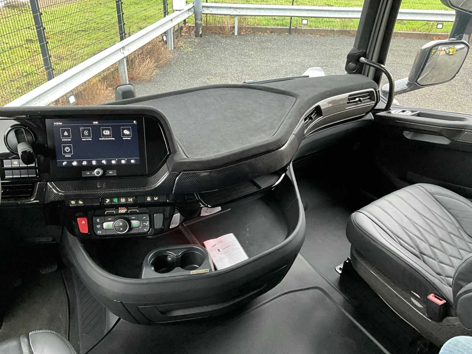 LED Balk en luchthoorns boven op dak Topverlichting voor en achter STRANDS verstralers RVS achterbumper met LED verlichting en een kist bij de luchtketel Vlakke plaat achter de schotel met kenteken en LED werklampen erin verwerkt Sideskirts met tankbanden en LED-verlichting Beugels onder de sideskirts met grond verlichting Vlonder half glad en half traanplaat met daarin kleppen bij de tankopeningen. Op maat gemaakte aluminium spatborden bij de vooras Slangenrek met led verlichting en deurtjes RVS gepolijst eindstuk bij de trekas aangesloten op de demper Spiegels en handvaten afgewerkt in carbon-look Interieur afgewerkt met carbon XG⁺ 530 FTG 6X2 Trekker Motor: MX-13-motor 390kw/530pk Cabinekleur .J. 5015MESI Vooras vóór 8,00t, luchtvering, 161N Bandenleverancier .Michelin Banden fr1 of voorassen 385/65R22.5 Banden aangedreven achteras(sen) 315/70R22.5 Retarder MX Engine Brake Brandstoftank(s) 710l alu br st tanks: 490 + 220L Voertuiggarantie warranty Plus-voertuig 2 jaar geen km limiet (va feb 2024) Koppelschotel : Jost JSK37E Schuifschotel Achterasgroep Achter 19,60t luchtvering Banden fr2 of voorloopas 385/55R22.5 Achterasoverbrenging: achterasverhouding 2,40 Connected Services : PACCAR Connect Uitlaatemissie Euro 6 Uitvoering versnellingsbak : Automatische versnellingsbak Traxon 12 versnellingen Wielbasis / achteroverbouw Wielbasis 3,95m / achteroverbouw 0,99m Voorzien van Climate Pack. Bevat de opties: Standairco, geïntegreerd (01967), gelaagd glas met zonnefolie (01886) en voorruit met zonnefolie (03232) PTO Voorbereid Kenteken: 24-BVZ-2 Merk: DAF Type: XG+ 530 FTG Bouwjaar: 2024 Chassisnummer VIN: XLRTGF5300G489629 Cilinderinhoud: 12902cc Kilometerstand bij opname: 400km APK vervaldatum: 2026-02-21 Datum eerste toelating: 2024-02-20 Datum eerste toelating (NL): 2024-02-20 Type transmissie: Automatisch Aantal assen: 3 Asconfiguratie: 6x2 Fuel Type: Diesel Laadvermogen: 17941kg Aantal sleutels: 1 Emissieklasse: 6 Slaapcabine: true Navigatie: true Eigen gewicht: 9059kg Aantal zitplaatsen: 2 Zelf rijdend exporteren: Mogelijk Automaat: true Diesel: true