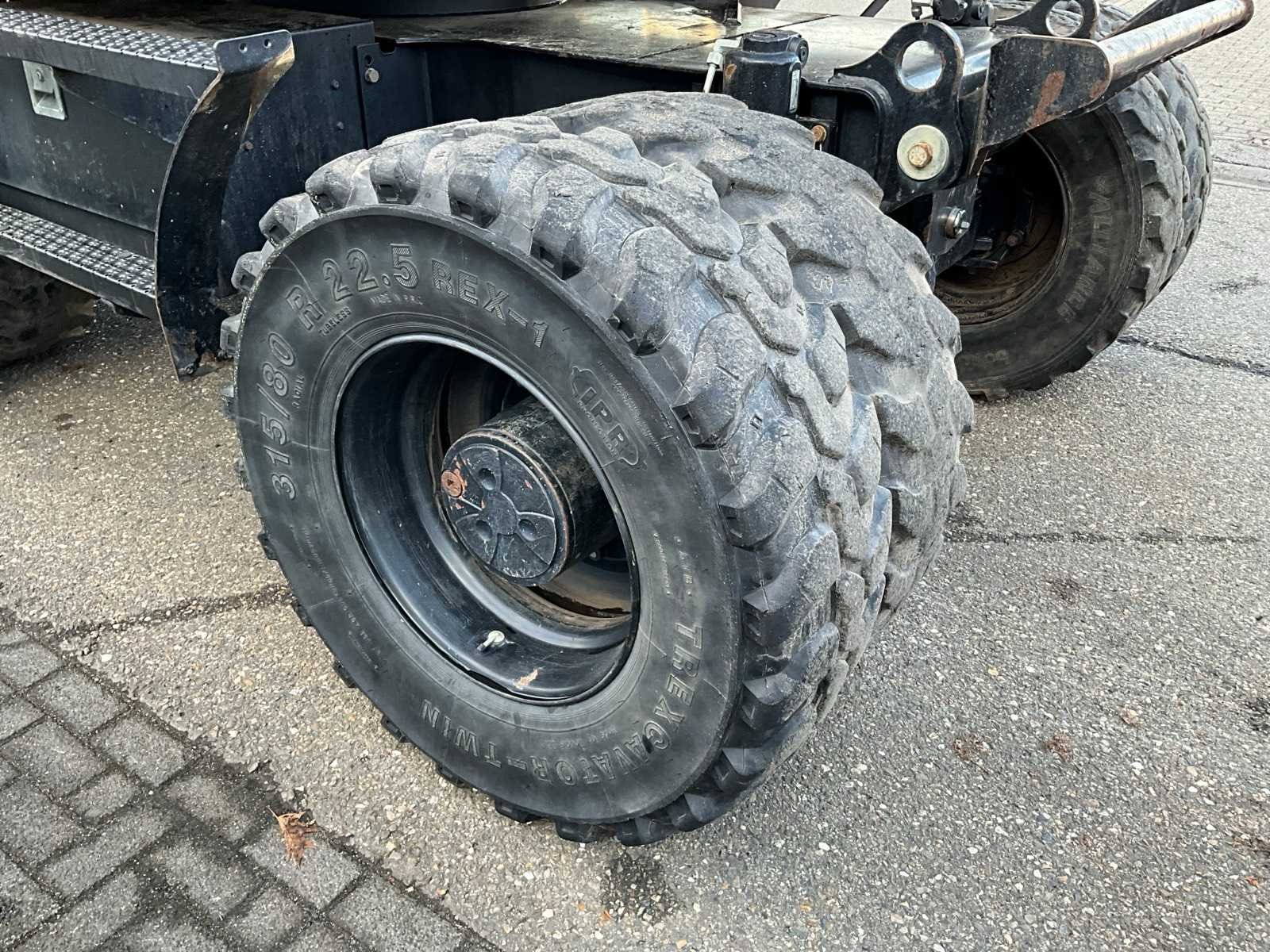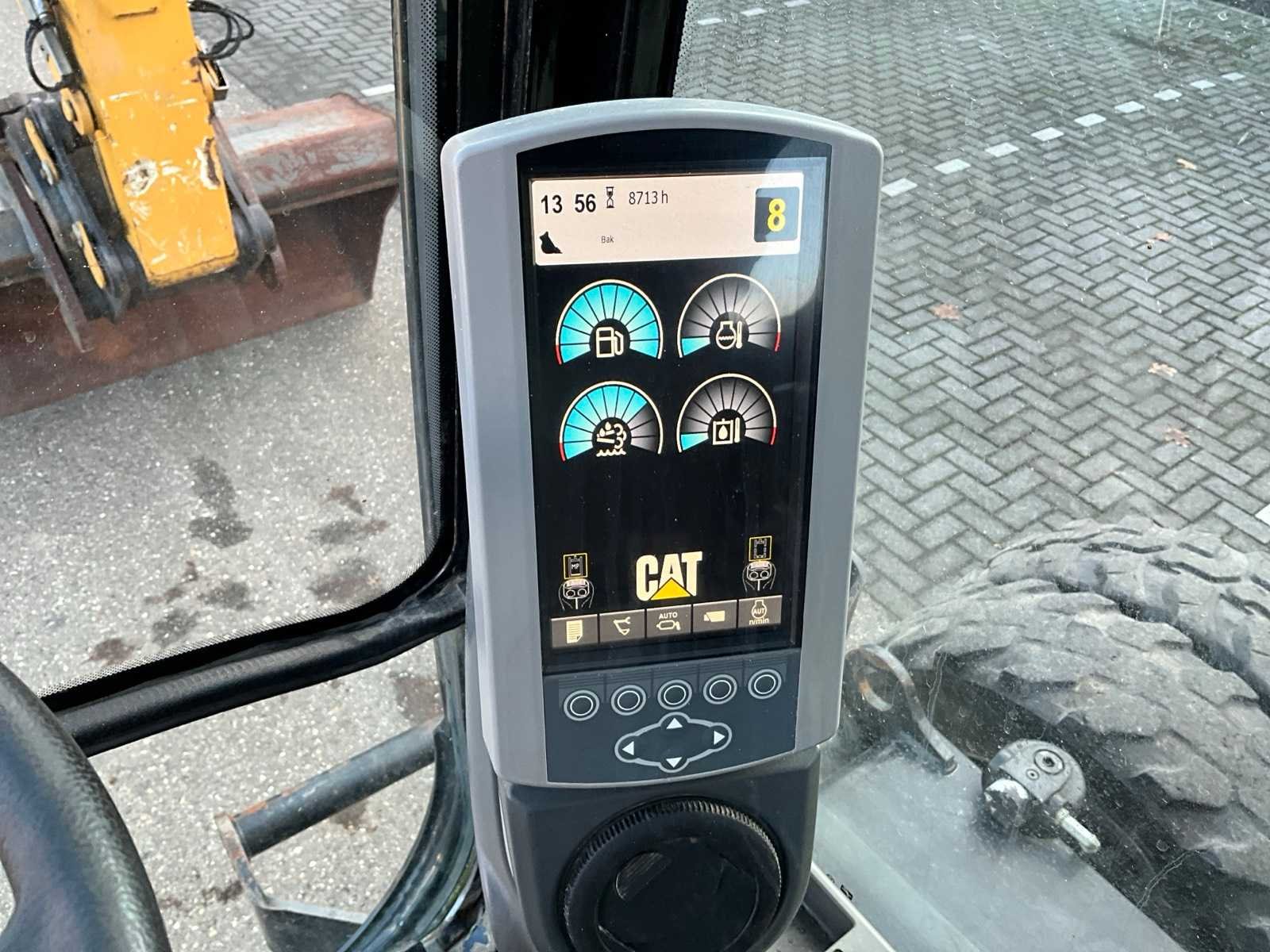 3-delige stelgiek, Hydraulische CW30 Snelwissel, CW30 slotenbak 2000mm, 3e + 4e functie proportioneel bediend, auto idle, as stabilisatie, schuifblad, automatische vetsmering, climate control, giekvering, brandstofvulpomp, camera achter, Merk: Caterpillar Type: M313D Bouwjaar: 2016 Serienummer: CATM313DLK3D01151 Kenteken: TZV-87-J Eigen gewicht: 15000kg Bandenmaat: 315/80 R22.5 dubbellucht Aantal assen: 2 Aantal cilinders: 4 Merk motor: Caterpillar Afgelezen urenstand: 8713hr Totale afmeting L: 9000mm Totale afmeting Breedte: 2550mm Totale afmeting Hoogte: 3100mm