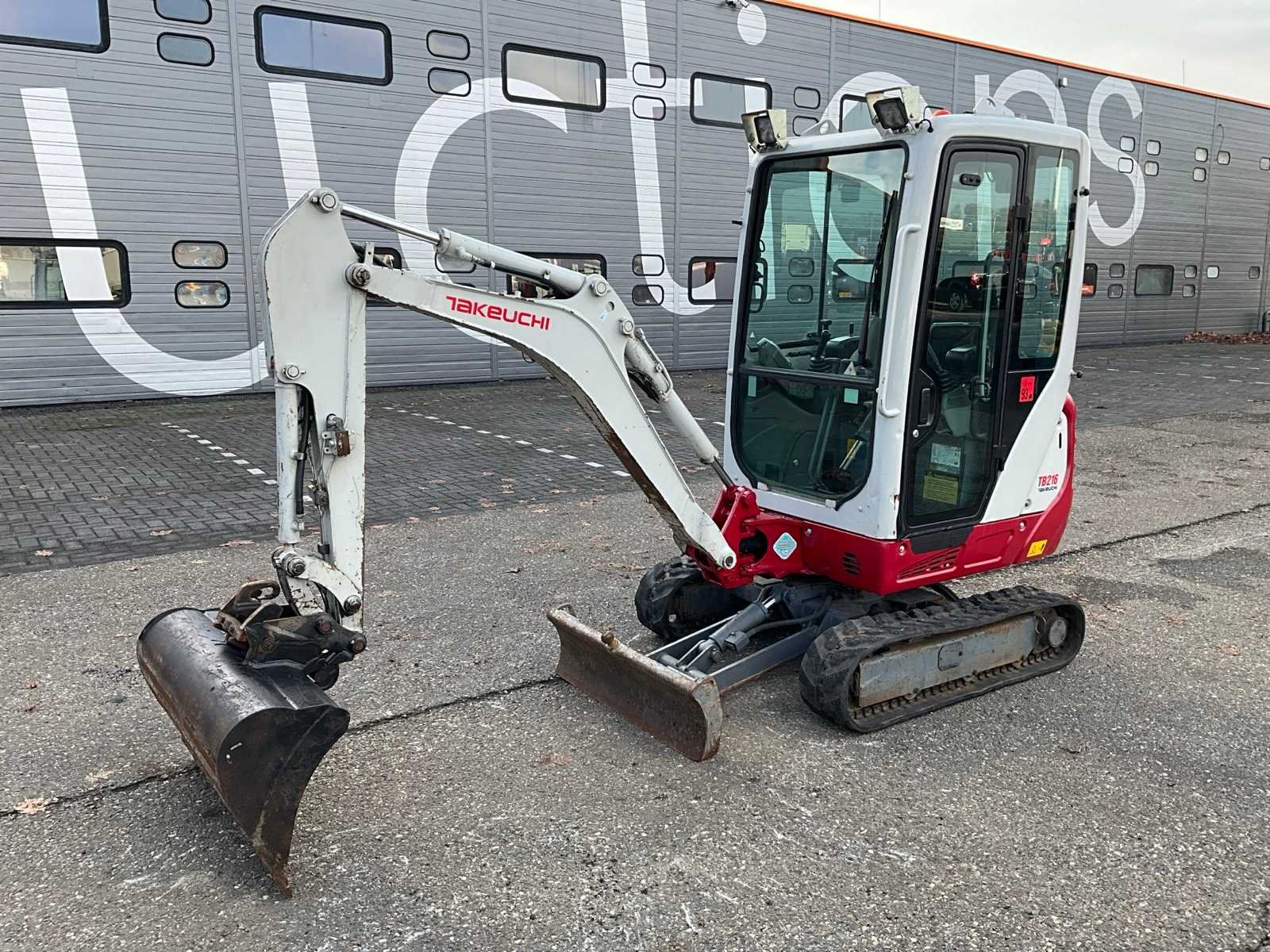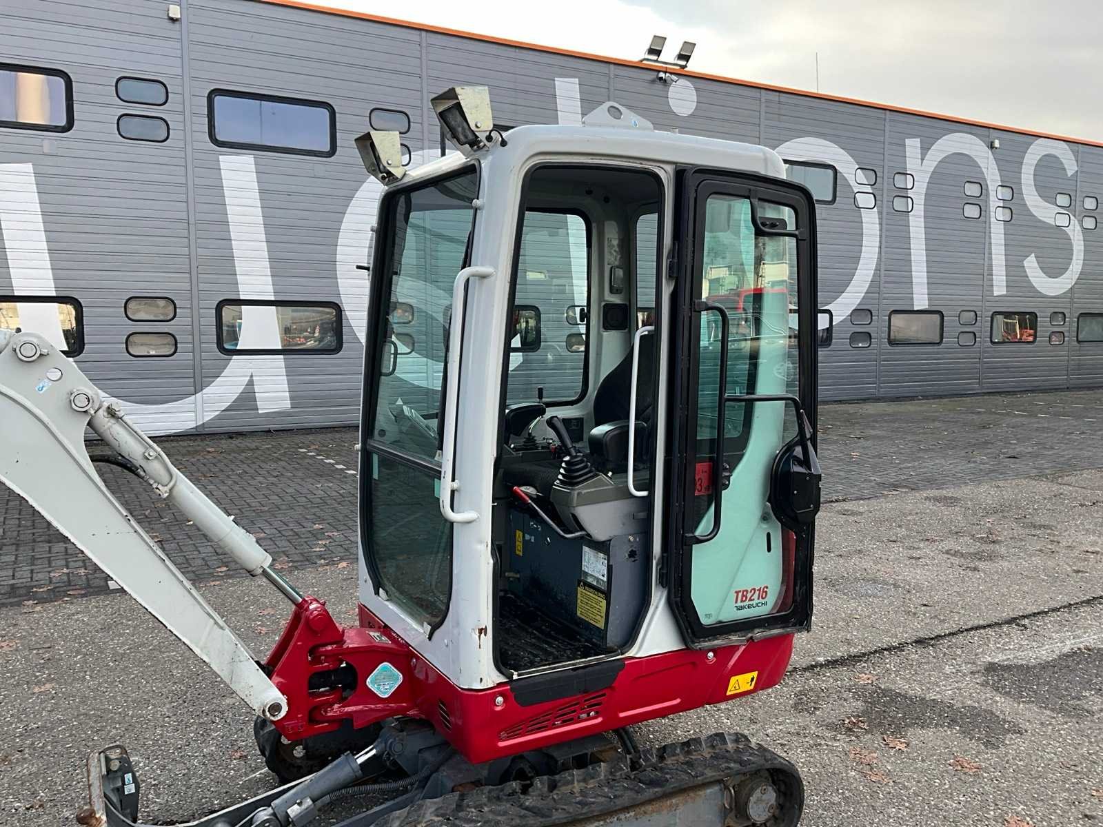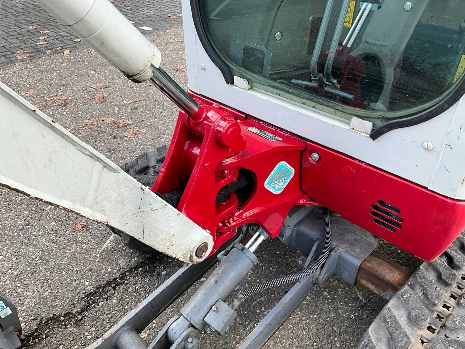 CW05 hydraulische snelwissel, CW05 slotenbak 1000mm, extra hydraulische functie, zwenkgiek, verstelbaar rijwerk, 2e rijsnelheid Merk: Takeuchi Type: TB216 Bouwjaar: 2020 Serienummer: 216013190 Merk motor: Yanmar Motorvermogen (kW): 11kW Aantal cilinders: 3 Brandstof: Diesel Bedrijfsgewicht: 1865kg Inclusief graafbak: Yes Rups breedte: 230mm Afgelezen urenstand: 4849 Eigen gewicht: 1865kg Totale afmeting L: 4000mm Totale afmeting Breedte: 1300mm Totale afmeting Hoogte: 2350mm