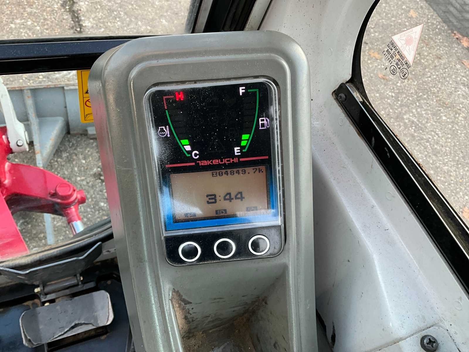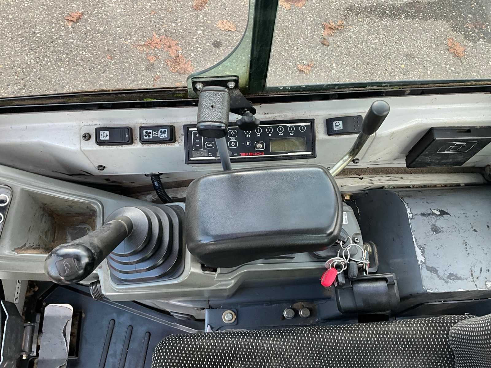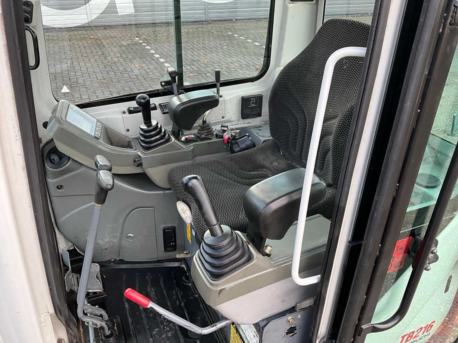 CW05 hydraulische snelwissel, CW05 slotenbak 1000mm, extra hydraulische functie, zwenkgiek, verstelbaar rijwerk, 2e rijsnelheid Merk: Takeuchi Type: TB216 Bouwjaar: 2020 Serienummer: 216013190 Merk motor: Yanmar Motorvermogen (kW): 11kW Aantal cilinders: 3 Brandstof: Diesel Bedrijfsgewicht: 1865kg Inclusief graafbak: Yes Rups breedte: 230mm Afgelezen urenstand: 4849 Eigen gewicht: 1865kg Totale afmeting L: 4000mm Totale afmeting Breedte: 1300mm Totale afmeting Hoogte: 2350mm