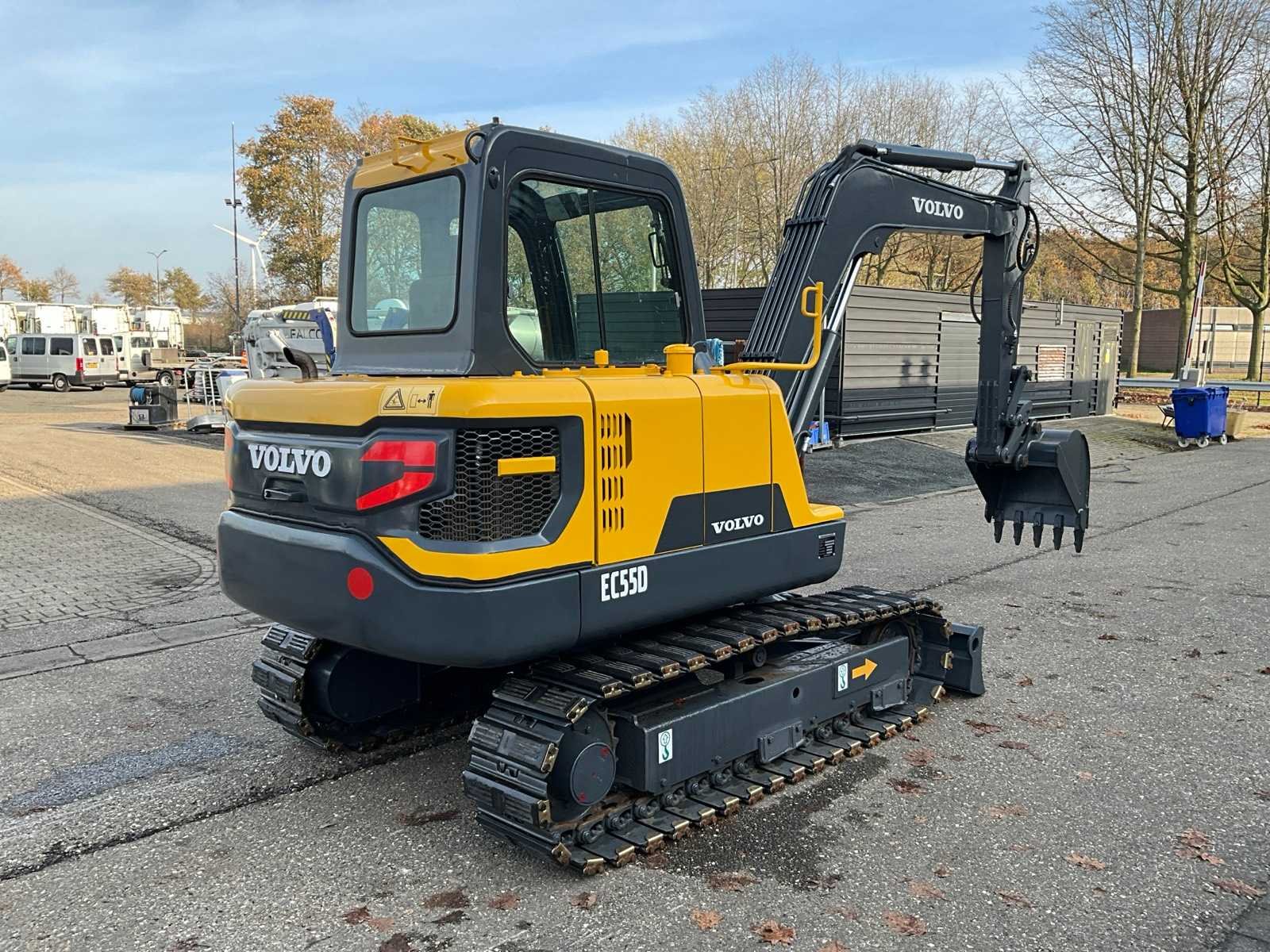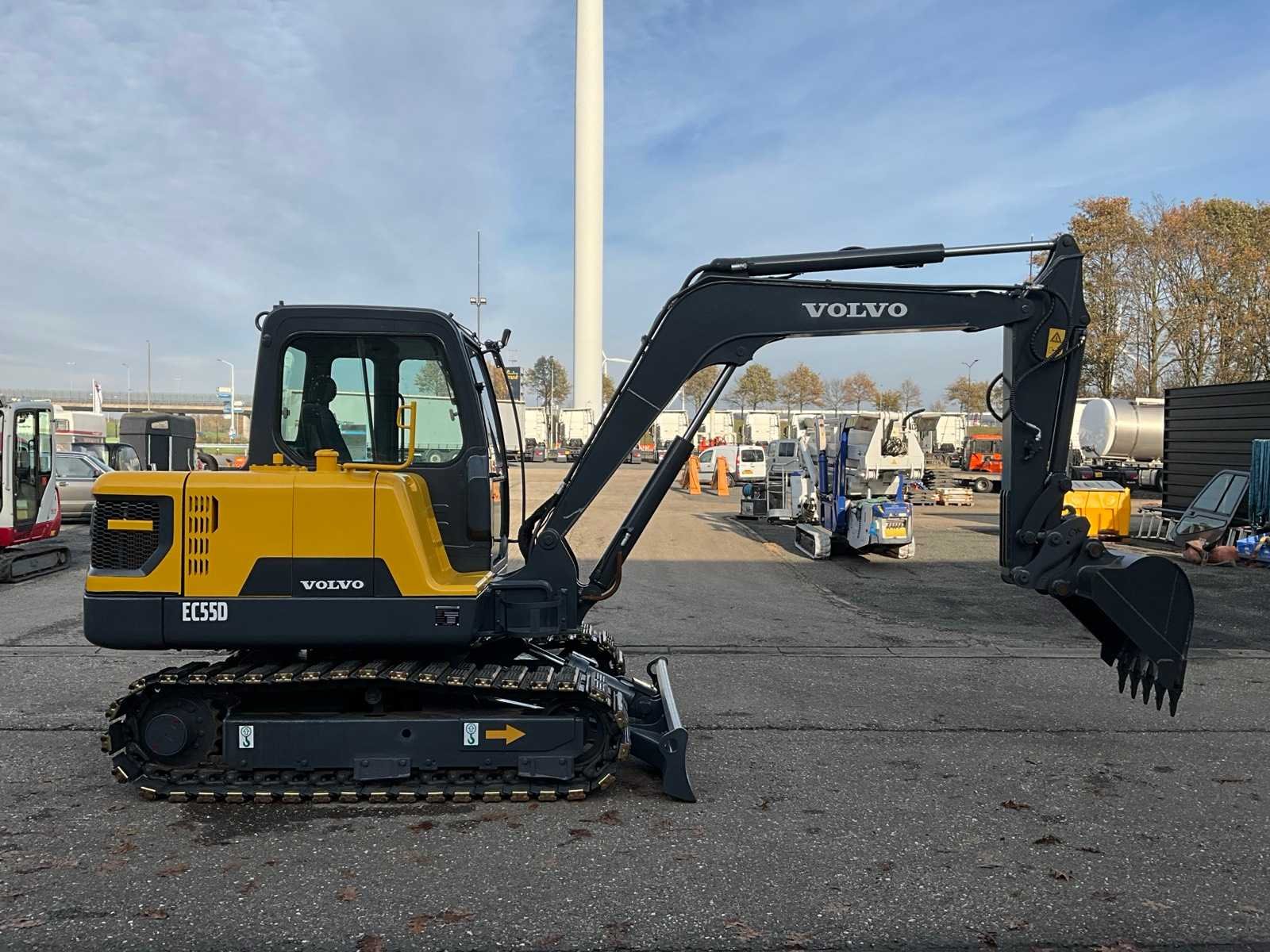 Dieplepelbak met tanden 700mm, mechanische snelwissel, extra hydraulische functie, schuifblad, stalen rupsen met rubber pads, 2e rijsnelheid Merk: Volvo Type: EC55D Bouwjaar: 2019 Serienummer: 00230222 Merk motor: Volvo Motorvermogen (kW): 36kW Aantal cilinders: 4 Brandstof: Diesel Bedrijfsgewicht: 5630kg Met graafbak: true Graafbak afm. b: 700mm Rups breedte: 380mm Cabine: true Afgelezen urenstand: 2875 Totale afmeting L: 5800mm Totale afmeting Breedte: 2700mm Totale afmeting Hoogte: 2000mm