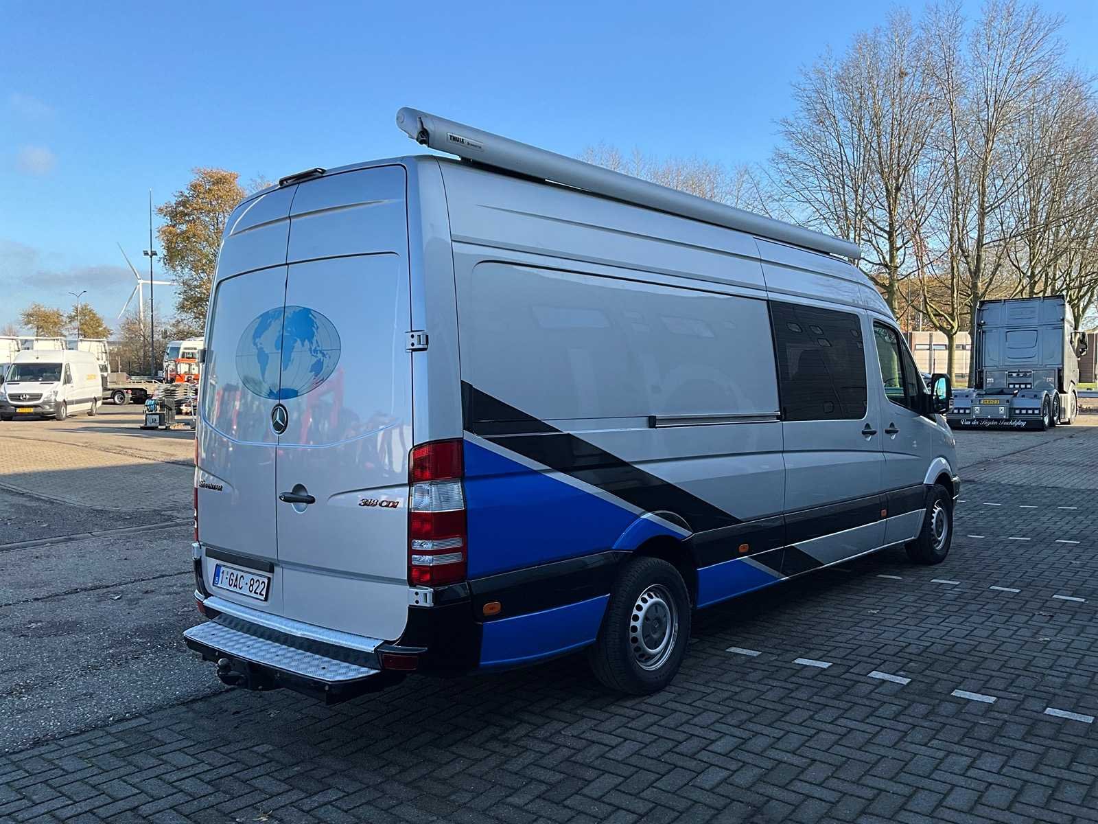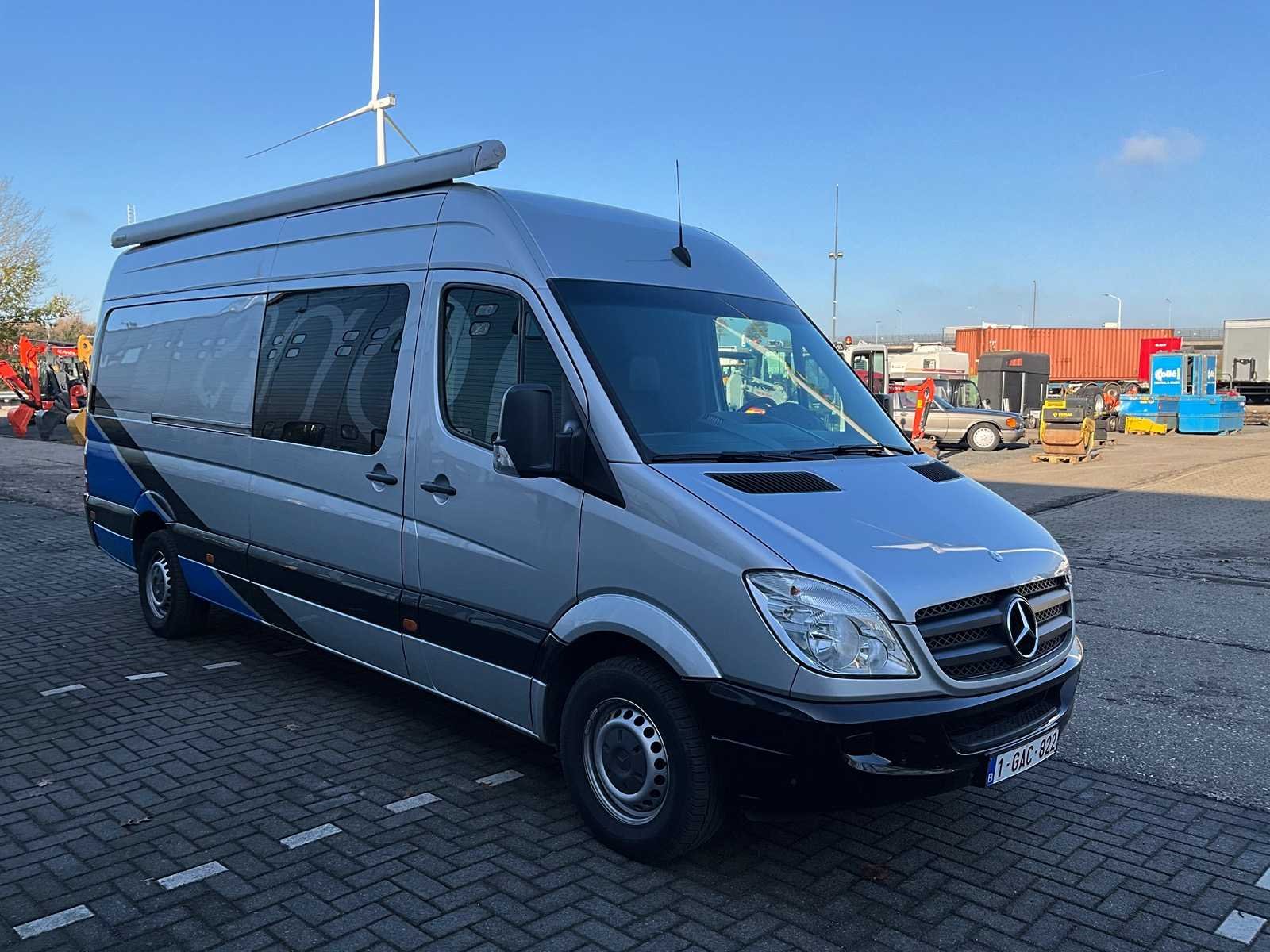Staat geregistreerd als camper, voertuig is gebruikt voor motorcross sport, lange uitvoering bus, achter gedeelte ingericht als werkplaats/opslag motoren, wordt compleet geleverd met compressor en generator, ingebouwde zithoek met keukentje, diverse opbergkasten ingebouwd, zonneluifel aangebouwd, elektrische ramen en spiegels, stuurwielbediening, cruisecontrol, airco, stoelverwarming bestuurder en passagiersstoel, standkachel. Merk: Mercedes-Benz Model: Sprinter 318CDI Chassisnummer: WDB9066351S316102 Aantal zitplaatsen: 2 Transmissie: Automaat Datum eerste toelating: 08-02-2011 Bouwjaar: 2011 Afgelezen kilometerstand: 244250km Vermogen (kW): 135kW Cilinderinhoud: 2987cc Emissieklasse: EURO4 Brandstof: diesel Ledig gewicht: 3340