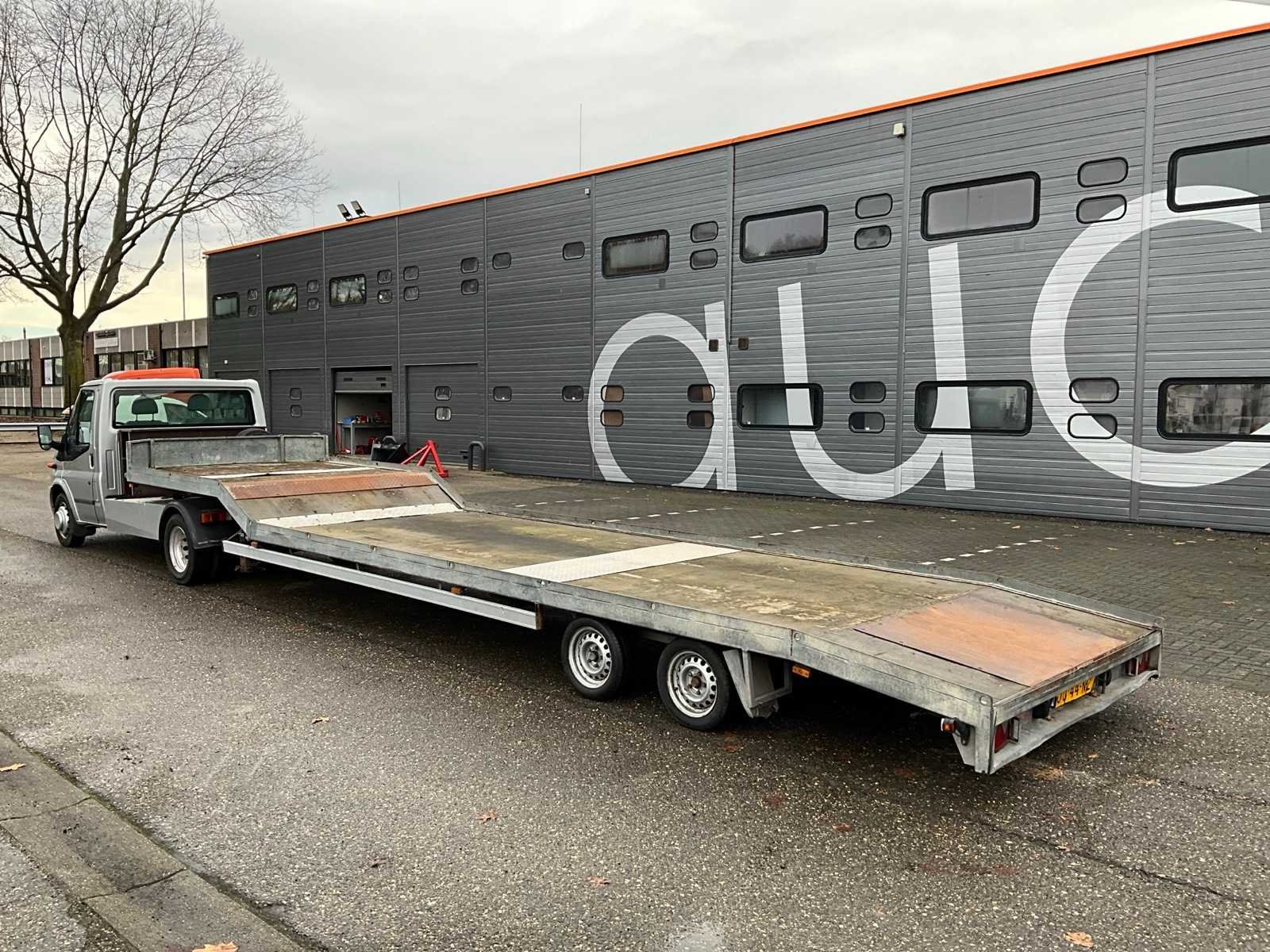 Elektrische ramen, Automatische verlichting, Elektrische spiegels, ESP, Elektrische verwarmde voorruit, Radio cd speler, Airco, 13-polige stekker 12V, ABS stekker, Rema stekker, 2001 Doornwaard DT 5000 OZ oplegger (OG-44-NZ), max massa 5000kg, Eigen gewicht 1440kg, Serienummer: XL9DT500098124032, Houten bodem, Laadvloer bovendek 2300x2200 mm, Laadvloer onder 6450x2200mm, Combinatie lengte 12.7m Kenteken: 82-VPB-8 Merk: Ford Type: 350M 3.2 TDCI DC Model: Transit Bouwjaar: 2008 Chassisnummer: WF0FXXTTFF8B65956 Afgelezen kilometerstand: 179487km Cilinderinhoud: 3199cc Vermogen (kW): 147kW Brandstof: Diesel Datum eerste toelating: 2008-03-06 Datum eerste toelating (NL): 2008-03-06 APK vervaldatum: 2025-01-18 NAP status: Logisch Aandrijving: RWD Transmissie: handgeschakkeld Aantal zitplaatsen: 3 Kleur: niet van toepassing Nationaliteit documenten: Nederlands Stuurwiel: Links Bruto BPM (NL): 11242 Aantal deuren: 2 Aantal sleutels: 1 Ledig gewicht: 2120kg Laadvermogen: 1380kg Aantal cilinders: 5 Velgmaat: 16" Carrosserie: BE-trekker Emissieklasse: 4 Startinformatie: start en rijdt