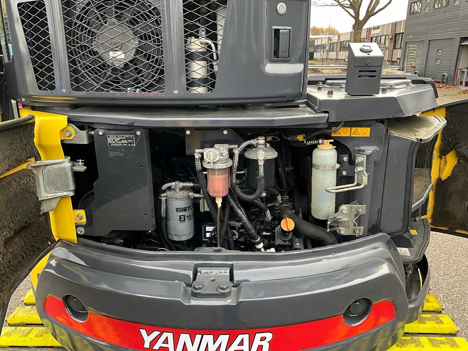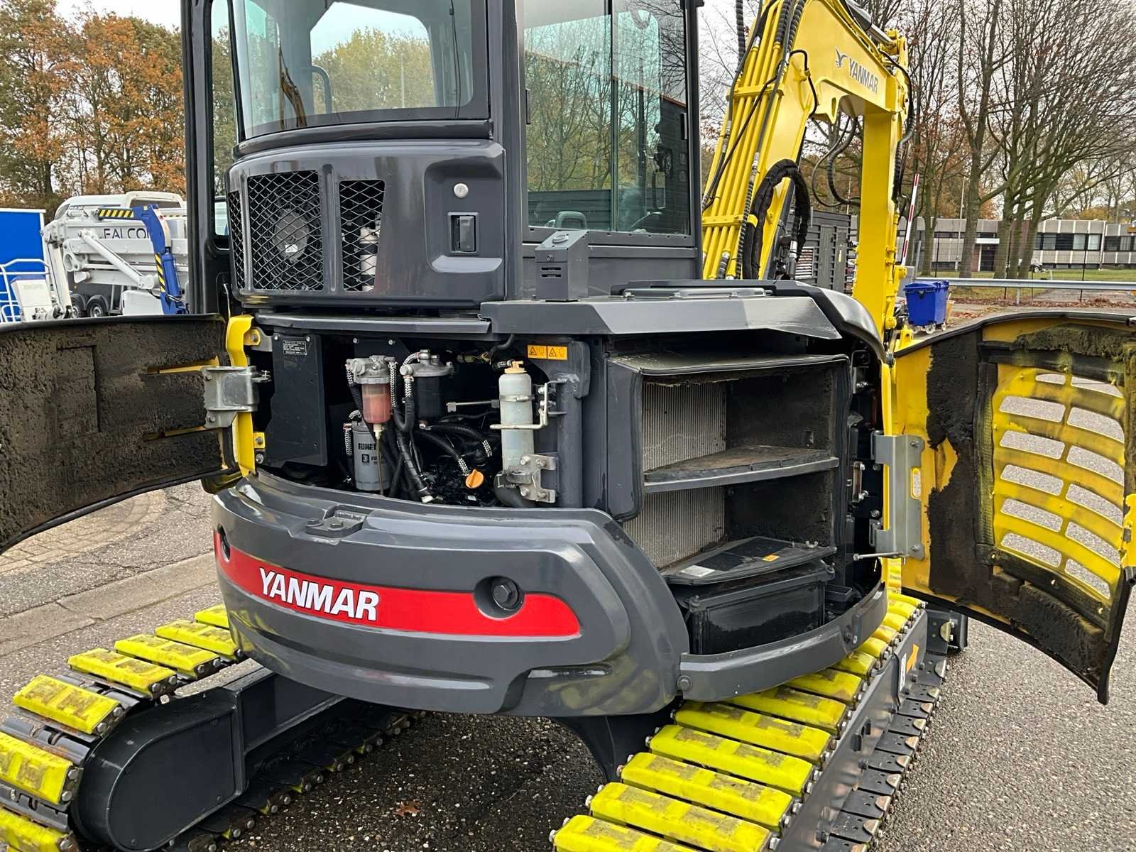 Dieplepelbak met tanden 700mm, hydraulische snelwissel, extra hydraulische functie, zwenkgiek, schuifblad, Auto Idle, 2e rijsnelheid, stalen rupsen met rubber pads, Merk: Yanmar Type: VIO50-6B Bouwjaar: 2018 Serienummer: 60507 Merk motor: Yanmar Aantal cilinders: 4 Brandstof: Diesel Met graafbak: true Graafbak afm. b: 700mm Rups breedte: 350mm Cabine: true Afgelezen urenstand: 3863 Totale afmeting L: 5700mm Totale afmeting Breedte: 2000mm Totale afmeting Hoogte: 2700mm