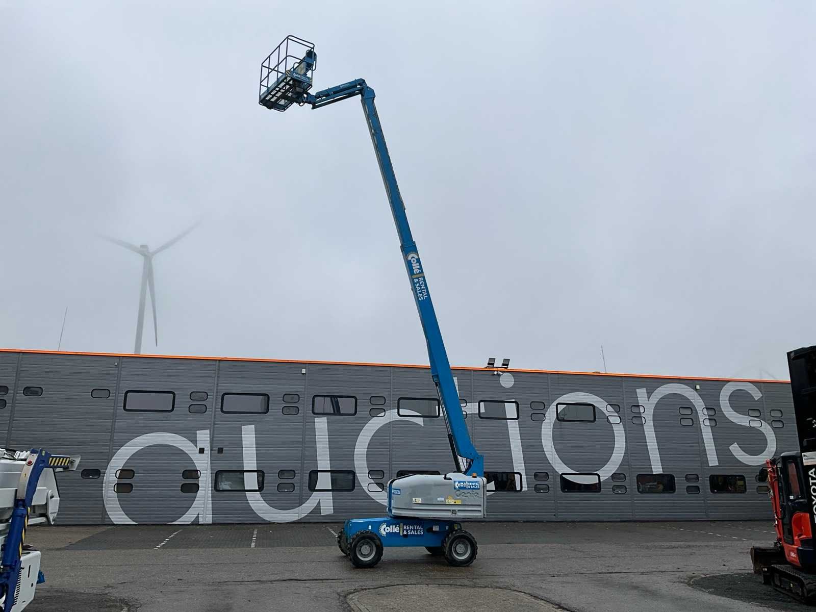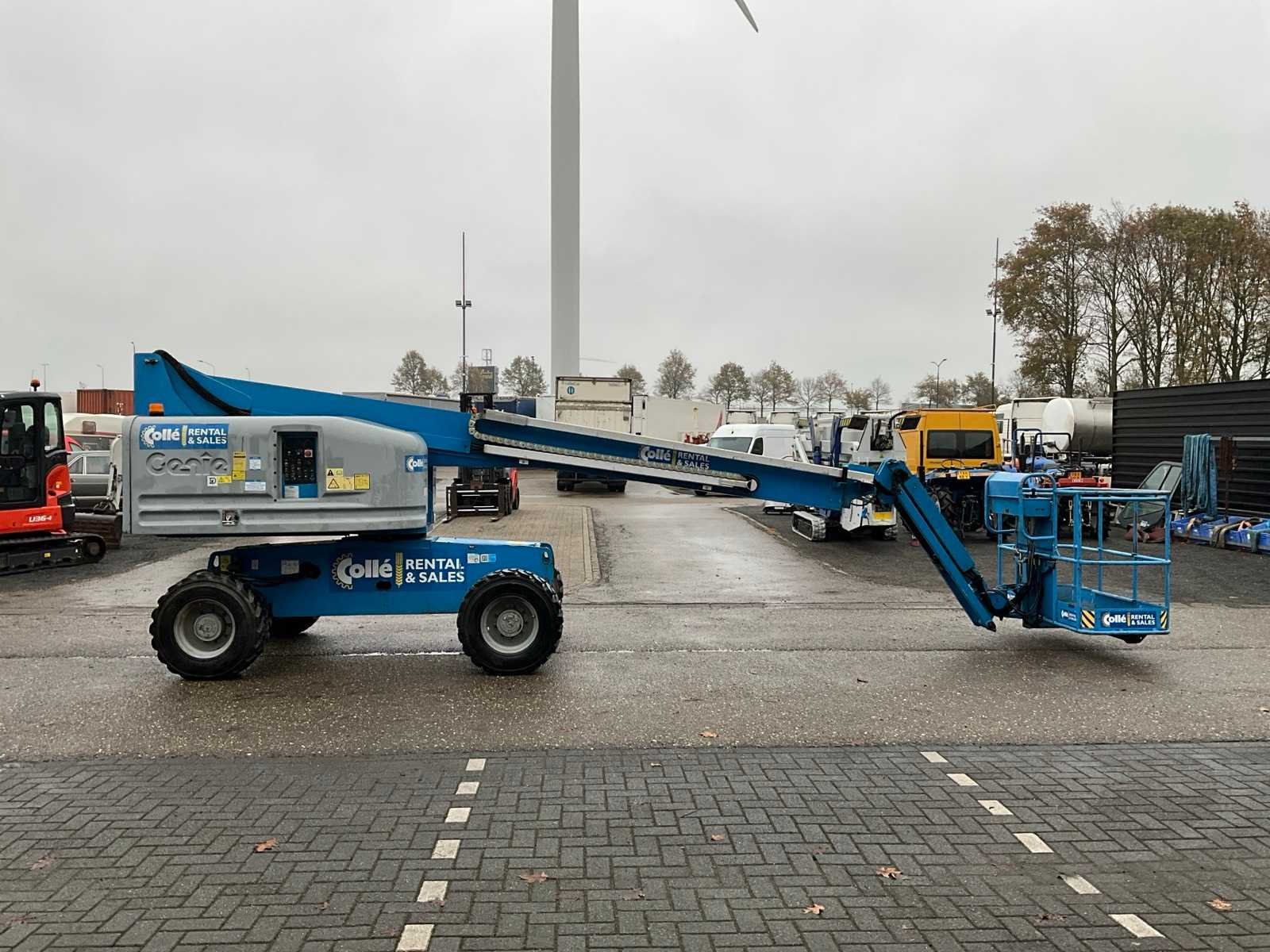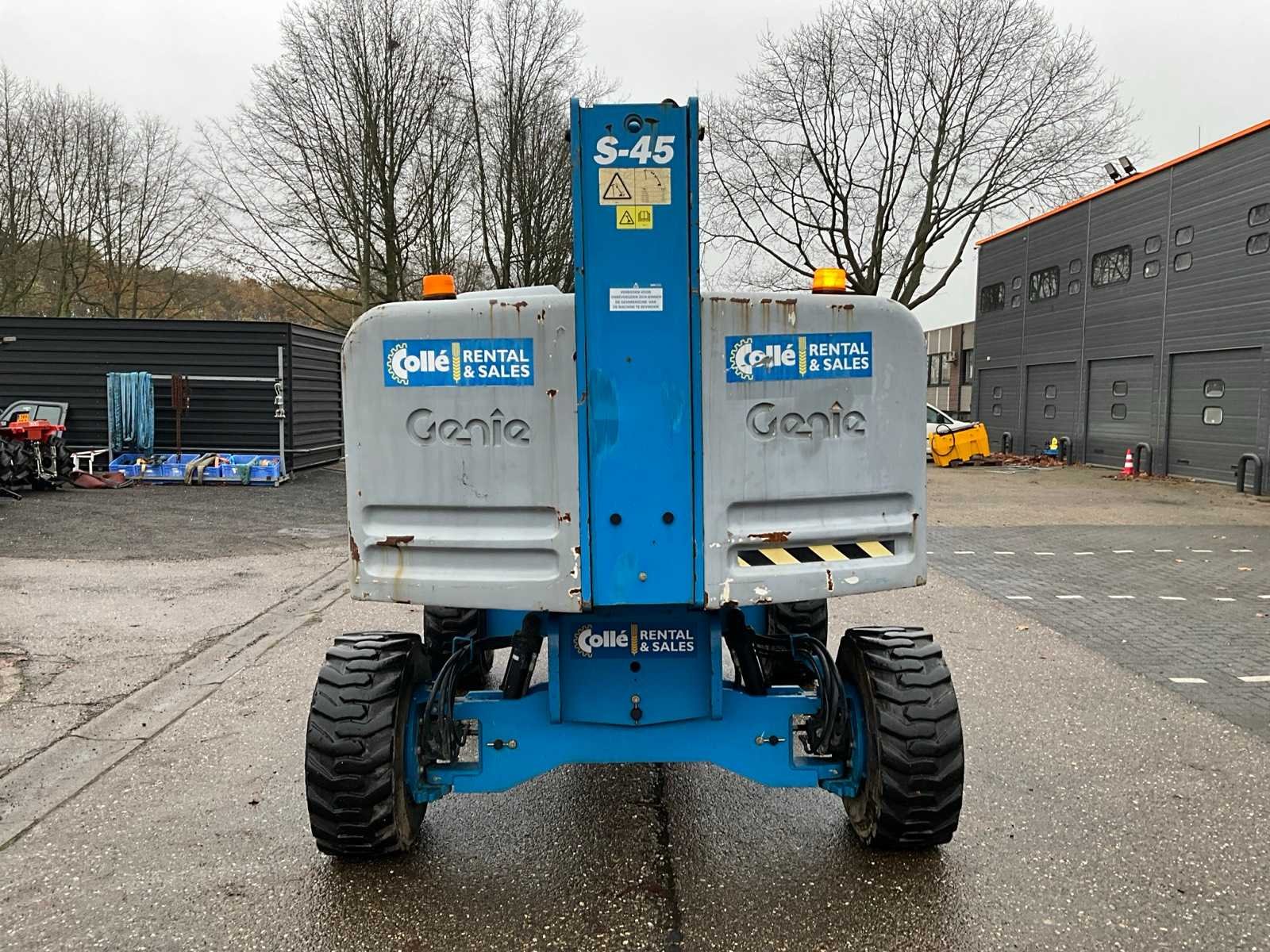 2-delige mast met Jip, roterende manbak, 220V aansluiting in mambak, asstabilisatie, 3-cilinder Deutz luchtgekoelde motor Merk: Genie Type: S-45 Bouwjaar: 2014 Serienummer: S4514-20082 Diesel: true Motorvermogen (kW): 36kW Telescoop hoogwerker: true Werkhoogte: 13720mm Horizontale rijkwijdte: 11200mm Plateau afm. l: 700mm Plateau afm. b: 1800mm Platform capaciteit: 227kg Afgelezen urenstand: 3067 Eigen gewicht: 6805kg Totale afmeting L: 7000mm Totale afmeting Breedte: 2300mm Totale afmeting Hoogte: 2500mm