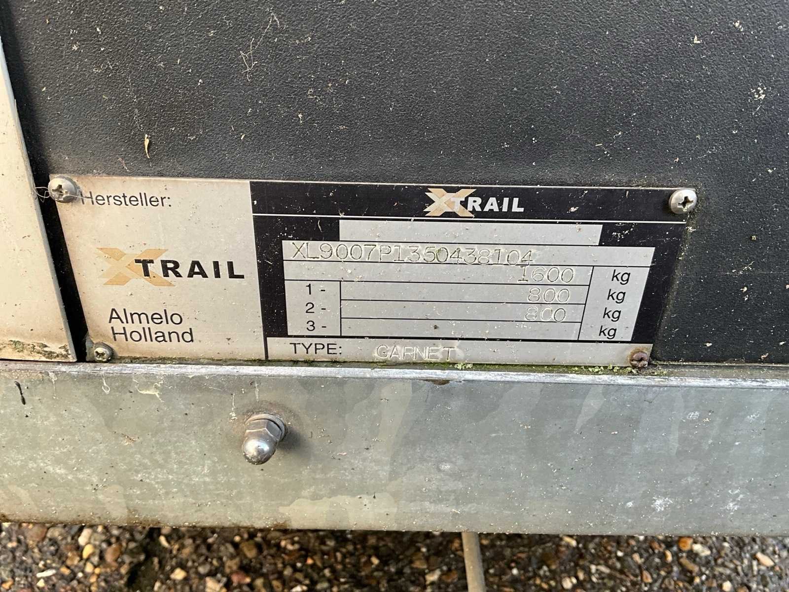 Oplooprem, 13-polige stekker 12V, zijdeur, reservewiel, Merk: Xx-trail Type: Garnet Bouwjaar: 2007 Chassisnummer: XL9007P1350438104 Aantal assen: 2 Laadbak afmeting l: 300cm Laadbak afmeting b: 130cm Ledig gewicht: 570kg Laadvermogen: 800kg Gesloten opbouw: true Datum eerste toelating: 2007-12-11 Datum eerste toelating (NL): 2007-12-11 Kenteken: WZ-HS-50 Kentekenpapieren compleet?: true Hoogte: 280cm Lengte: 450cm Breedte: 200cm Nationaliteit documenten: Nederland