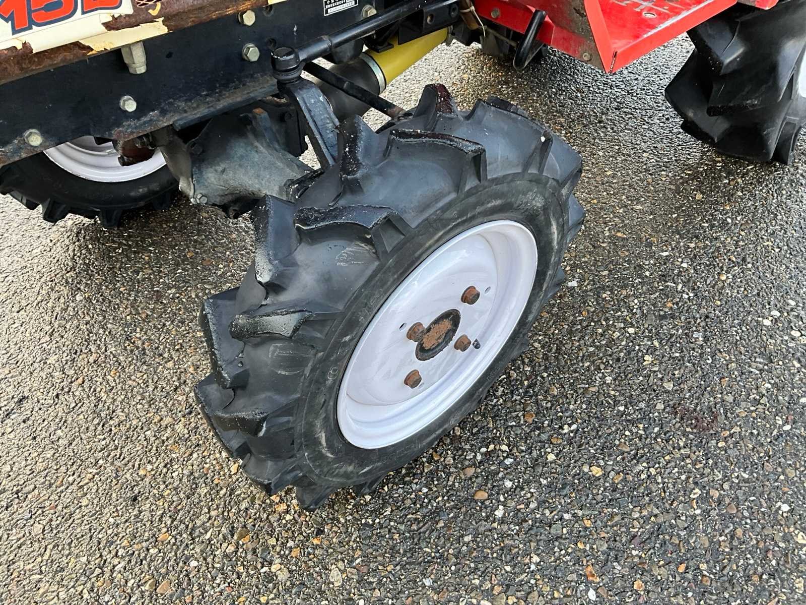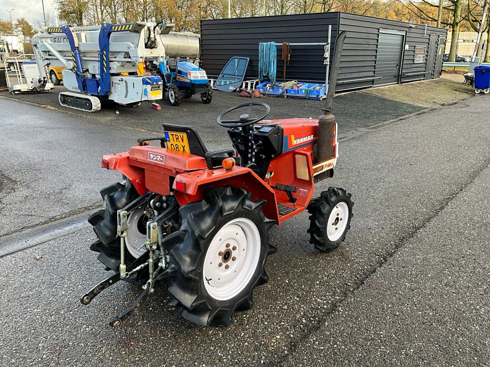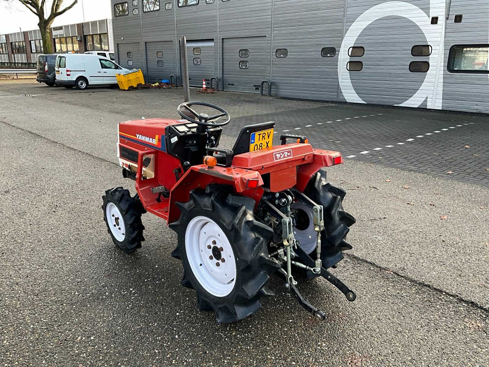 4WD, 3-cilinder Yanmar diesel motor, handgeschakeld 3 versnellingen 2 groepen + achteruit, 3- standen PTO, 3-pint hefinrichting, topstang Merk: Yanmar Type: F15D Serienummer: 15E-04546 Kenteken: TRV-08-X Afgelezen urenstand: 1345 Versnellingsbaktype: Handgeschakeld Bandenmaat voor: 5.00 - 12 Bandenmaat achter: 8 - 18 Totale afmeting L: 2400mm Totale afmeting Breedte: 1010mm Totale afmeting Hoogte: 1750mm Datum eerste toelating: 1989-06-30