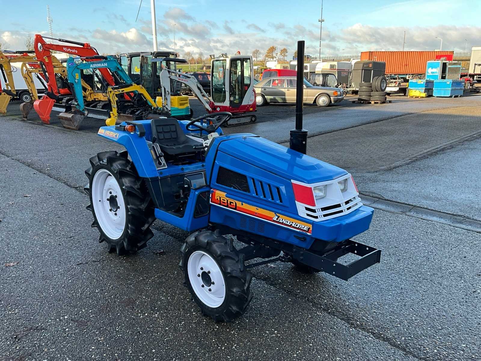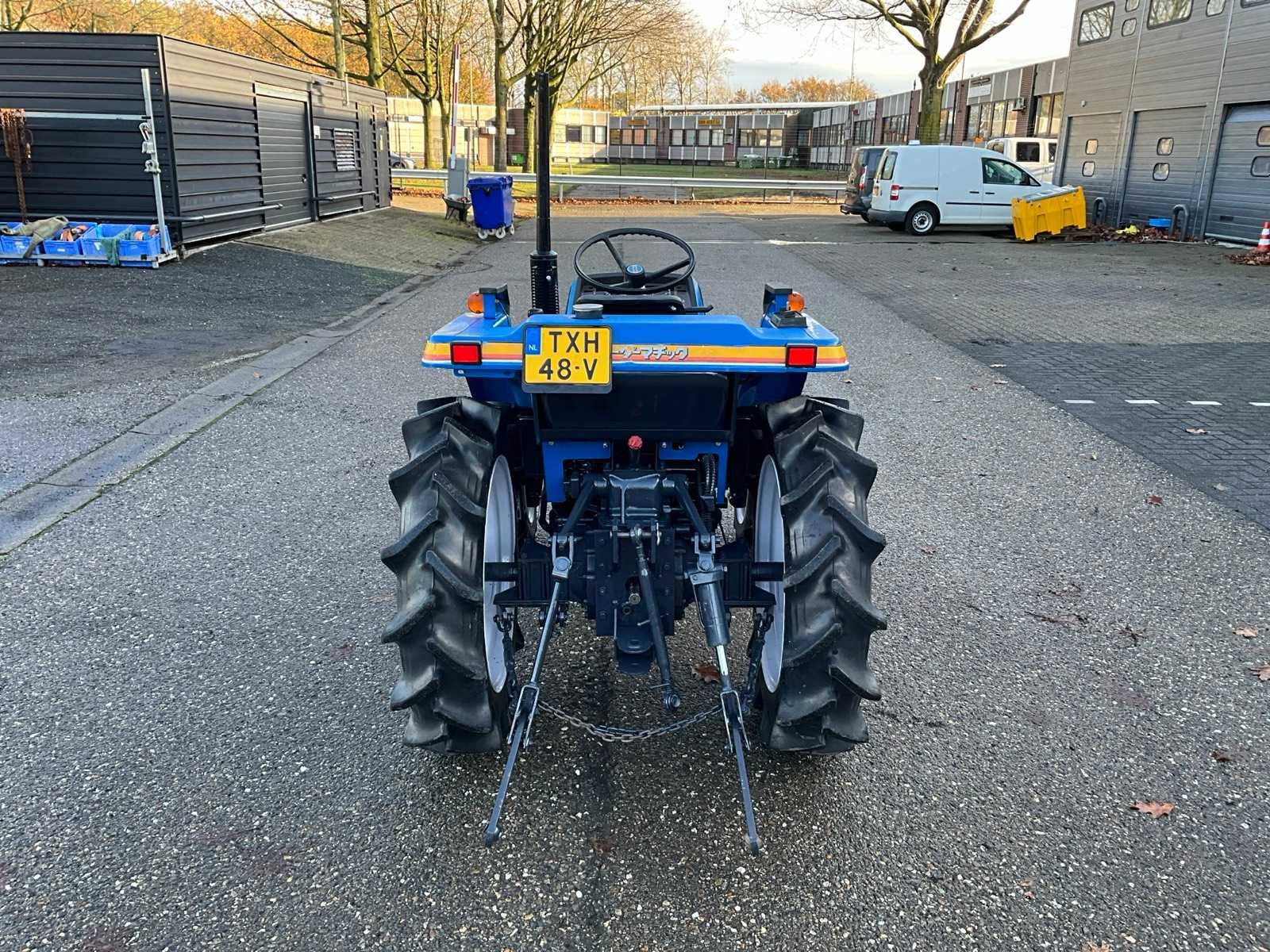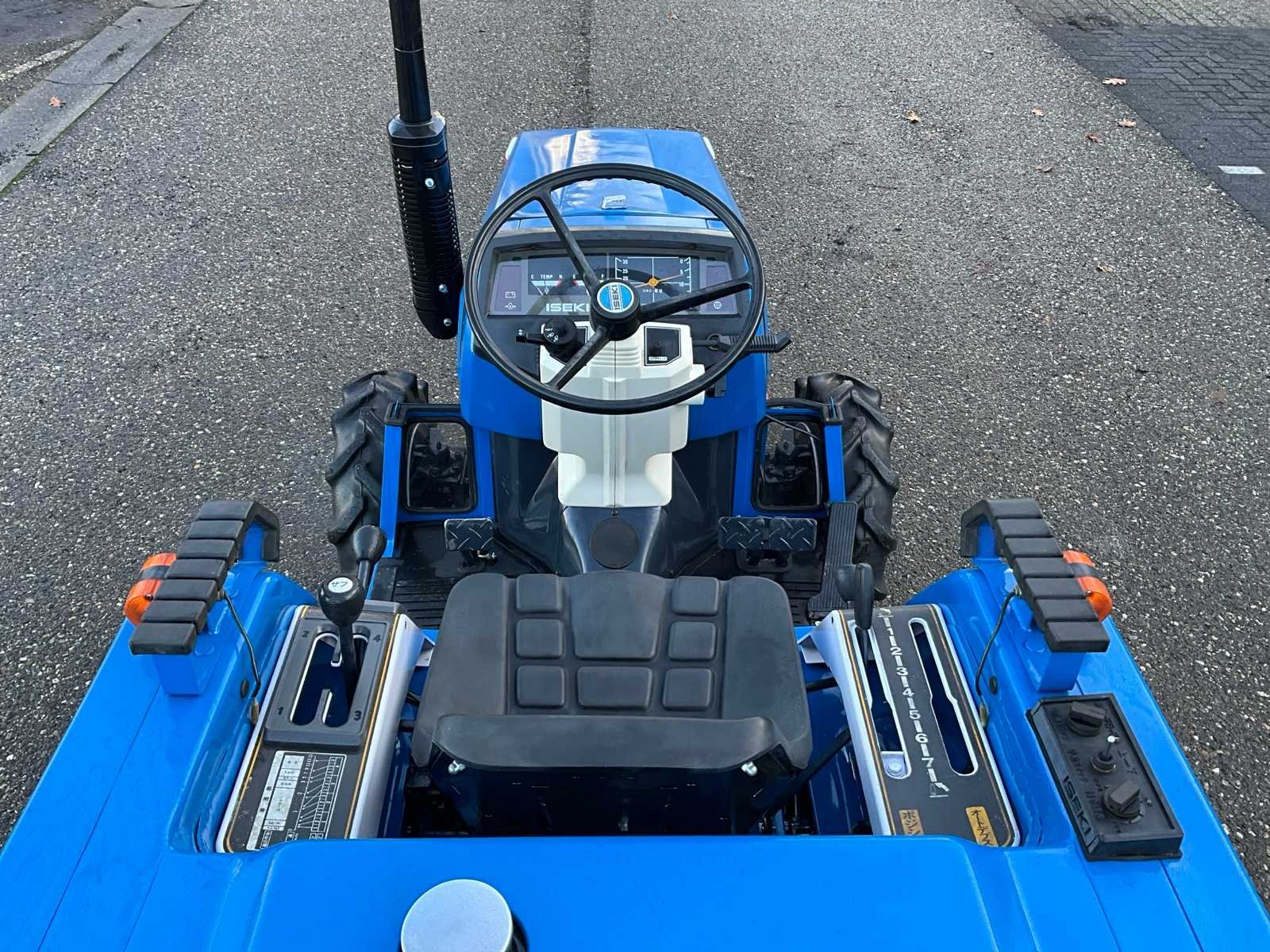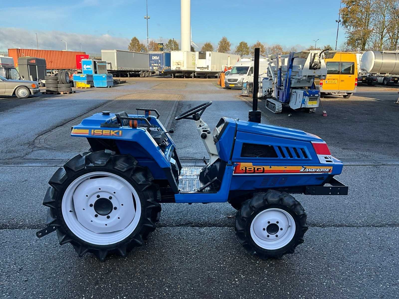 4WD, 3-cilinder iseki dieselmotor, handgeschakeld 3 versnelling 4 groepen + achteruit, 3-standen PTO, 3-punt hefinrichting met schuintestelling Merk: Iseki Type: Landhope 180 Serienummer: 01320 Kenteken: TXH-48-V Motorvermogen (kW): 18kW Afgelezen urenstand: 801 Versnellingsbaktype: Handgeschakeld Bandenmaat voor: 6-14 Bandenmaat achter: 8.8-24 Totale afmeting L: 3100mm Totale afmeting Breedte: 1200mm Totale afmeting Hoogte: 1900mm Datum eerste toelating: 1992-06-30