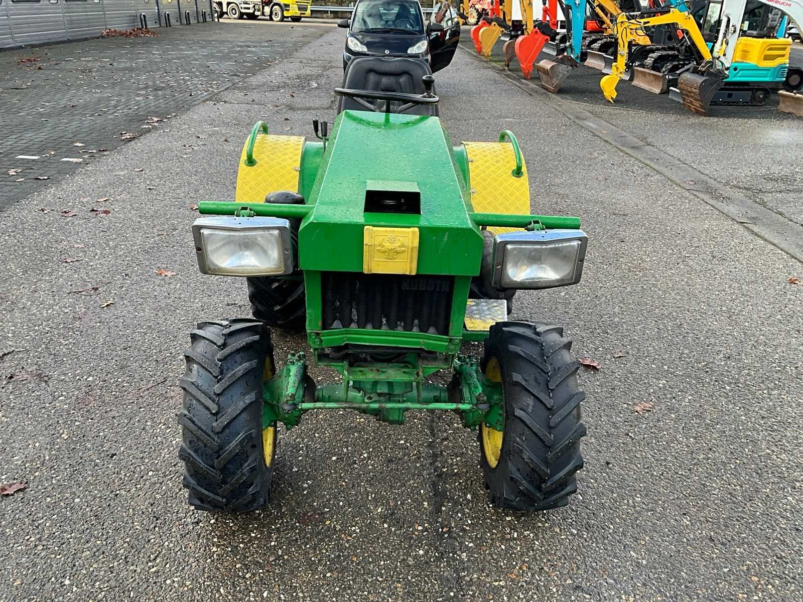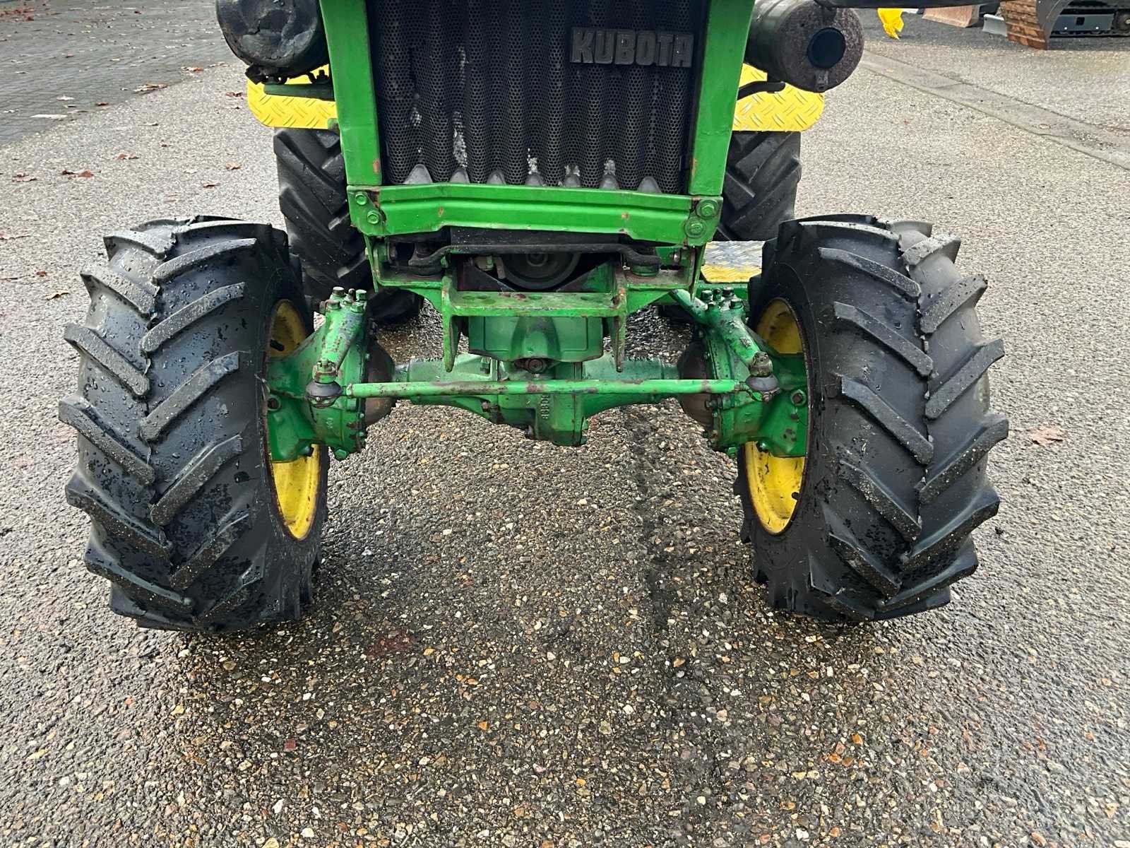 4WD, Kubota 3-cilinder diesel motor, 3-punt hefinrichting, PTO Merk: Kubota Type: B7100 Serienummer: B7100D77250 Afgelezen urenstand: 1158 Versnellingsbaktype: Handgeschakeld 3 versnellingen Bandenmaat voor: 23x8.50 - 12 Bandenmaat achter: 11.5/80 - 15.3 Aantal hydraulische ventielen voor: 0 Aantal hydraulische ventielen achter: 0 Totale afmeting L: 2300mm Totale afmeting Breedte: 1200mm Totale afmeting Hoogte: 1200mm