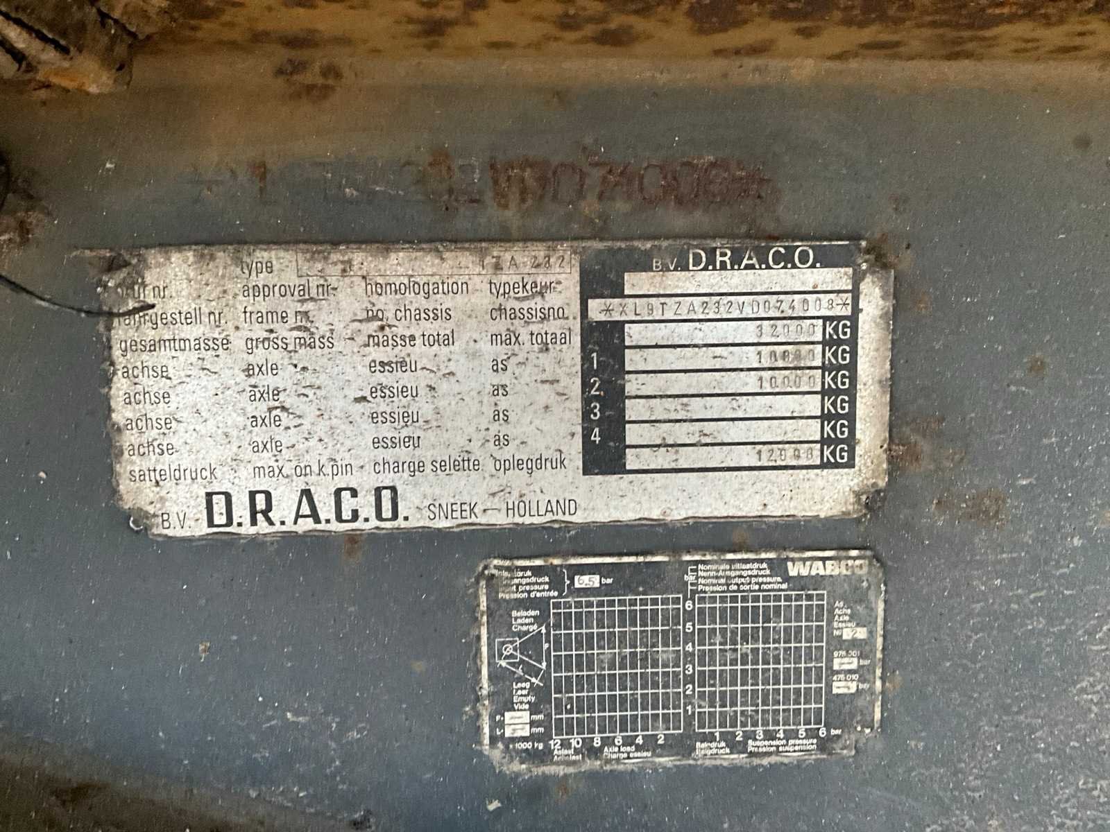 2x 7-polige stekker, ABS stekker, 400V stekker, Rema stekker, BOS opbouw, Dieseltank aanwezig tbv koelunit, 2x 10T ROR as, Achterste as gedwongen gestuurd, Lucht vering, trommelrem, Dhollandia Laadklep ( niet werkend ), Pneumatische roldeur, Automatisch smeersysteem Merk: draco Type: TZA 232 Bouwjaar: 1997 Chassisnummer VIN: XL9TZA232VD074008 Kenteken: OF-42-DG Datum eerste toelating (NL): 1997-02-20 Datum eerste toelating: 1997-02-20 APK vervaldatum: 2018-10-26 Aantal assen: 2 Laadvermogen: 21140kg Hydraulische laadklep: true Eigen gewicht: 10860kg Totale afmeting Breedte: 2600mm Totale afmeting Hoogte: 4000mm Zelf rijdend exporteren: Niet mogelijk
