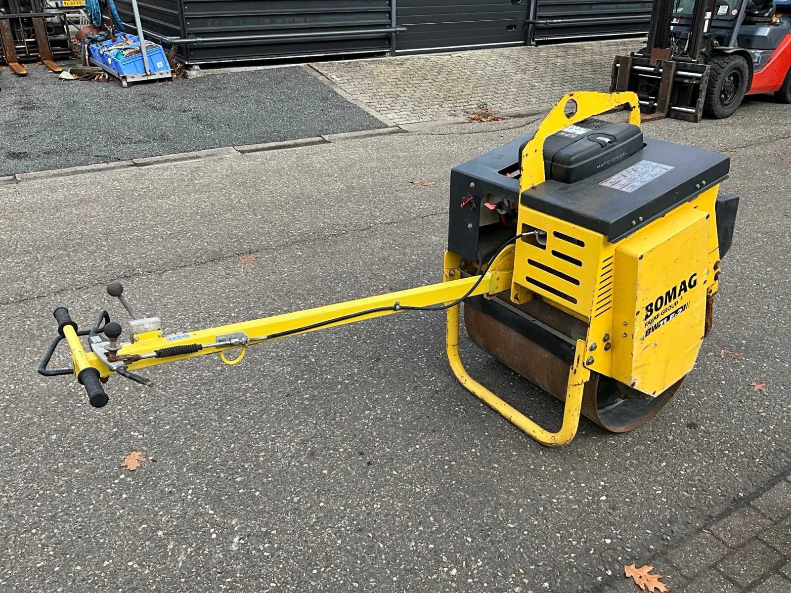 Voorzien van elektrische start, hijs oog, voor- en achteruit, lucht gekoelde dieselmotor, hoge/lage gearing, trommel schraper Merk: Bomag Model: BW71E-2 Bouwjaar: 2020 Serienummer: 961834541034 Merk motor: Hatz Motorvermogen (kW): 3.4kW Aantal cilinders: 1 Brandstof: Diesel Bedrijfsgewicht: 488kg Trommeldiameter: 600mm Werkbreedte: 710 Totale afmeting L: 2300mm Totale afmeting Breedte: 900mm Totale afmeting Hoogte: 1250mm