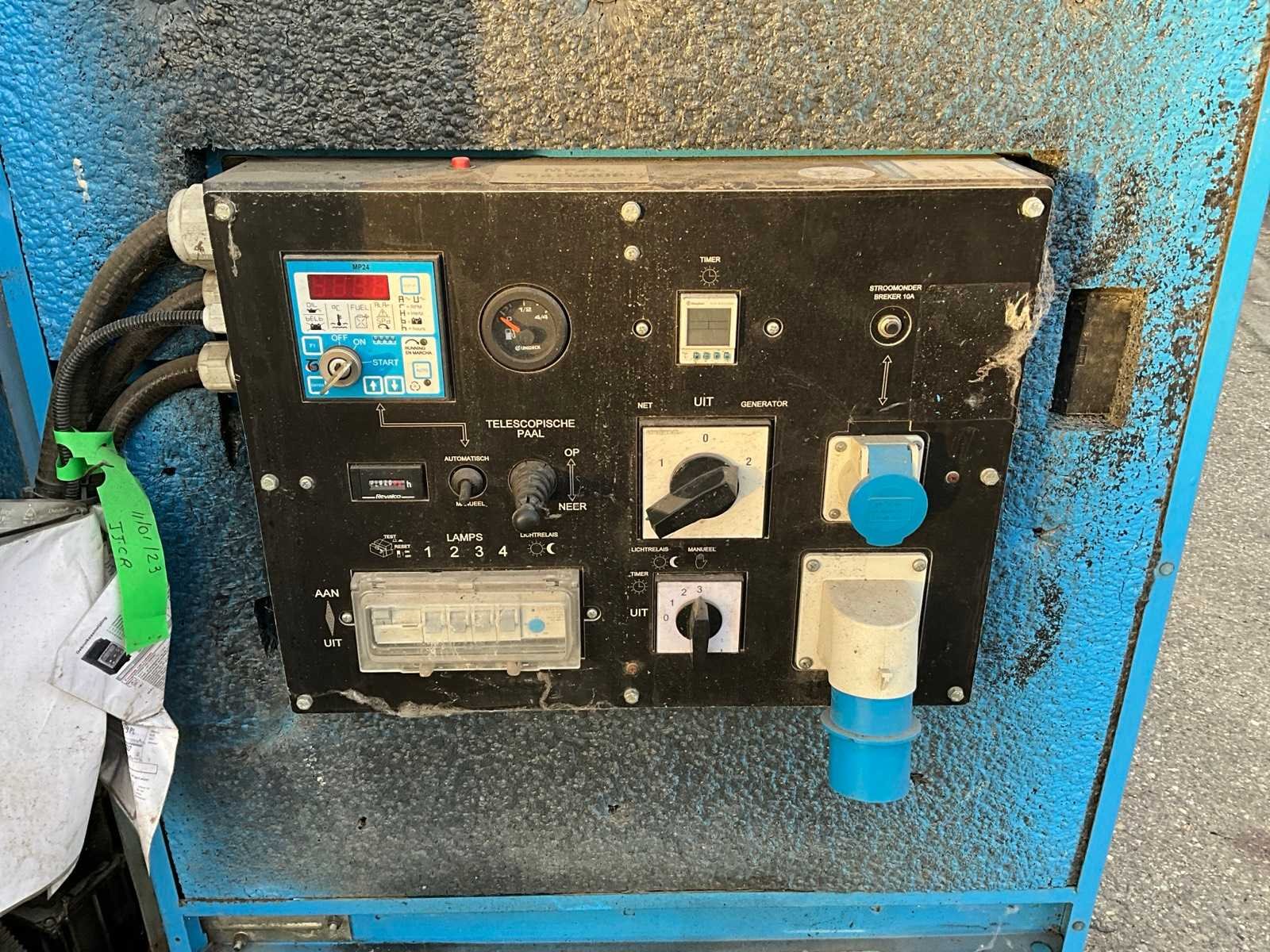 Kubota D1104 3-cilinder diesel motor, 4x Gaslamp Merk: Generac Type: Light Tower Bouwjaar: 2012 Gasontladingslamp: true Aansluiting: 220V Eigen gewicht: 1290kg Totale afmeting L: 1300mm Totale afmeting Breedte: 1300mm Totale afmeting Hoogte: 2600mm