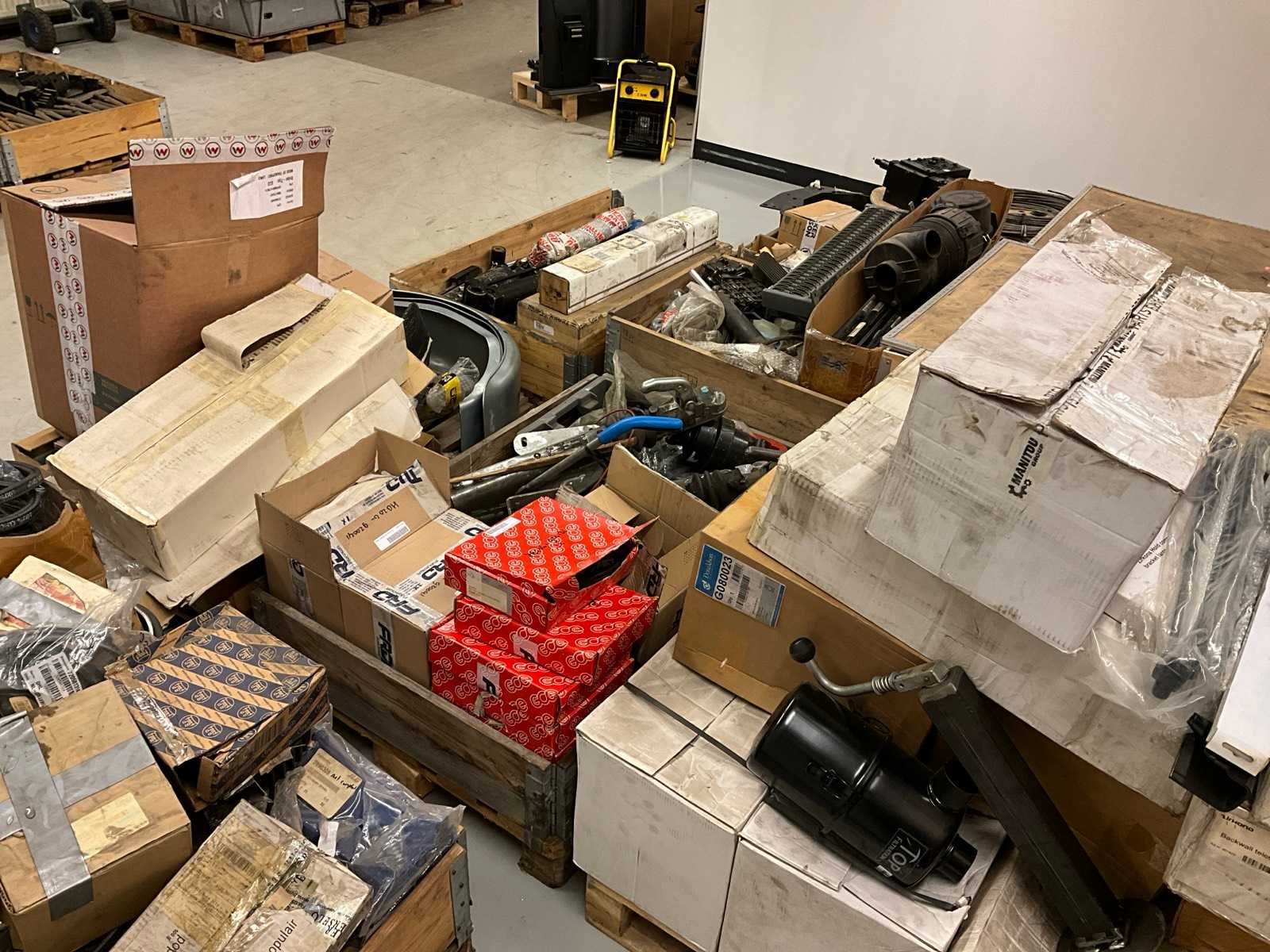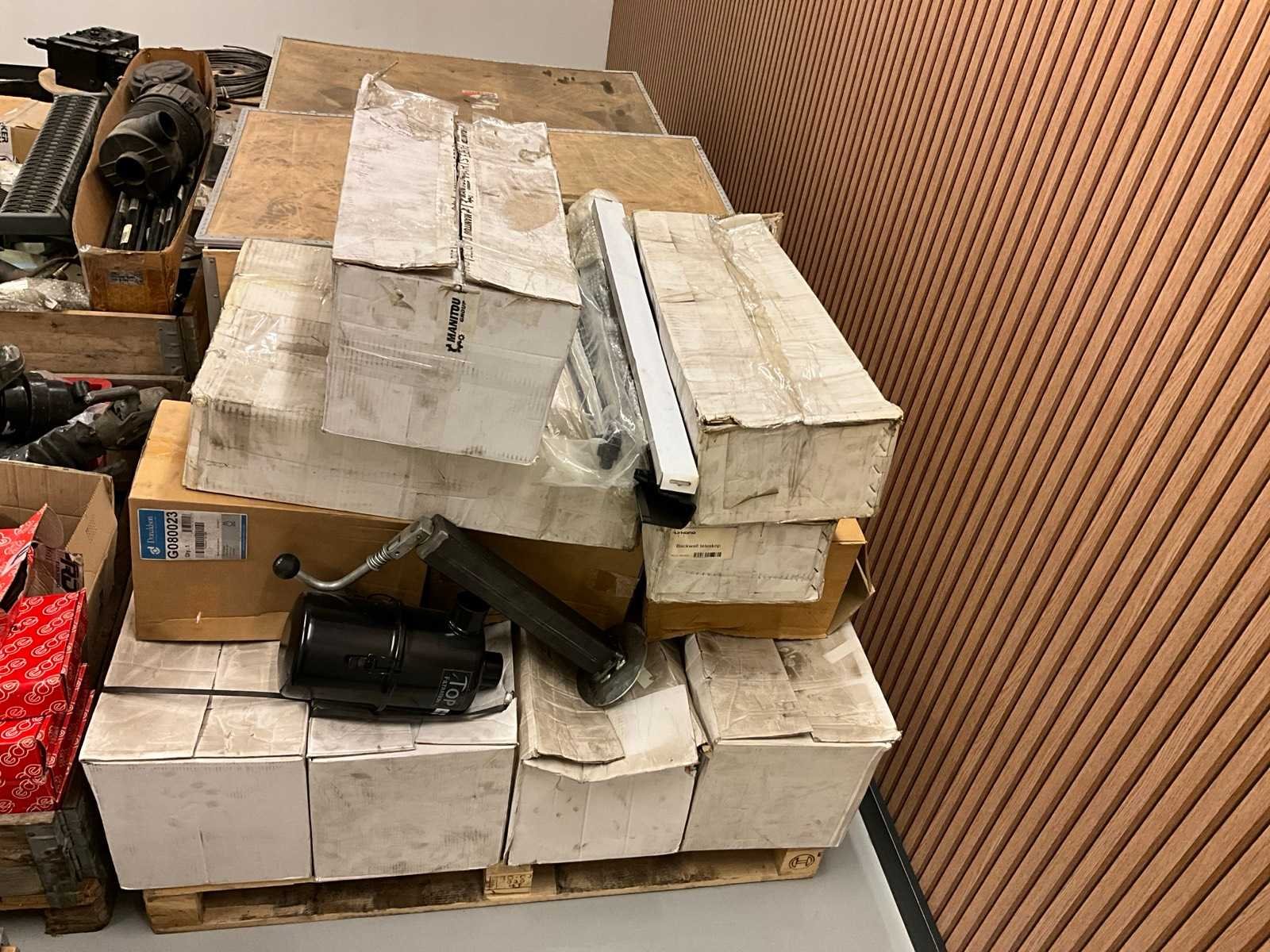 Grotendeels ongebruikte onderdelen voor verreikers heftrucks en hoogwerkers, o.a. manitou genie Wacker Neuson