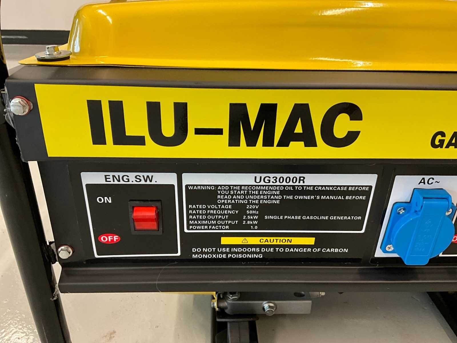 Ongebruikt, 2x 220V aansluiting Merk: ILU-MAC Type: UG3000R Benzine: true Type motor: UG300 Aantal cilinders: 1 Motorvermogen (kW): 2.5kW Luchtgekoeld: true