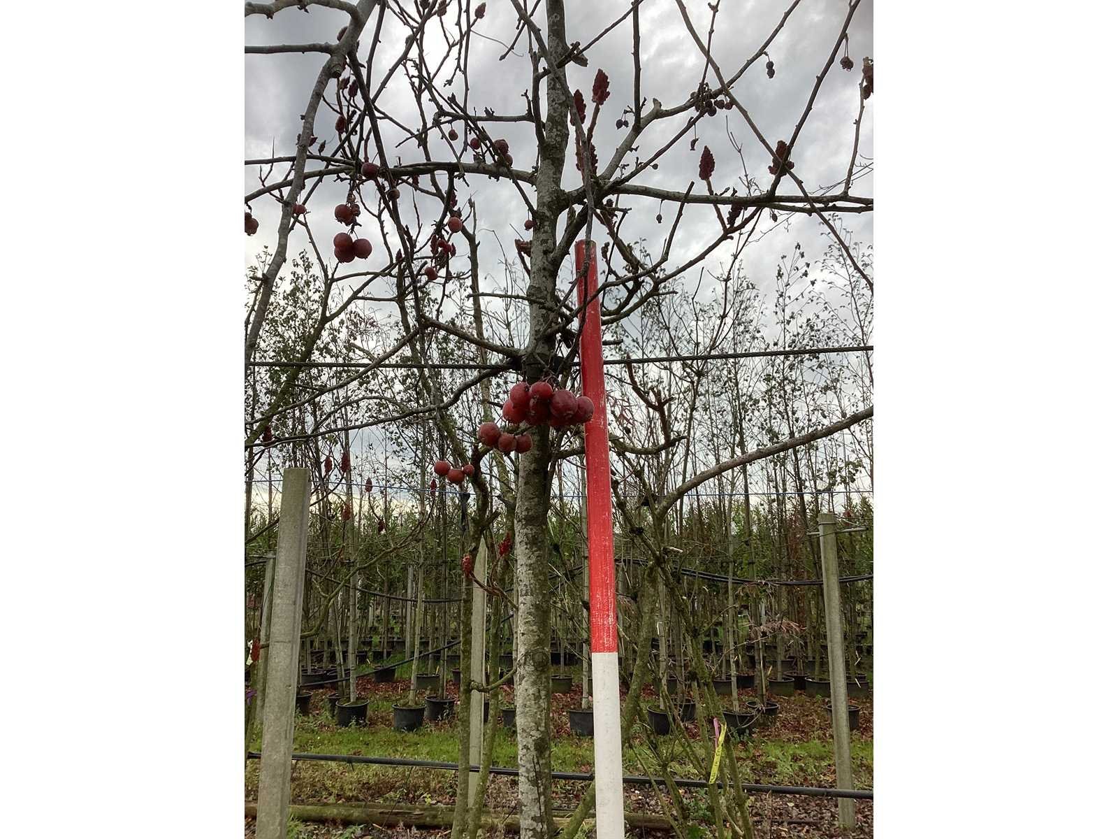 De kavels worden door ons verzameld en klaargelegd voor transport; Wilt u gebruik maken van de bezorgservice neem dan contact op via het emailadres info@groviatrees.com. Laat dit voor week 51 weten zodat we zo snel mogelijk uw planten kunnen laten bezorgen. Als tip, de bomen zitten nu in de winterrust dus wilt u graag weten wat de zomer- en de herfstkleuren zijn, kijk dan op internet daar staan hele mooie voorbeelden van de bomen. Type: Sierappel Latijnse benaming: Malus Red Sentinel Hoogte ca.: 300cm Met kluit: true Stamdikte: 9cm