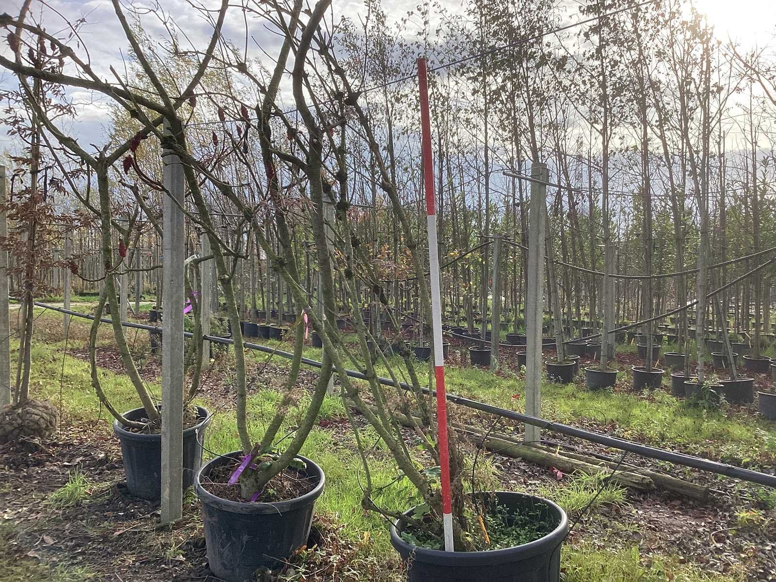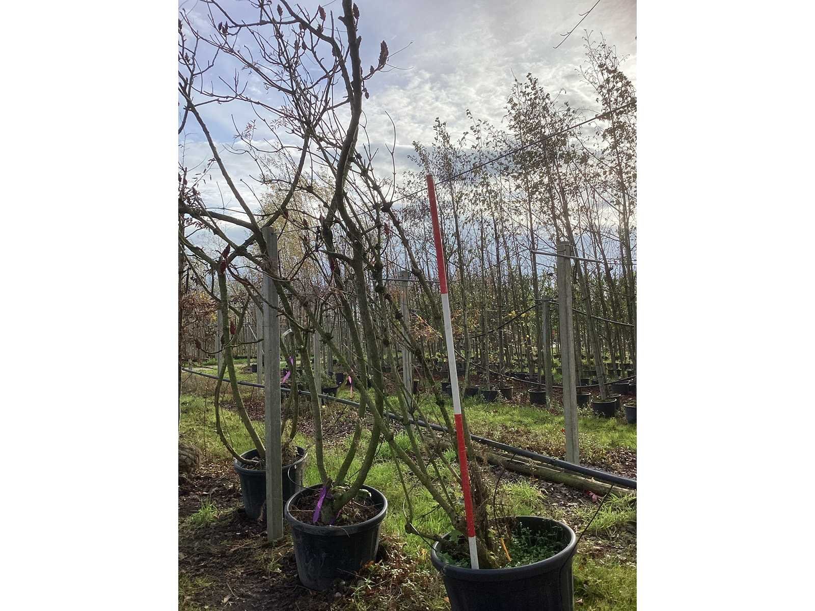 De kavels worden door ons verzameld en klaargelegd voor transport; Wilt u gebruik maken van de bezorgservice neem dan contact op via het emailadres info@groviatrees.com. Laat dit voor week 51 weten zodat we zo snel mogelijk uw planten kunnen laten bezorgen. Als tip, de bomen zitten nu in de winterrust dus wilt u graag weten wat de zomer- en de herfstkleuren zijn, kijk dan op internet daar staan hele mooie voorbeelden van de bomen. Type: Zwarte vlier Latijnse benaming: Sambucus nigra black beauty Hoogte ca.: 250cm In pot: true Stamdikte: 10cm