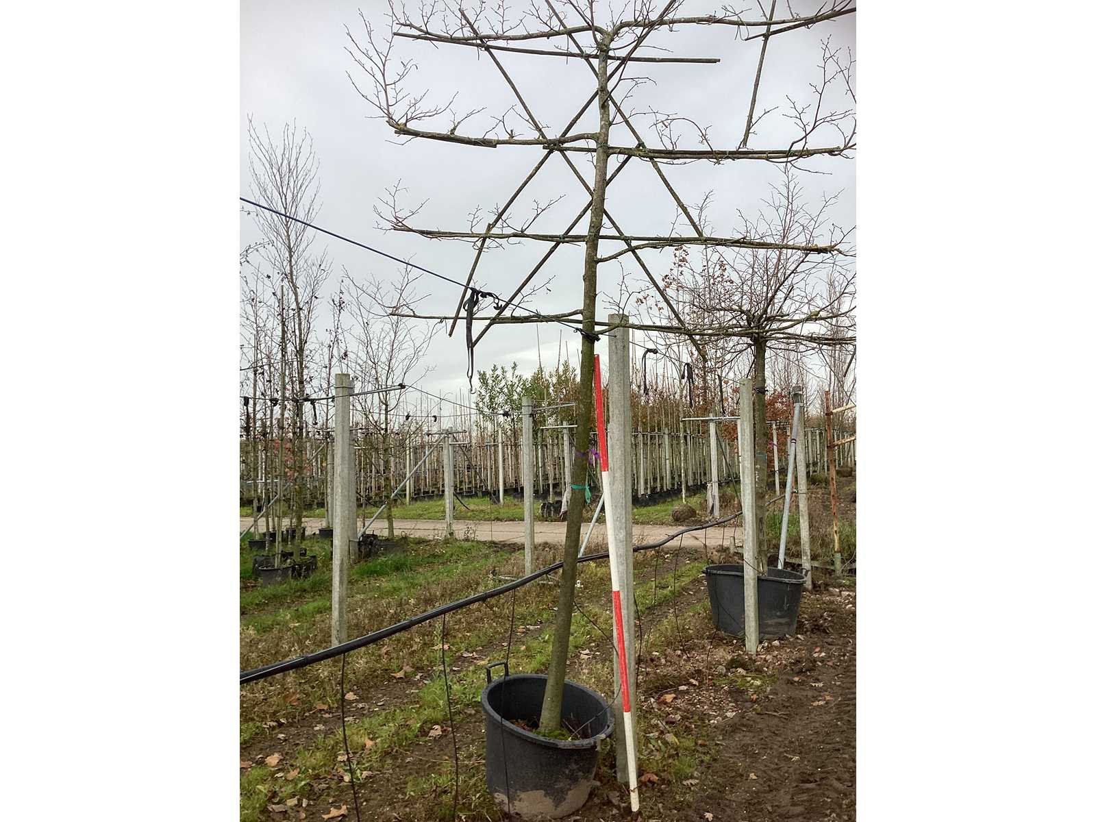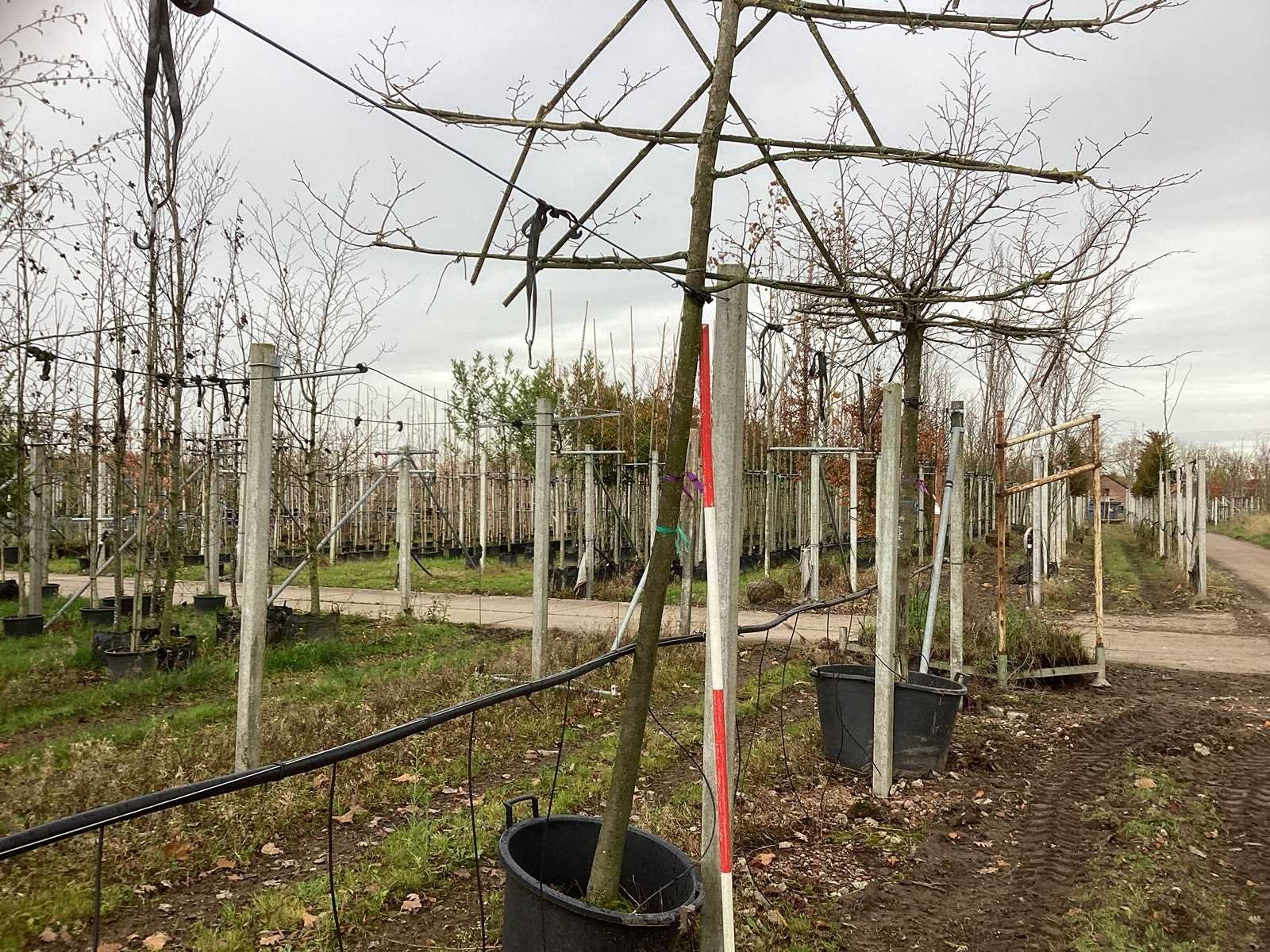 De kavels worden door ons verzameld en klaargelegd voor transport; Wilt u gebruik maken van de bezorgservice neem dan contact op via het emailadres info@groviatrees.com. Laat dit voor week 51 weten zodat we zo snel mogelijk uw planten kunnen laten bezorgen. Als tip, de bomen zitten nu in de winterrust dus wilt u graag weten wat de zomer- en de herfstkleuren zijn, kijk dan op internet daar staan hele mooie voorbeelden van de bomen. Type: Lei Linde Latijnse benaming: Tilia Cordata Hoogte ca.: 350cm In pot: true Stamdikte: 17cm