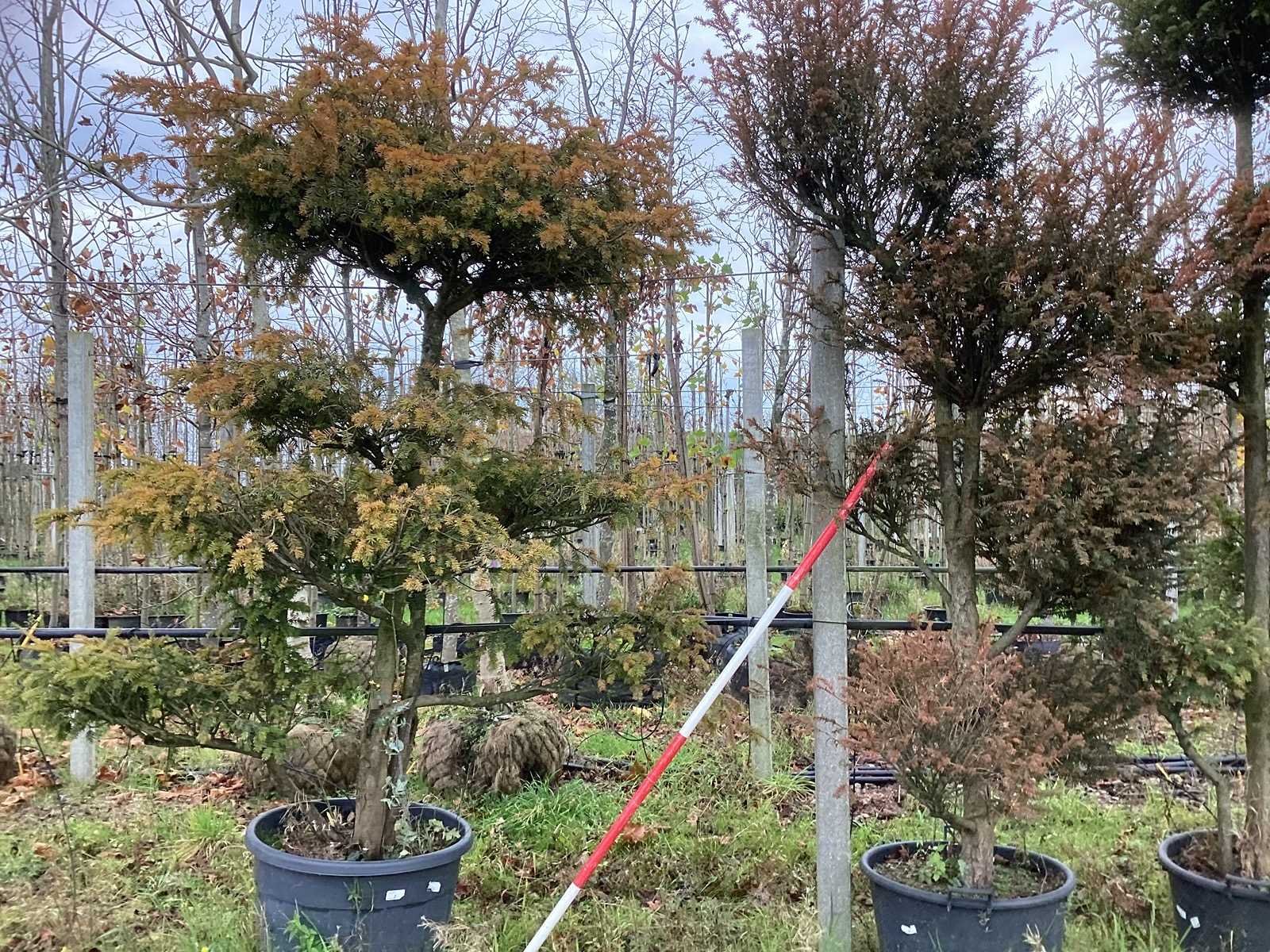 De kavels worden door ons verzameld en klaargelegd voor transport; Wilt u gebruik maken van de bezorgservice neem dan contact op via het emailadres info@groviatrees.com. Laat dit voor week 51 weten zodat we zo snel mogelijk uw planten kunnen laten bezorgen. Als tip, de bomen zitten nu in de winterrust dus wilt u graag weten wat de zomer- en de herfstkleuren zijn, kijk dan op internet daar staan hele mooie voorbeelden van de bomen. Type: Venijnboom Latijnse benaming: Taxus baccata Hoogte ca.: 300cm In pot: true Stamdikte: 17cm