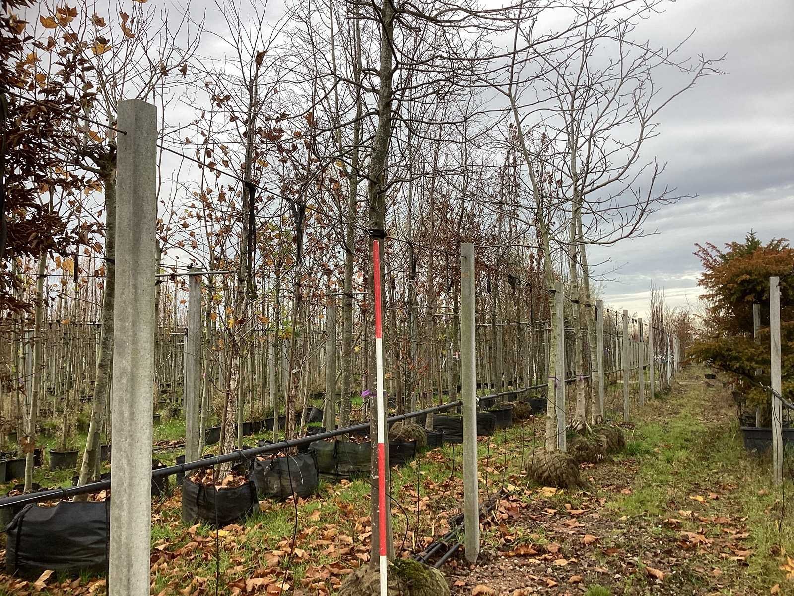 De kavels worden door ons verzameld en klaargelegd voor transport; Wilt u gebruik maken van de bezorgservice neem dan contact op via het emailadres info@groviatrees.com. Laat dit voor week 51 weten zodat we zo snel mogelijk uw planten kunnen laten bezorgen. Als tip, de bomen zitten nu in de winterrust dus wilt u graag weten wat de zomer- en de herfstkleuren zijn, kijk dan op internet daar staan hele mooie voorbeelden van de bomen. Type: Haagbeuk Latijnse benaming: Carpinus Betulus Hoogte ca.: 600cm Met kluit: true Stamdikte: 21cm