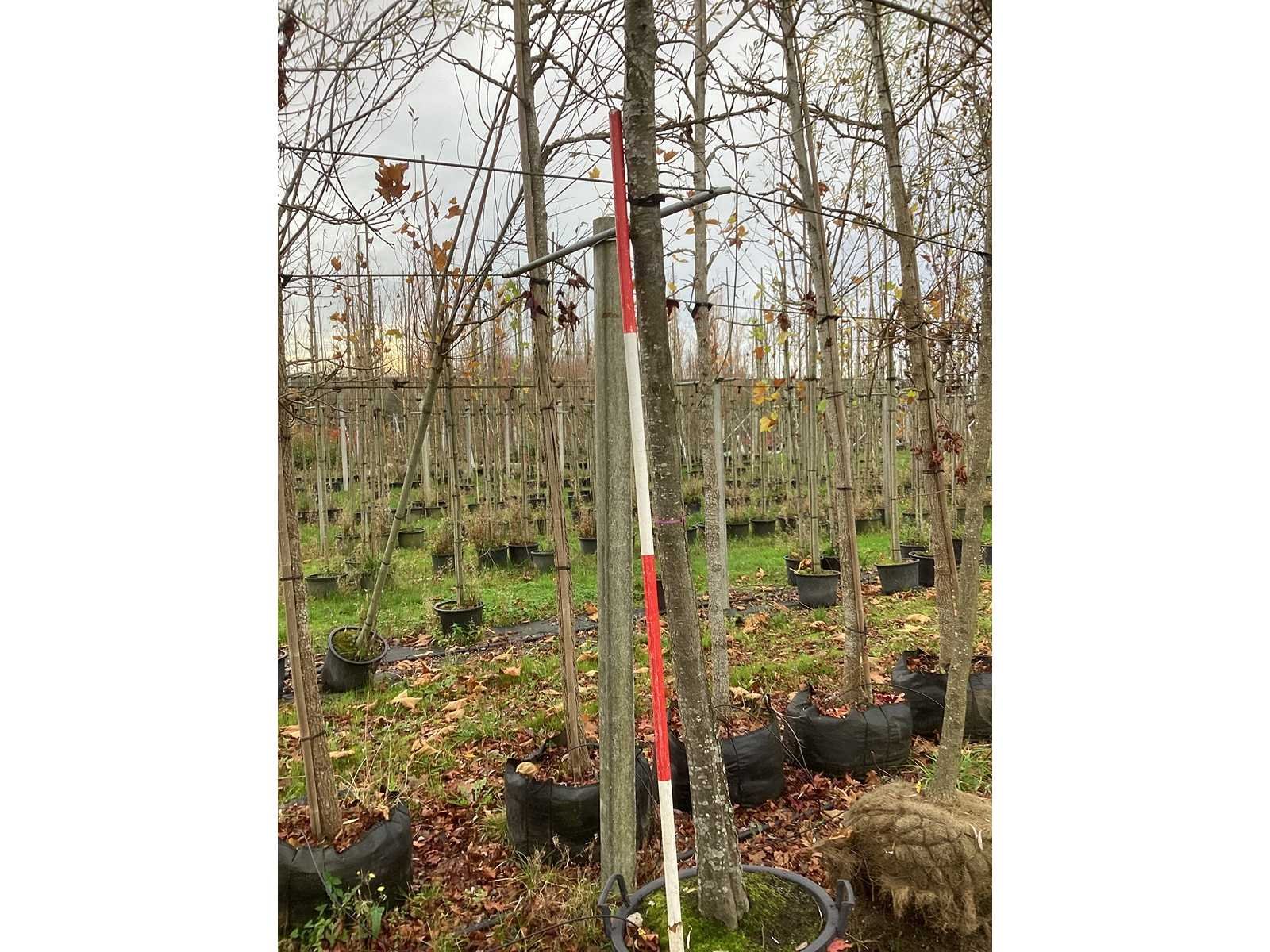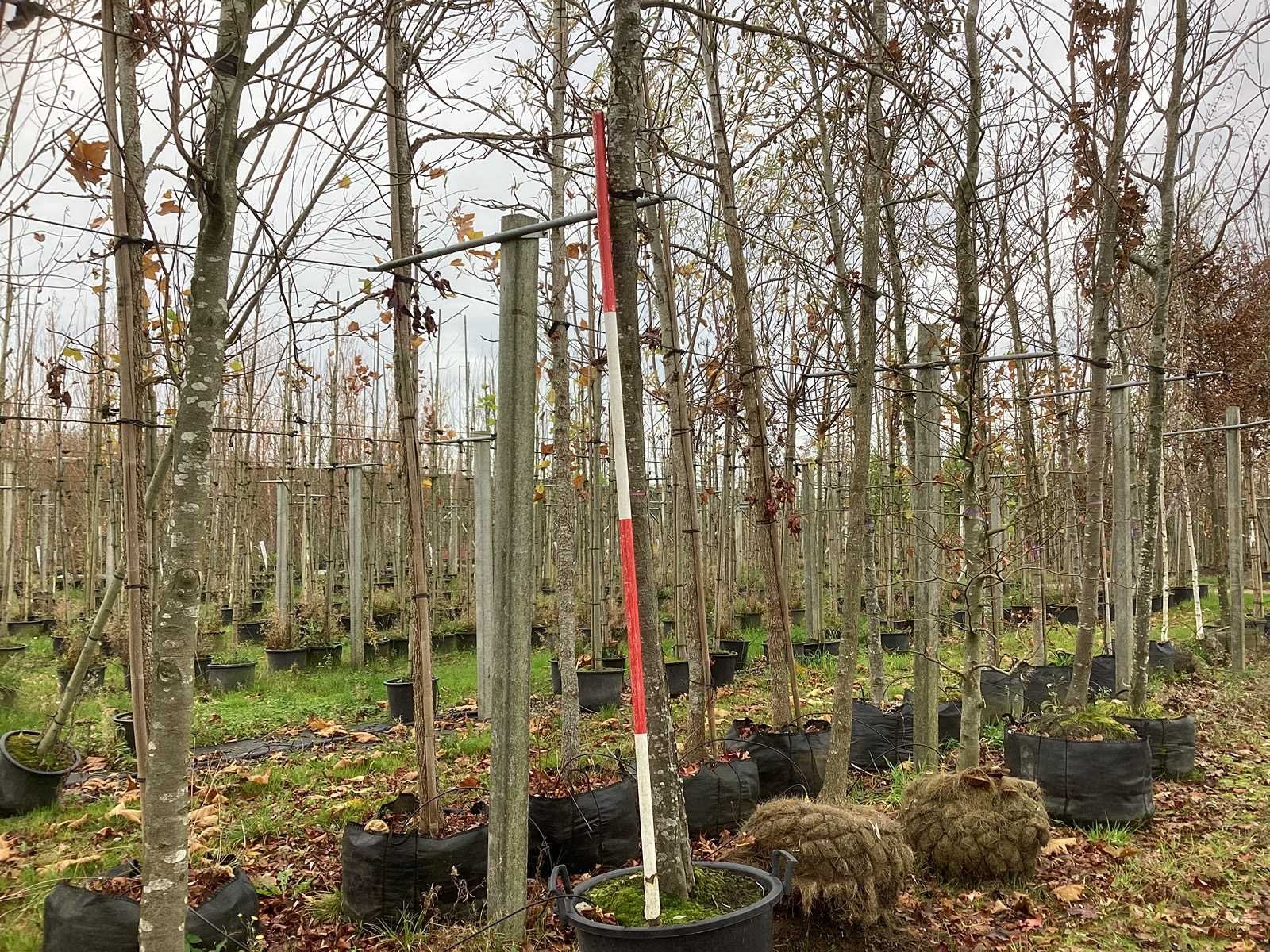 De kavels worden door ons verzameld en klaargelegd voor transport; Wilt u gebruik maken van de bezorgservice neem dan contact op via het emailadres info@groviatrees.com. Laat dit voor week 51 weten zodat we zo snel mogelijk uw planten kunnen laten bezorgen. Als tip, de bomen zitten nu in de winterrust dus wilt u graag weten wat de zomer- en de herfstkleuren zijn, kijk dan op internet daar staan hele mooie voorbeelden van de bomen. Type: Moeraseik Latijnse benaming: Quercus Palustris Hoogte ca.: 600cm In pot: true Met kluit: true Stamdikte: 22cm