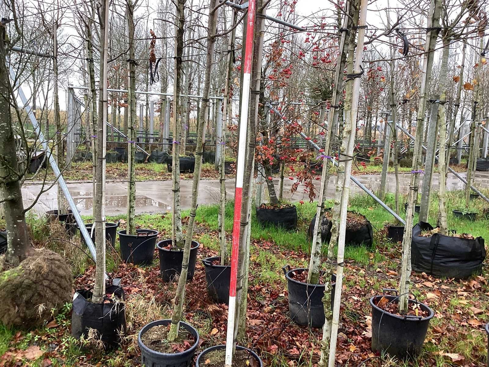 De kavels worden door ons verzameld en klaargelegd voor transport; Wilt u gebruik maken van de bezorgservice neem dan contact op via het emailadres info@groviatrees.com. Laat dit voor week 51 weten zodat we zo snel mogelijk uw planten kunnen laten bezorgen. Als tip, de bomen zitten nu in de winterrust dus wilt u graag weten wat de zomer- en de herfstkleuren zijn, kijk dan op internet daar staan hele mooie voorbeelden van de bomen. Type: Sierkers Latijnse benaming: Prunus Hoogte ca.: 500cm In pot: true Stamdikte: 6cm