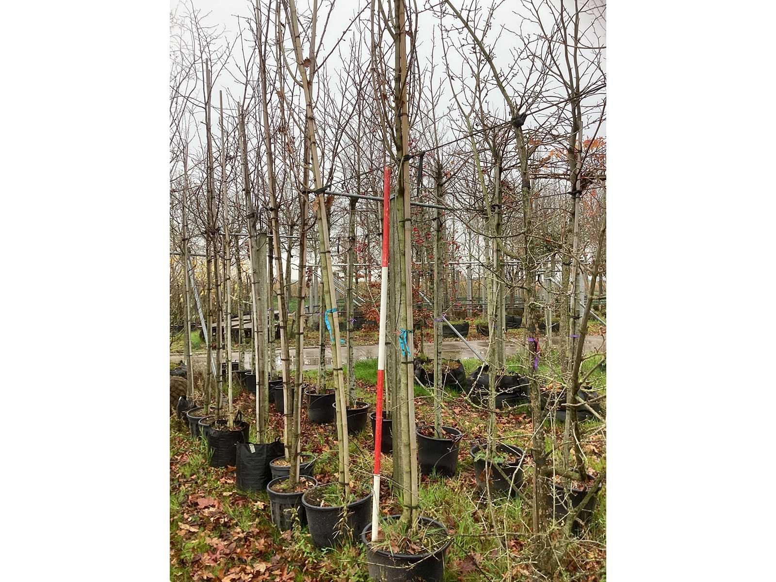De kavels worden door ons verzameld en klaargelegd voor transport; Wilt u gebruik maken van de bezorgservice neem dan contact op via het emailadres info@groviatrees.com. Laat dit voor week 51 weten zodat we zo snel mogelijk uw planten kunnen laten bezorgen. Als tip, de bomen zitten nu in de winterrust dus wilt u graag weten wat de zomer- en de herfstkleuren zijn, kijk dan op internet daar staan hele mooie voorbeelden van de bomen. Type: Roodbladerige Esdoorn Latijnse benaming: Acer Royal Red Hoogte ca.: 450cm In pot: true Stamdikte: 12cm