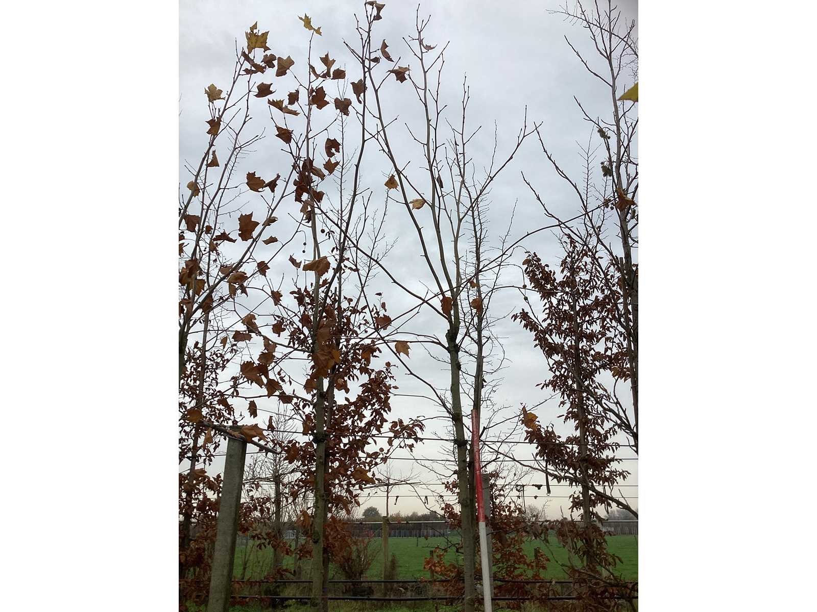 De kavels worden door ons verzameld en klaargelegd voor transport; Wilt u gebruik maken van de bezorgservice neem dan contact op via het emailadres info@groviatrees.com. Laat dit voor week 51 weten zodat we zo snel mogelijk uw planten kunnen laten bezorgen. Als tip, de bomen zitten nu in de winterrust dus wilt u graag weten wat de zomer- en de herfstkleuren zijn, kijk dan op internet daar staan hele mooie voorbeelden van de bomen. Type: Gewone plataan Latijnse benaming: Platanus hispanica Hoogte ca.: 450cm In pot: true Stamdikte: 10cm