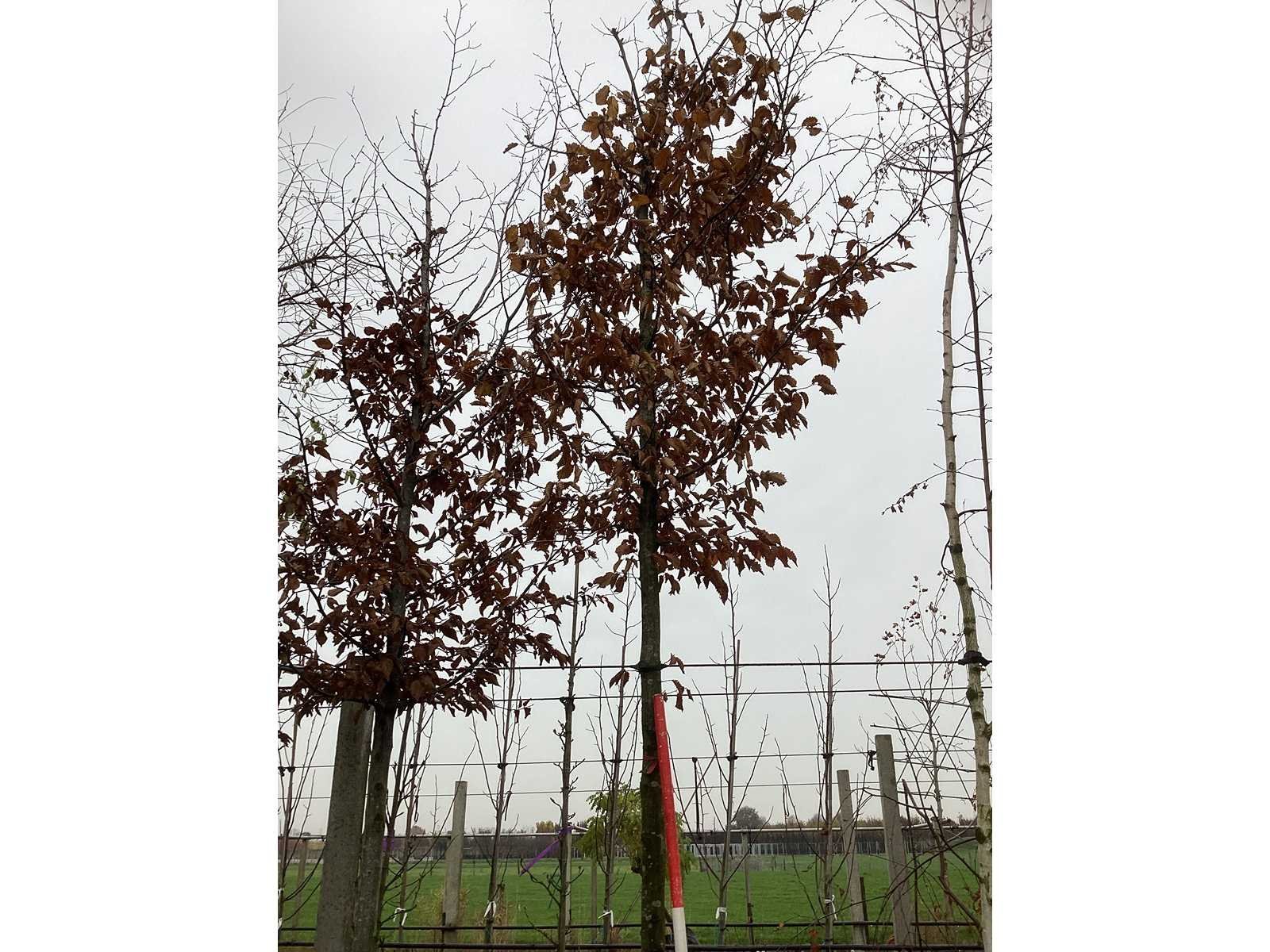 De kavels worden door ons verzameld en klaargelegd voor transport; Wilt u gebruik maken van de bezorgservice neem dan contact op via het emailadres info@groviatrees.com. Laat dit voor week 51 weten zodat we zo snel mogelijk uw planten kunnen laten bezorgen. Als tip, de bomen zitten nu in de winterrust dus wilt u graag weten wat de zomer- en de herfstkleuren zijn, kijk dan op internet daar staan hele mooie voorbeelden van de bomen. Type: Haagbeuk Latijnse benaming: Carpinus Betulus Hoogte ca.: 500cm In pot: true Stamdikte: 18cm