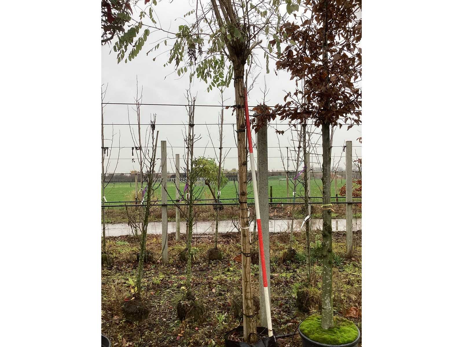 De kavels worden door ons verzameld en klaargelegd voor transport; Wilt u gebruik maken van de bezorgservice neem dan contact op via het emailadres info@groviatrees.com. Laat dit voor week 51 weten zodat we zo snel mogelijk uw planten kunnen laten bezorgen. Als tip, de bomen zitten nu in de winterrust dus wilt u graag weten wat de zomer- en de herfstkleuren zijn, kijk dan op internet daar staan hele mooie voorbeelden van de bomen. Type: Bolacacia Latijnse benaming: Robinia ps. Umbrucalifera In pot: true Stamdikte: 18cm