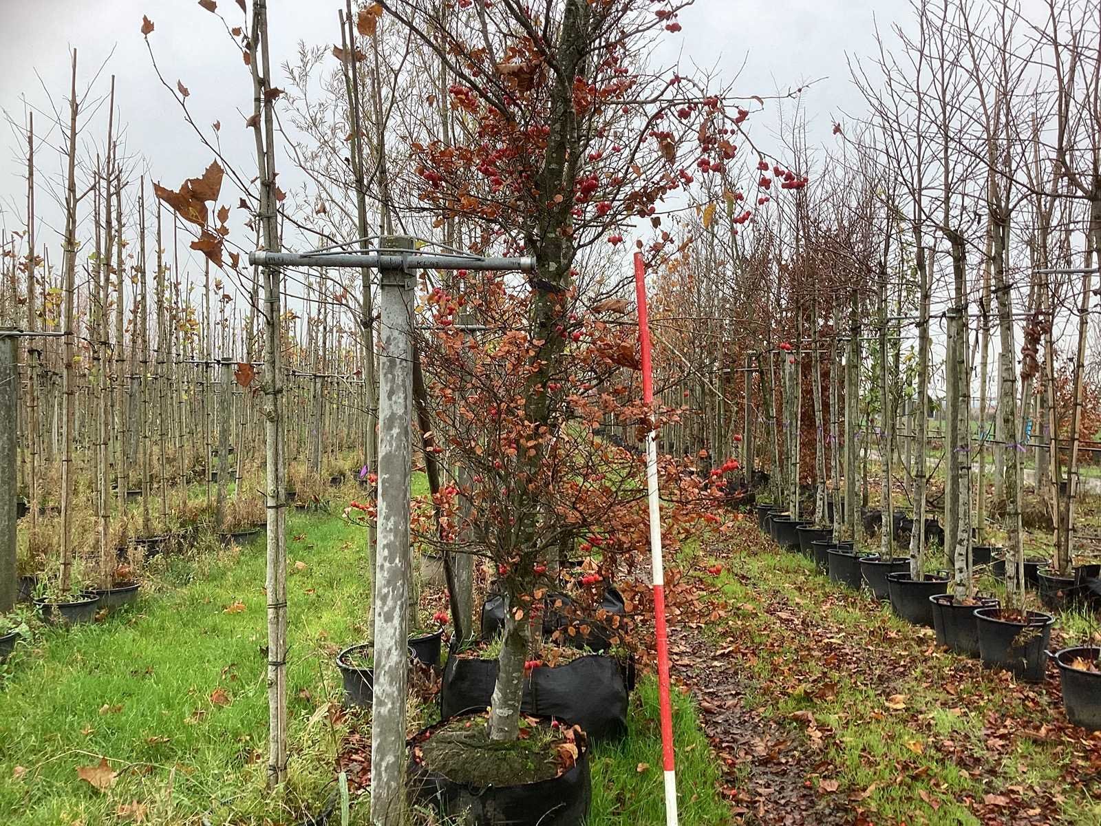 De kavels worden door ons verzameld en klaargelegd voor transport; Wilt u gebruik maken van de bezorgservice neem dan contact op via het emailadres info@groviatrees.com. Laat dit voor week 51 weten zodat we zo snel mogelijk uw planten kunnen laten bezorgen. Als tip, de bomen zitten nu in de winterrust dus wilt u graag weten wat de zomer- en de herfstkleuren zijn, kijk dan op internet daar staan hele mooie voorbeelden van de bomen. Type: Oosterse beuk Latijnse benaming: Fagus Orientalis Hoogte ca.: 600cm Met kluit: true Stamdikte: 25cm