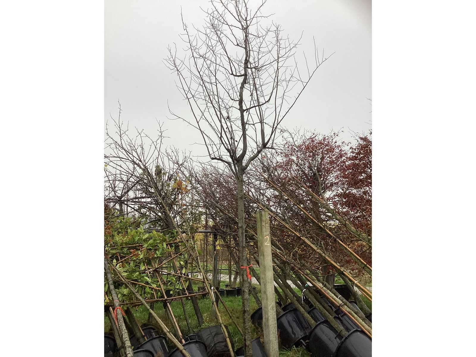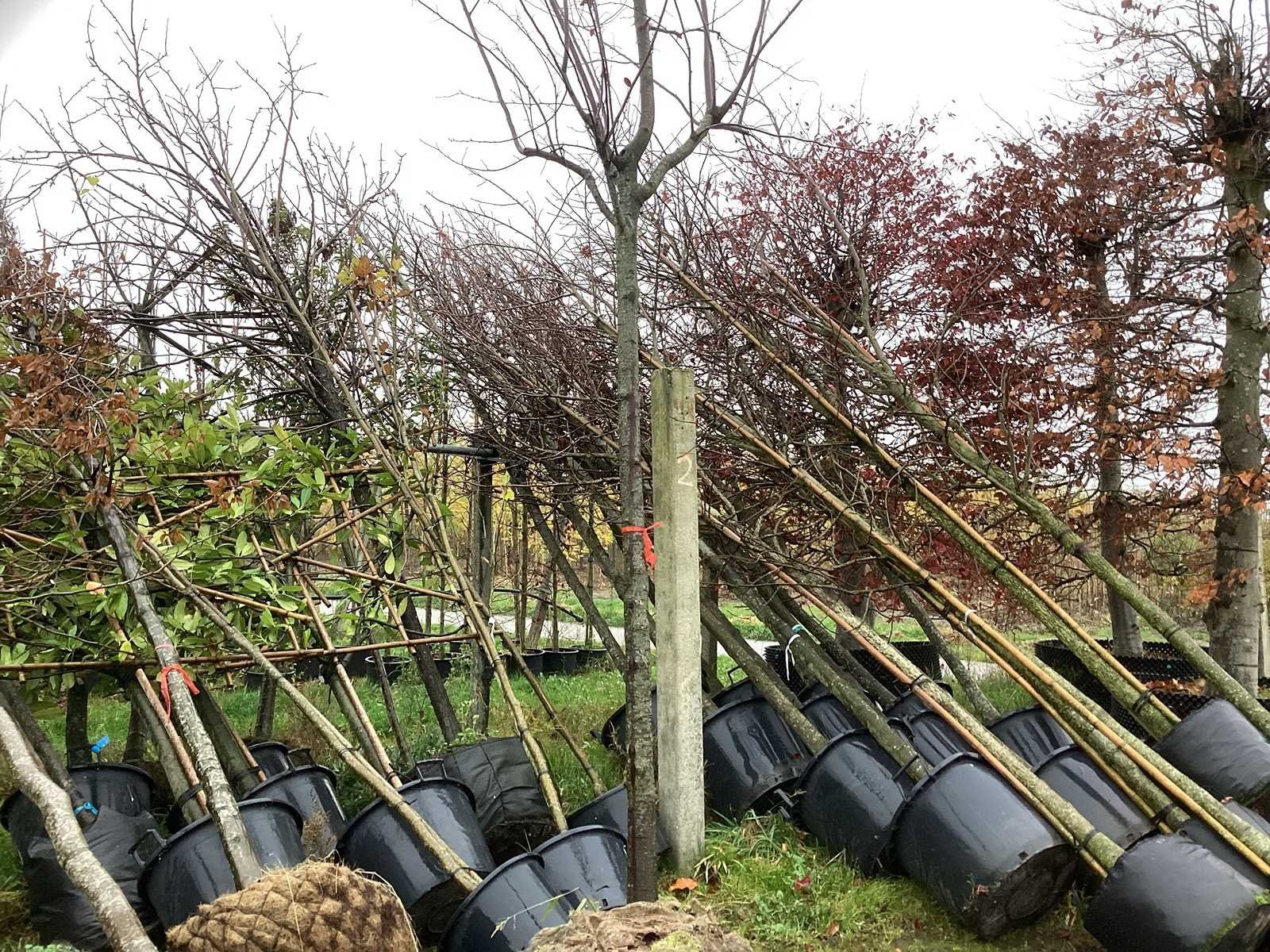 De kavels worden door ons verzameld en klaargelegd voor transport; Wilt u gebruik maken van de bezorgservice neem dan contact op via het emailadres info@groviatrees.com. Laat dit voor week 51 weten zodat we zo snel mogelijk uw planten kunnen laten bezorgen. Als tip, de bomen zitten nu in de winterrust dus wilt u graag weten wat de zomer- en de herfstkleuren zijn, kijk dan op internet daar staan hele mooie voorbeelden van de bomen. Type: Rode sierkerspruim Latijnse benaming: Prunus cerasifera nigra Hoogte ca.: 550cm Met kluit: true Stamdikte: 16cm