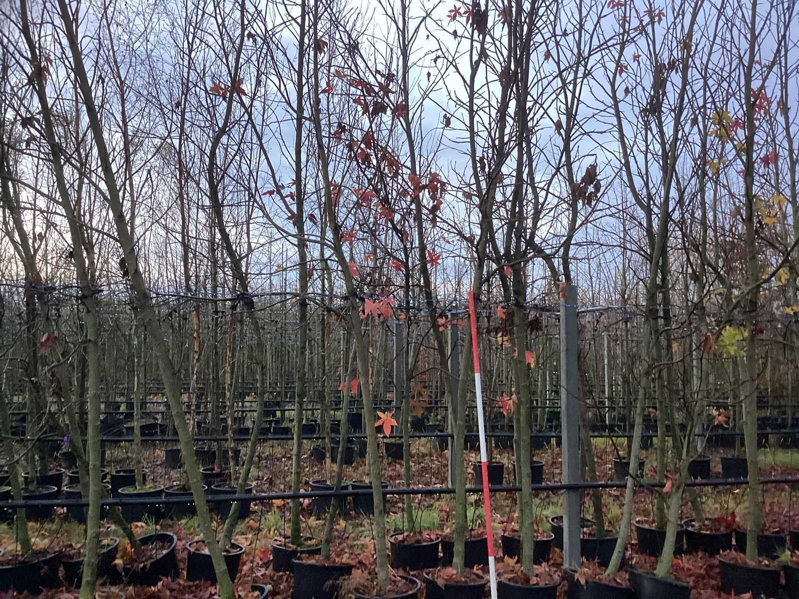 De kavels worden door ons verzameld en klaargelegd voor transport; Wilt u gebruik maken van de bezorgservice neem dan contact op via het emailadres info@groviatrees.com. Laat dit voor week 51 weten zodat we zo snel mogelijk uw planten kunnen laten bezorgen. Als tip, de bomen zitten nu in de winterrust dus wilt u graag weten wat de zomer- en de herfstkleuren zijn, kijk dan op internet daar staan hele mooie voorbeelden van de bomen. Type: Amberboom Latijnse benaming: Liquidambar styraciflua Hoogte ca.: 500cm In pot: true Stamdikte: 15cm