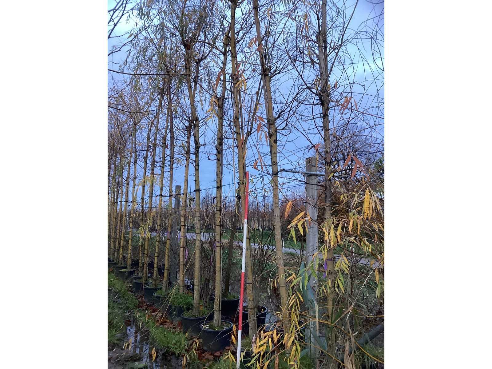 De kavels worden door ons verzameld en klaargelegd voor transport; Wilt u gebruik maken van de bezorgservice neem dan contact op via het emailadres info@groviatrees.com. Laat dit voor week 51 weten zodat we zo snel mogelijk uw planten kunnen laten bezorgen. Als tip, de bomen zitten nu in de winterrust dus wilt u graag weten wat de zomer- en de herfstkleuren zijn, kijk dan op internet daar staan hele mooie voorbeelden van de bomen. Type: Gele Wilg Latijnse benaming: Salix Alba Chermesina Hoogte ca.: 600cm In pot: true Stamdikte: 17cm
