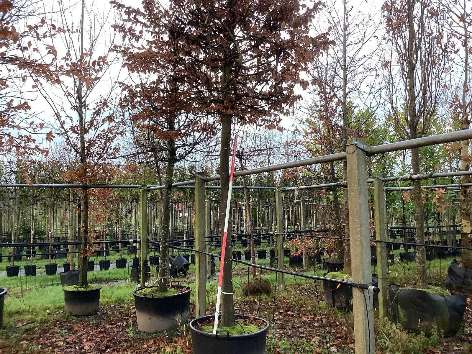 De kavels worden door ons verzameld en klaargelegd voor transport; Wilt u gebruik maken van de bezorgservice neem dan contact op via het emailadres info@groviatrees.com. Laat dit voor week 51 weten zodat we zo snel mogelijk uw planten kunnen laten bezorgen. Als tip, de bomen zitten nu in de winterrust dus wilt u graag weten wat de zomer- en de herfstkleuren zijn, kijk dan op internet daar staan hele mooie voorbeelden van de bomen. Type: Haagbeuk Latijnse benaming: Carpinus Betulus Hoogte ca.: 500cm In pot: true Stamdikte: 24cm