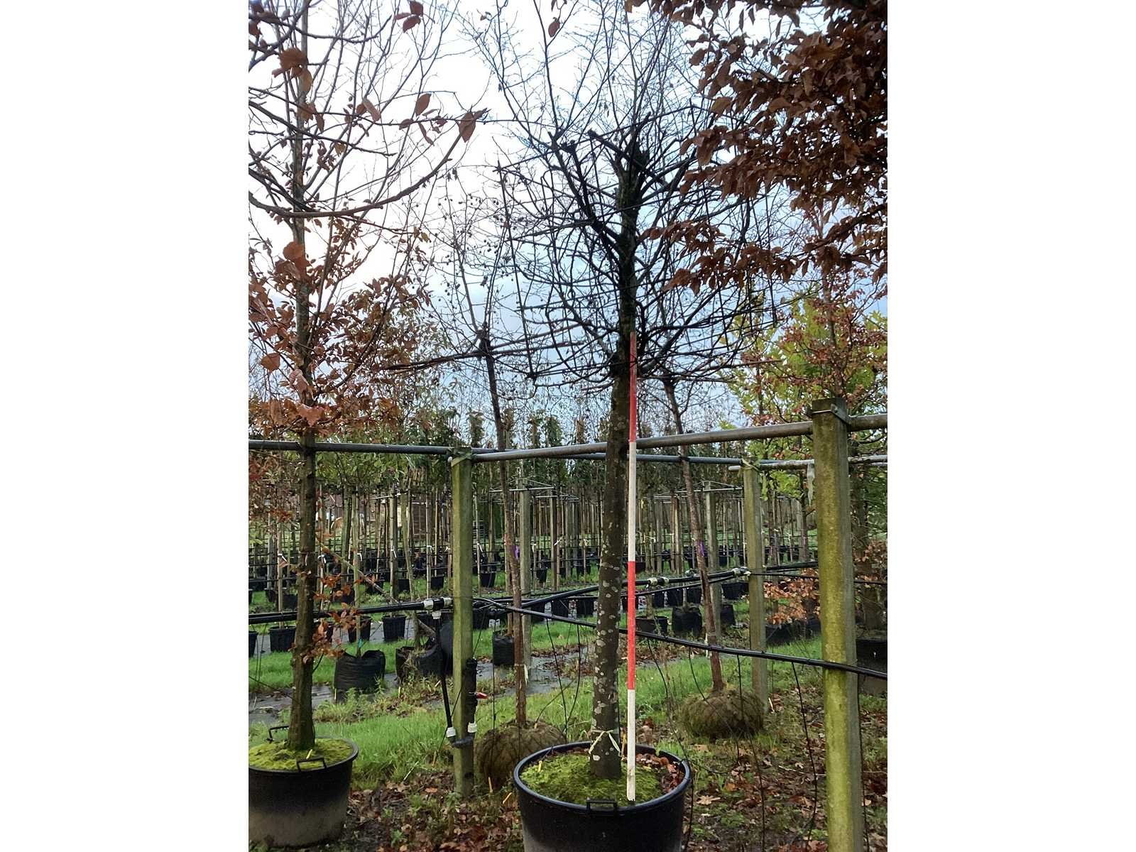 De kavels worden door ons verzameld en klaargelegd voor transport; Wilt u gebruik maken van de bezorgservice neem dan contact op via het emailadres info@groviatrees.com. Laat dit voor week 51 weten zodat we zo snel mogelijk uw planten kunnen laten bezorgen. Als tip, de bomen zitten nu in de winterrust dus wilt u graag weten wat de zomer- en de herfstkleuren zijn, kijk dan op internet daar staan hele mooie voorbeelden van de bomen. Type: Haagbeuk Latijnse benaming: Carpinus betulus Hoogte ca.: 450cm In pot: true Stamdikte: 23cm