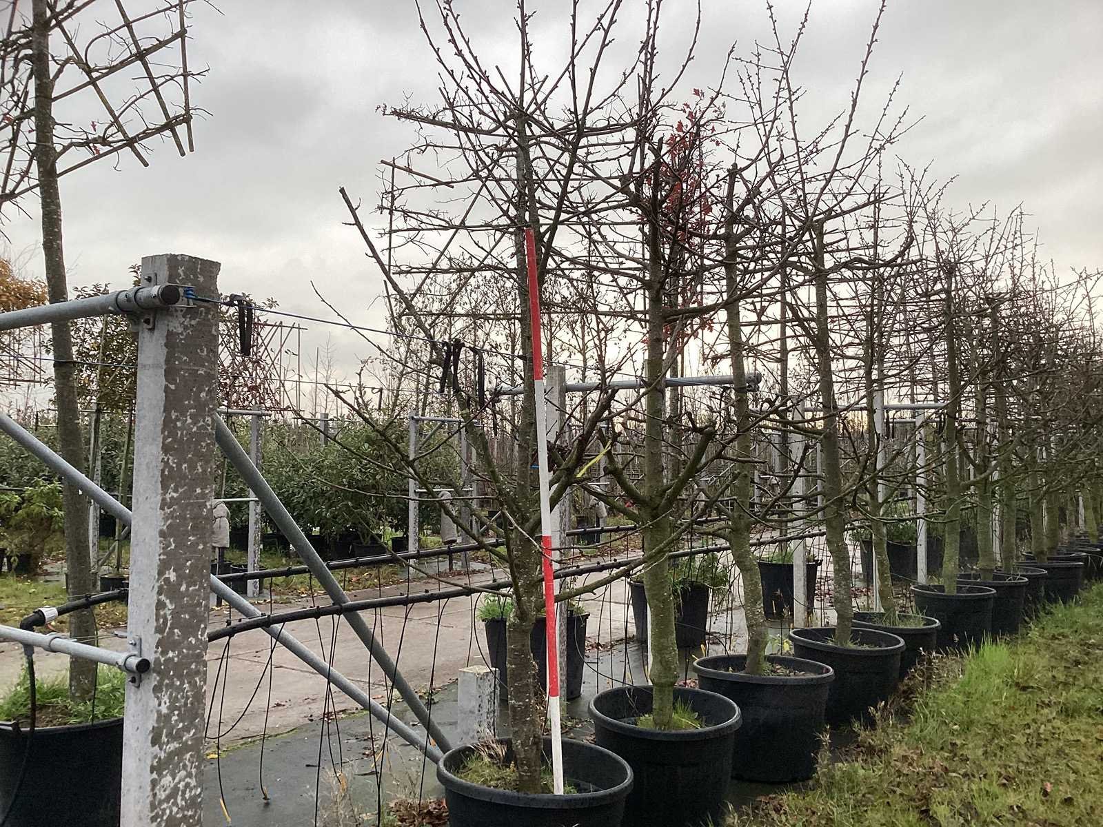 De kavels worden door ons verzameld en klaargelegd voor transport; Wilt u gebruik maken van de bezorgservice neem dan contact op via het emailadres info@groviatrees.com. Laat dit voor week 51 weten zodat we zo snel mogelijk uw planten kunnen laten bezorgen. Als tip, de bomen zitten nu in de winterrust dus wilt u graag weten wat de zomer- en de herfstkleuren zijn, kijk dan op internet daar staan hele mooie voorbeelden van de bomen. Type: Kersenboom Latijnse benaming: Prunus Regina Hoogte ca.: 400cm In pot: true Stamdikte: 25cm