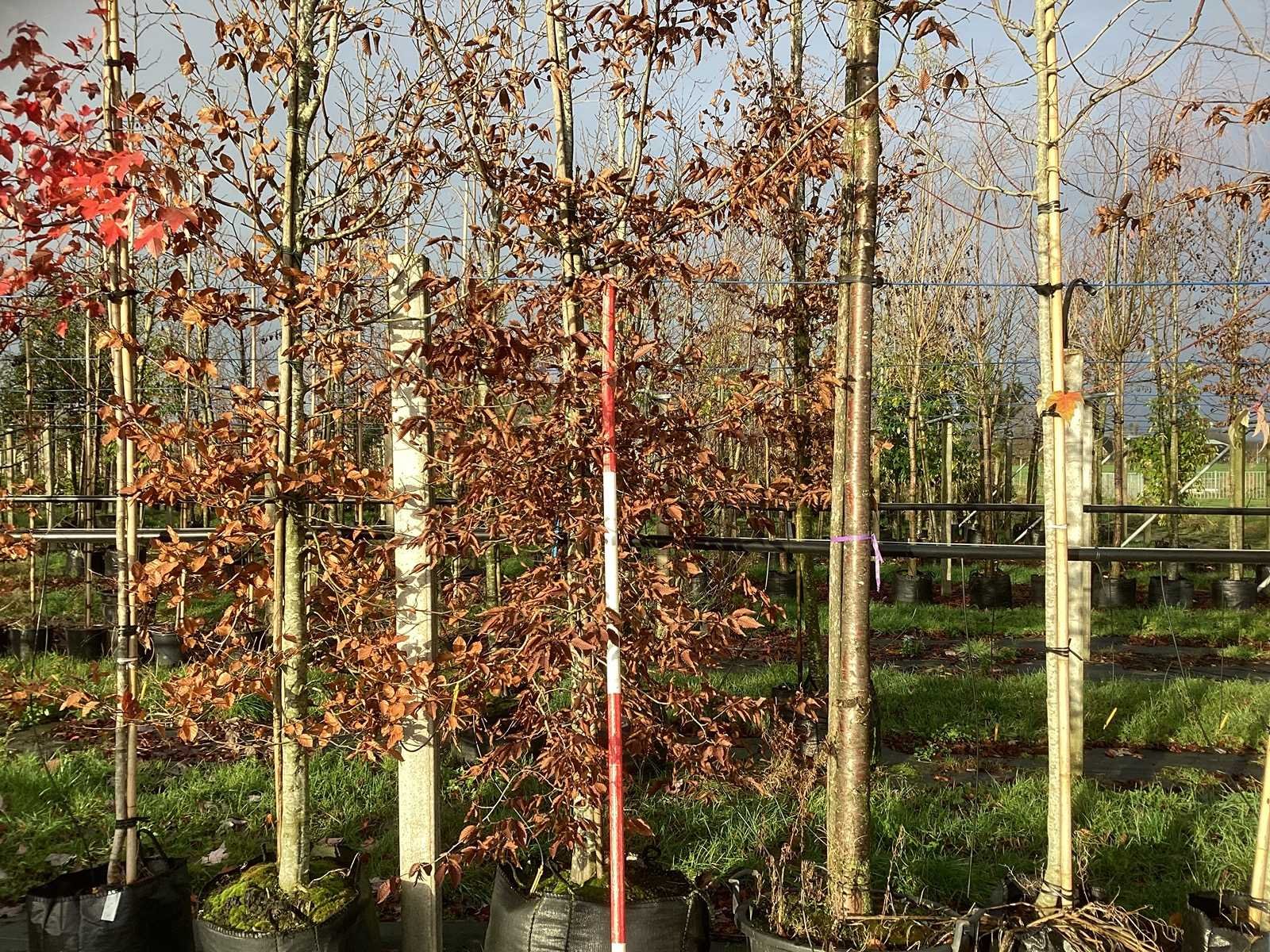 De kavels worden door ons verzameld en klaargelegd voor transport; Wilt u gebruik maken van de bezorgservice neem dan contact op via het emailadres info@groviatrees.com. Laat dit voor week 51 weten zodat we zo snel mogelijk uw planten kunnen laten bezorgen. Als tip, de bomen zitten nu in de winterrust dus wilt u graag weten wat de zomer- en de herfstkleuren zijn, kijk dan op internet daar staan hele mooie voorbeelden van de bomen. Type: Haagbeuk Latijnse benaming: Carpinus betulus Hoogte ca.: 600cm In pot: true Stamdikte: 18cm